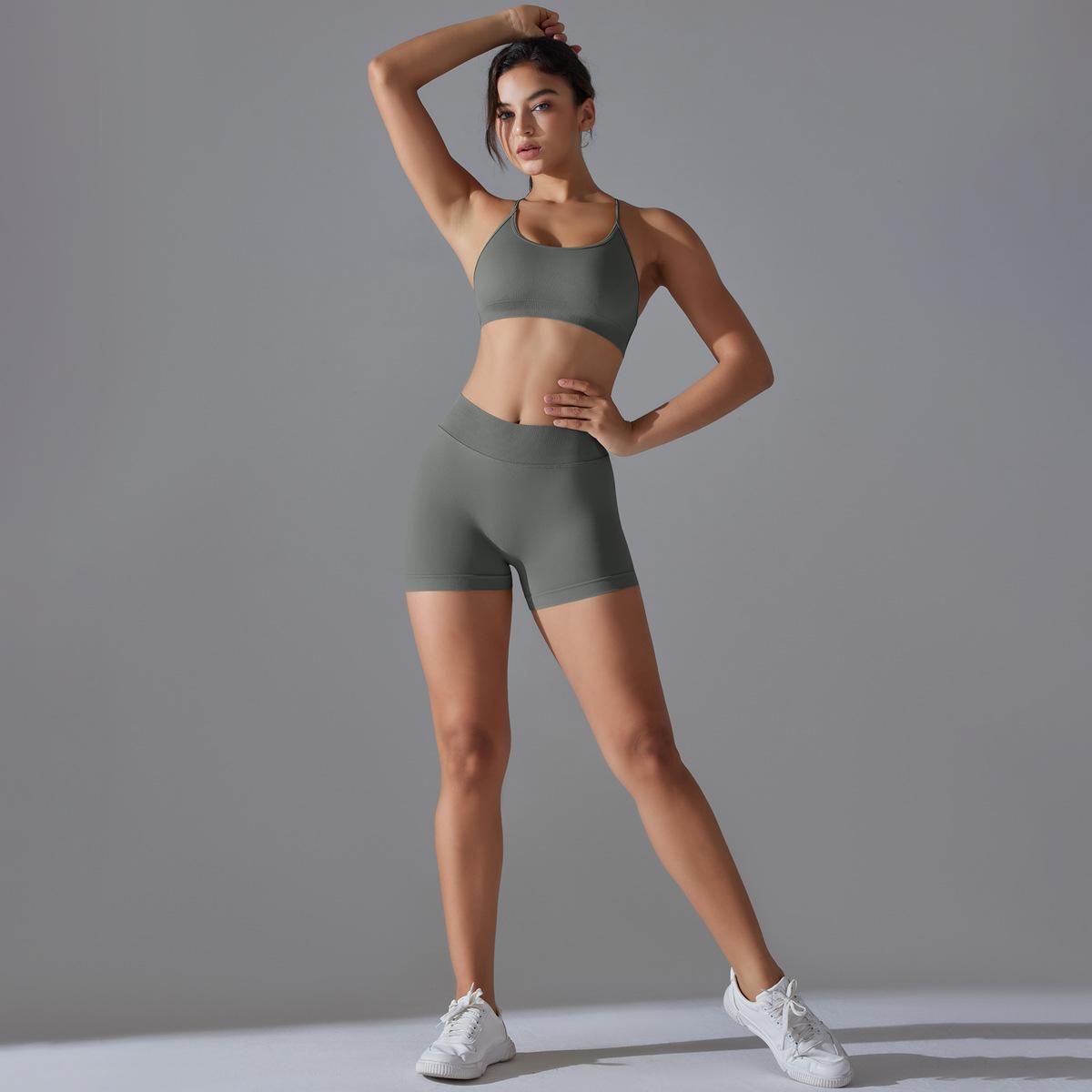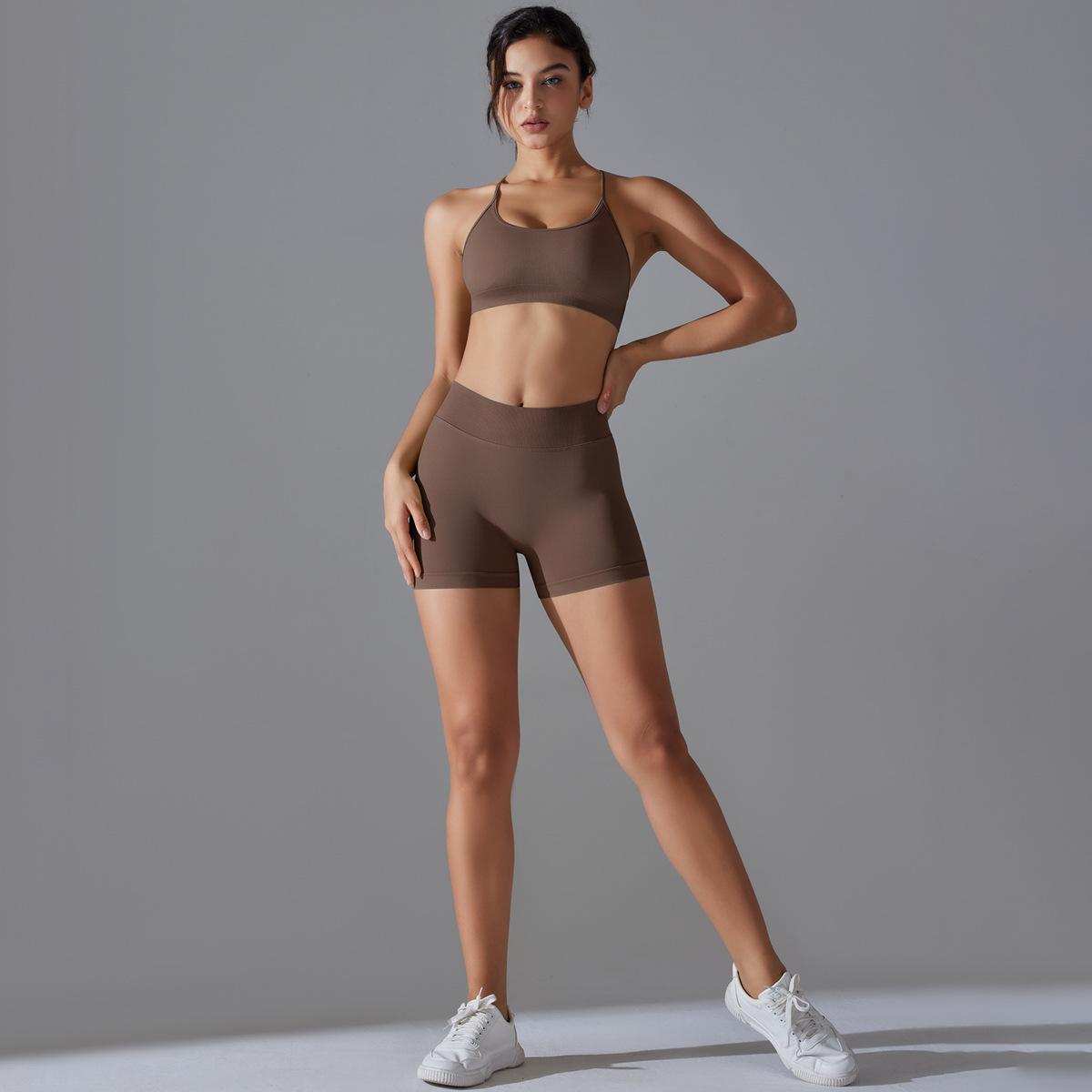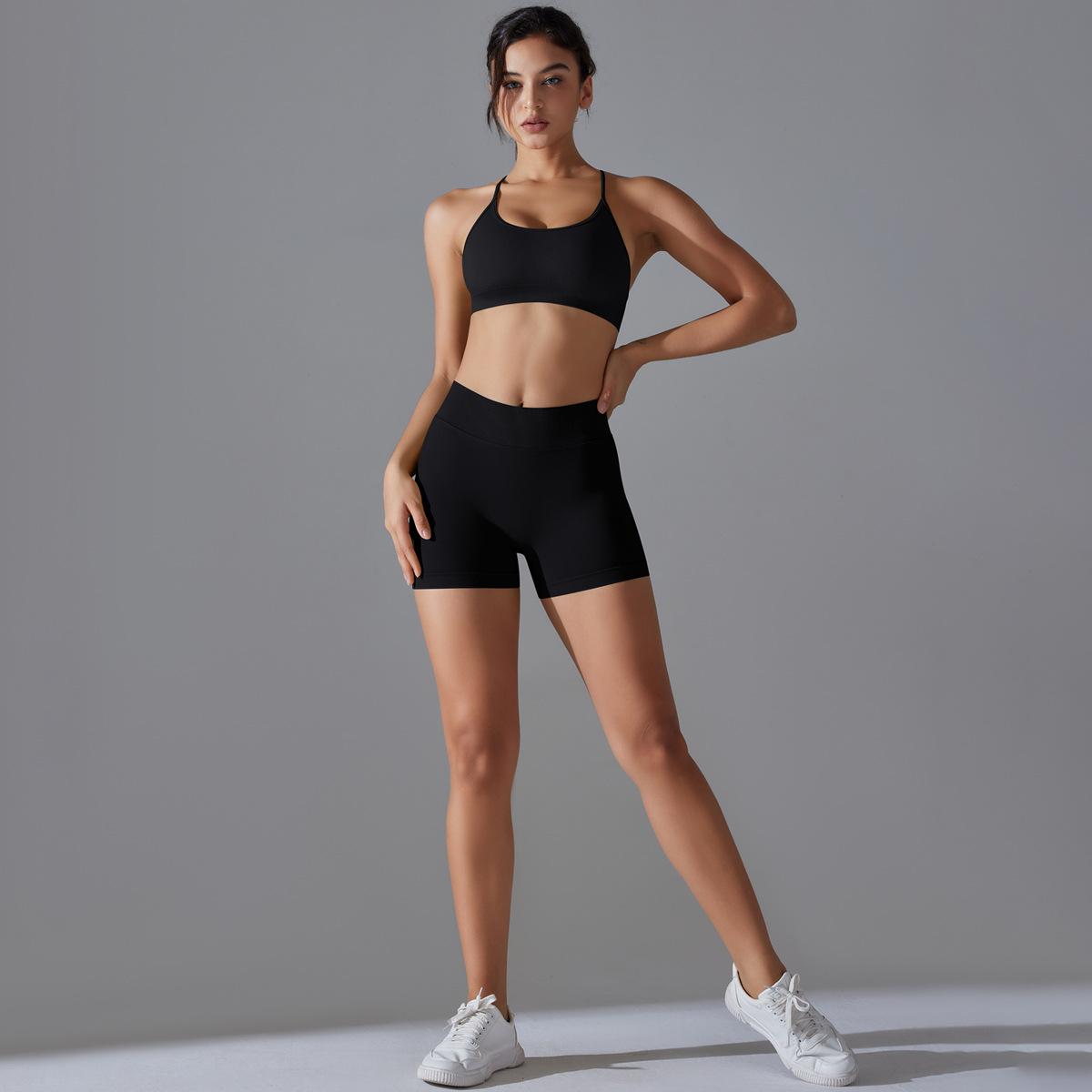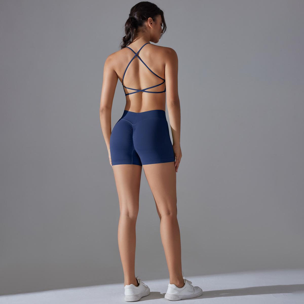 Traje de yoga europeo y americano sin costuras con espalda cruzada, transpirable, de secado rápido, ajustado, corto, deportivo, para correr y hacer ejercicio.
