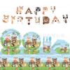 Decoración para fiestas de cumpleaños con temática de cielo azul y nubes blancas transfronterizas, mantel con bandera triangular, vajilla, vasos de papel, platos y pañuelos de papel.