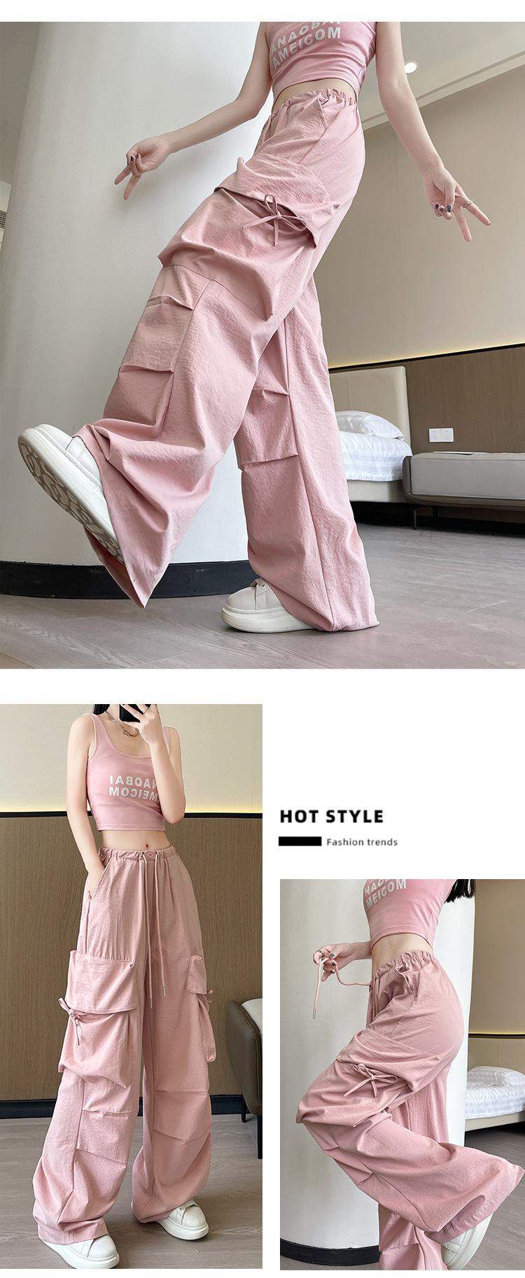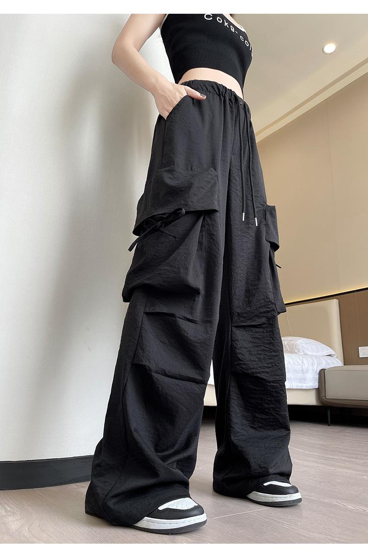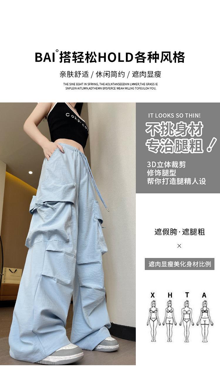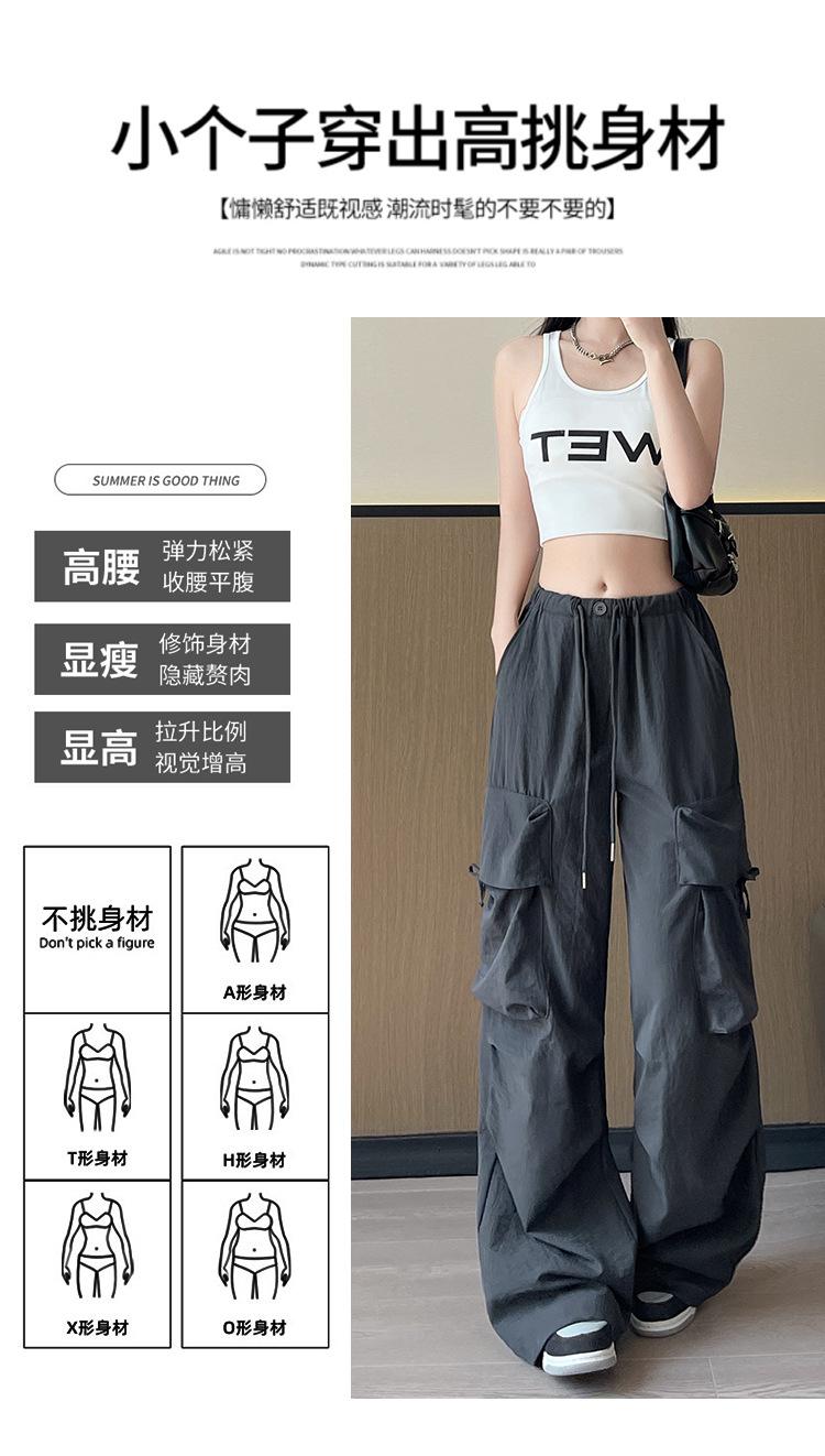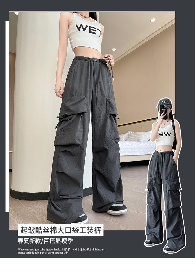 Overol Americano Pantalones de Mujer Primavera y Otoño Nuevo Cintura Alta Drapeado Paracaídas Pierna Ancha Pantalón Deportivo Adelgazante Secado Rápido