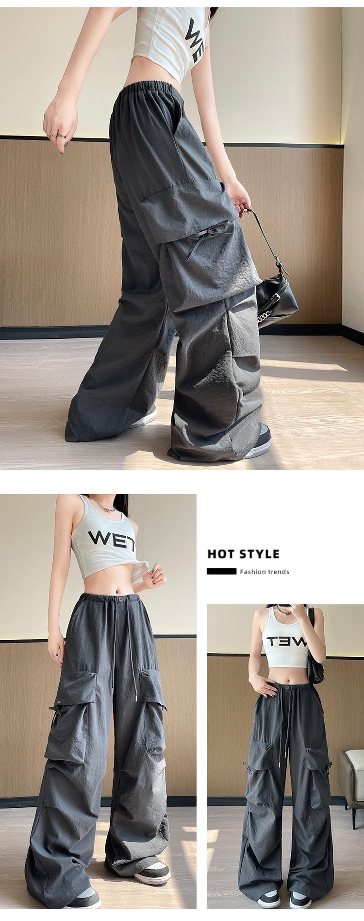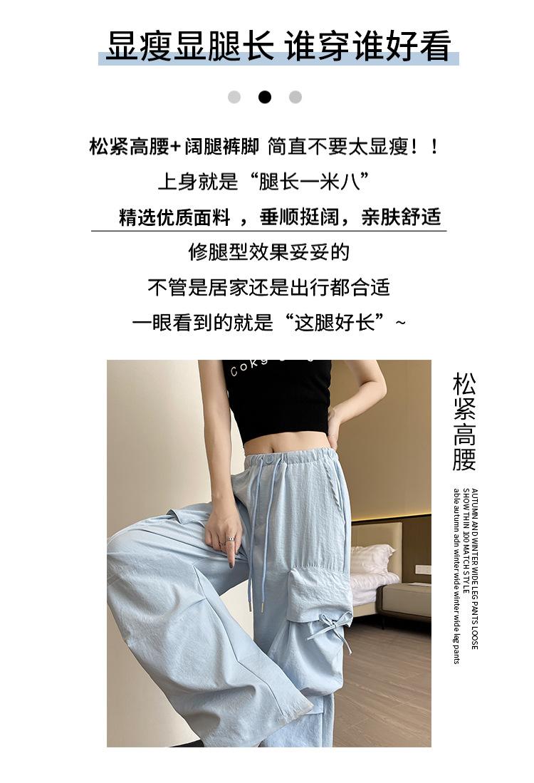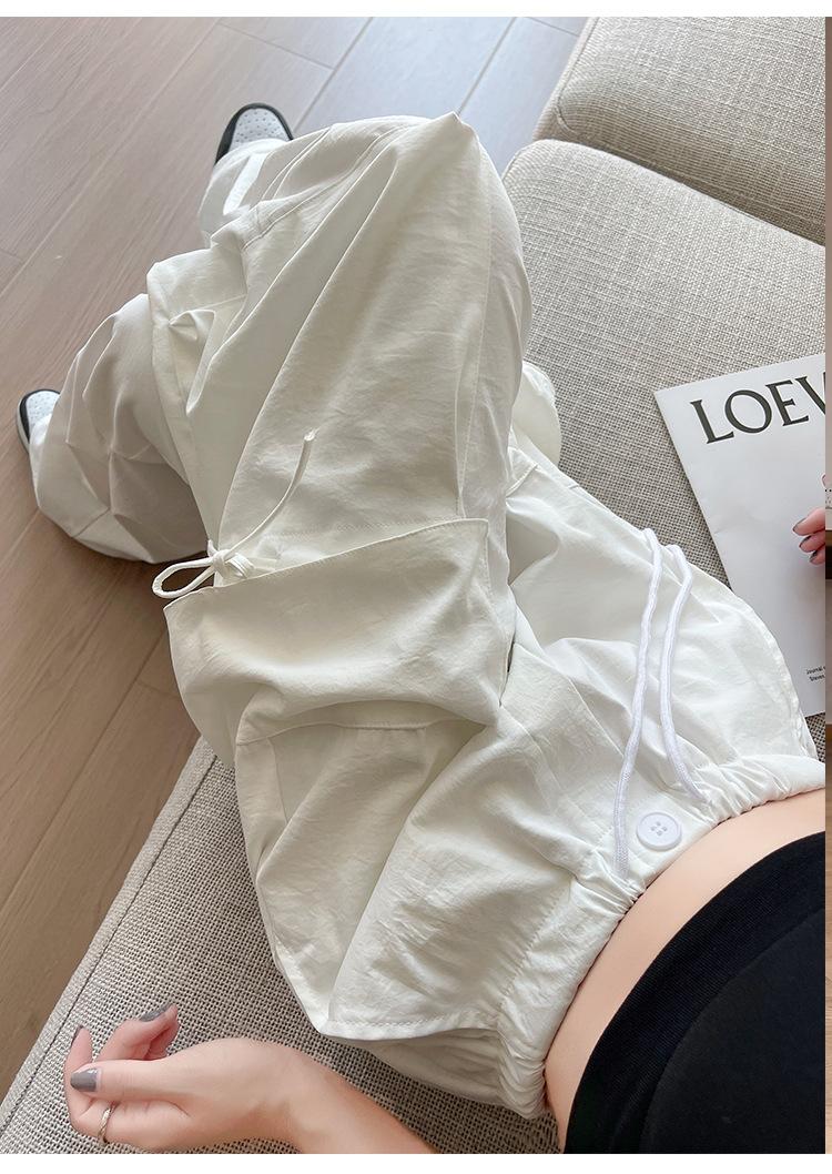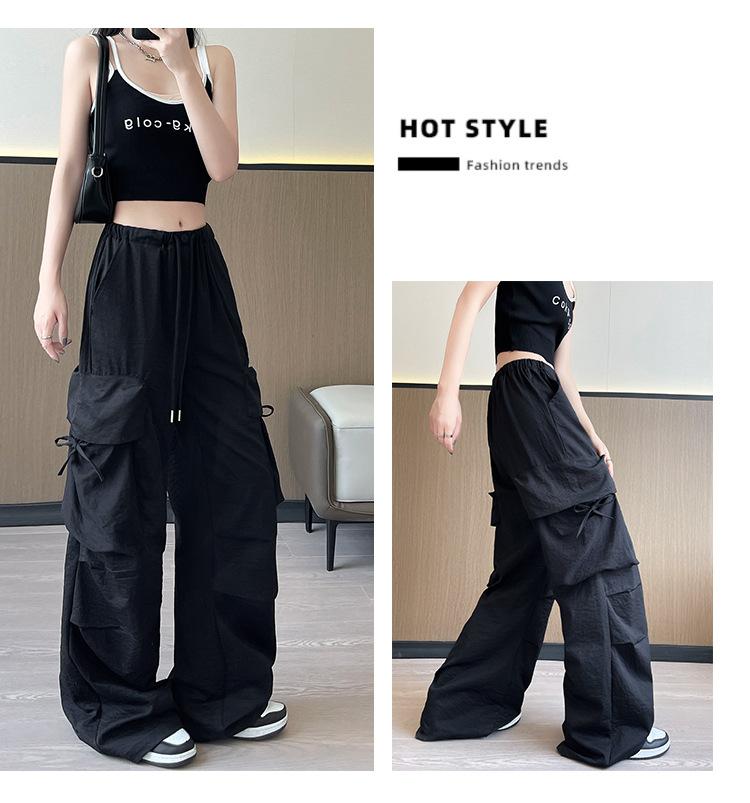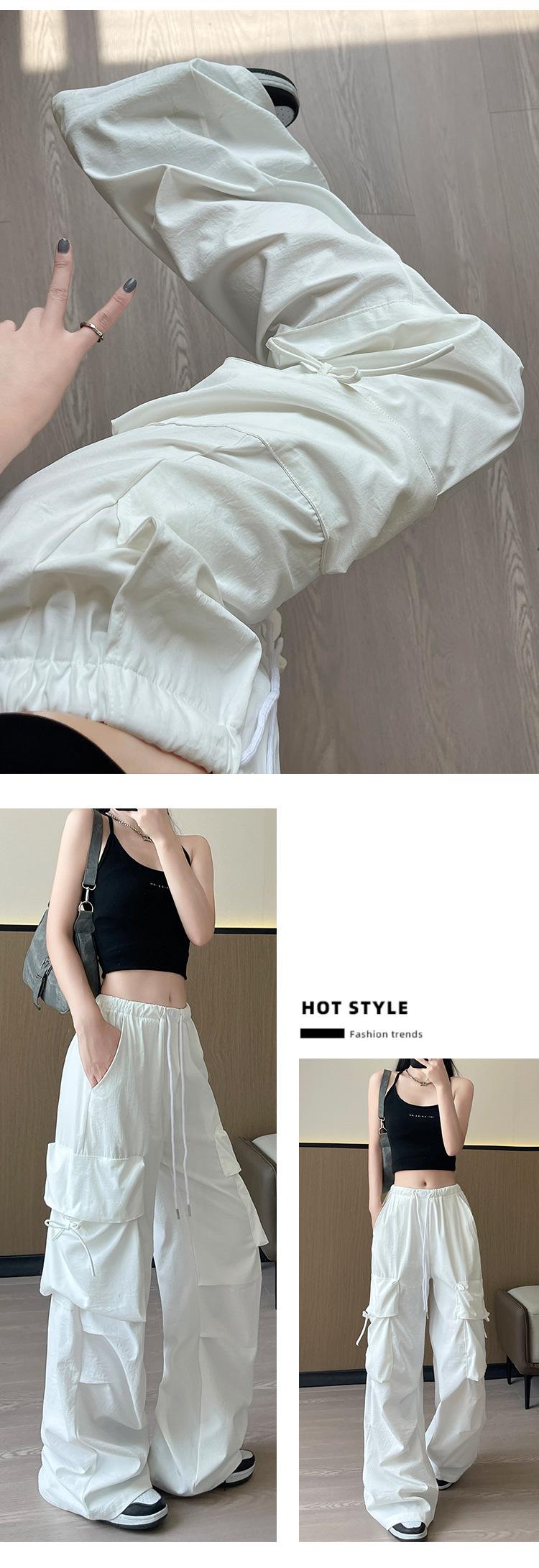 Overol Americano Pantalones de Mujer Primavera y Otoño Nuevo Cintura Alta Drapeado Paracaídas Pierna Ancha Pantalón Deportivo Adelgazante Secado Rápido