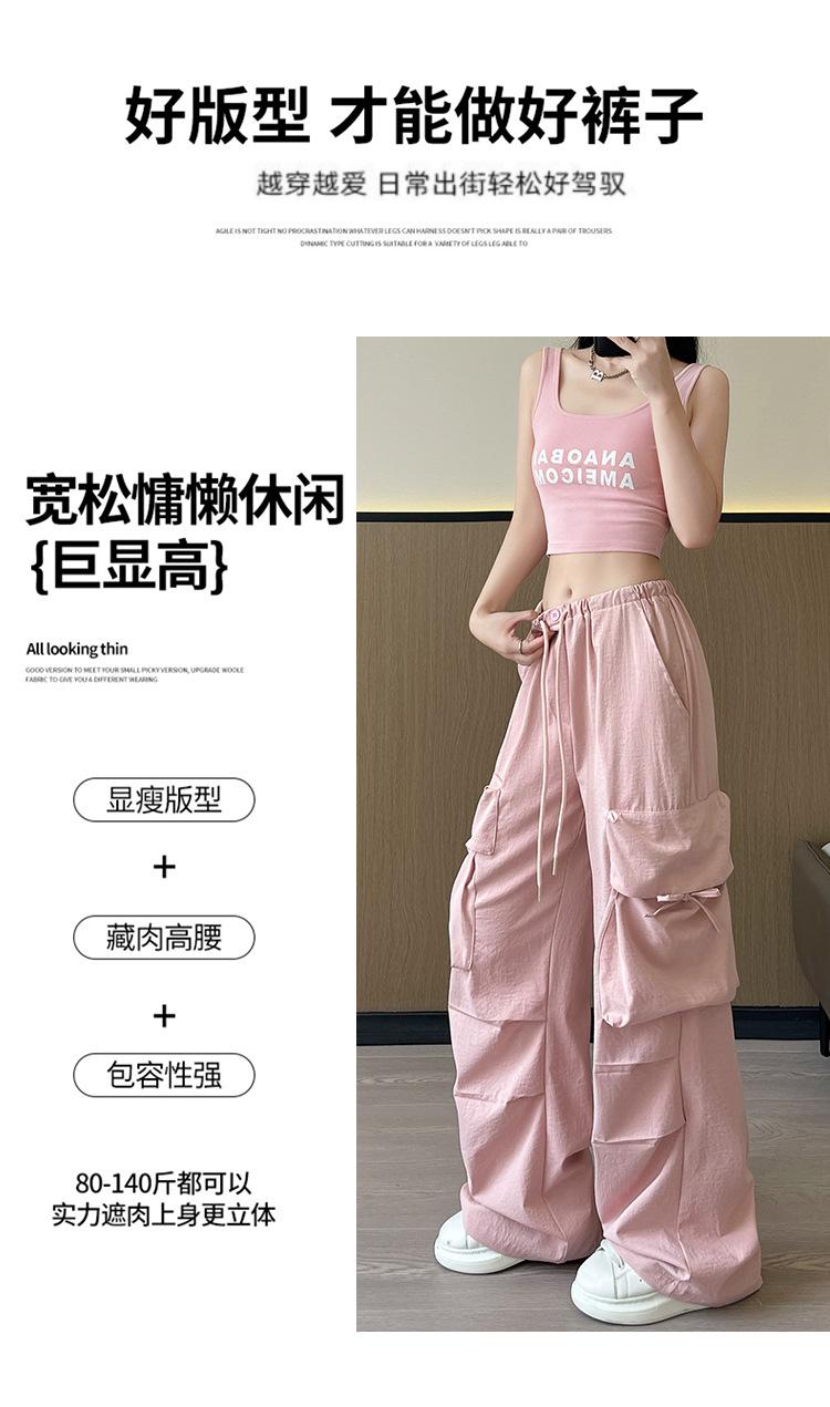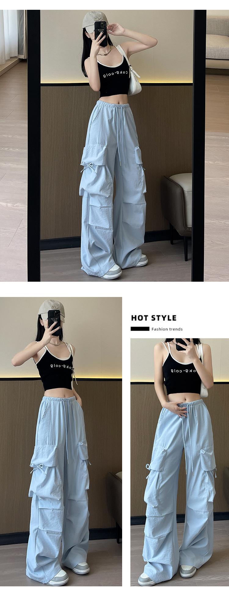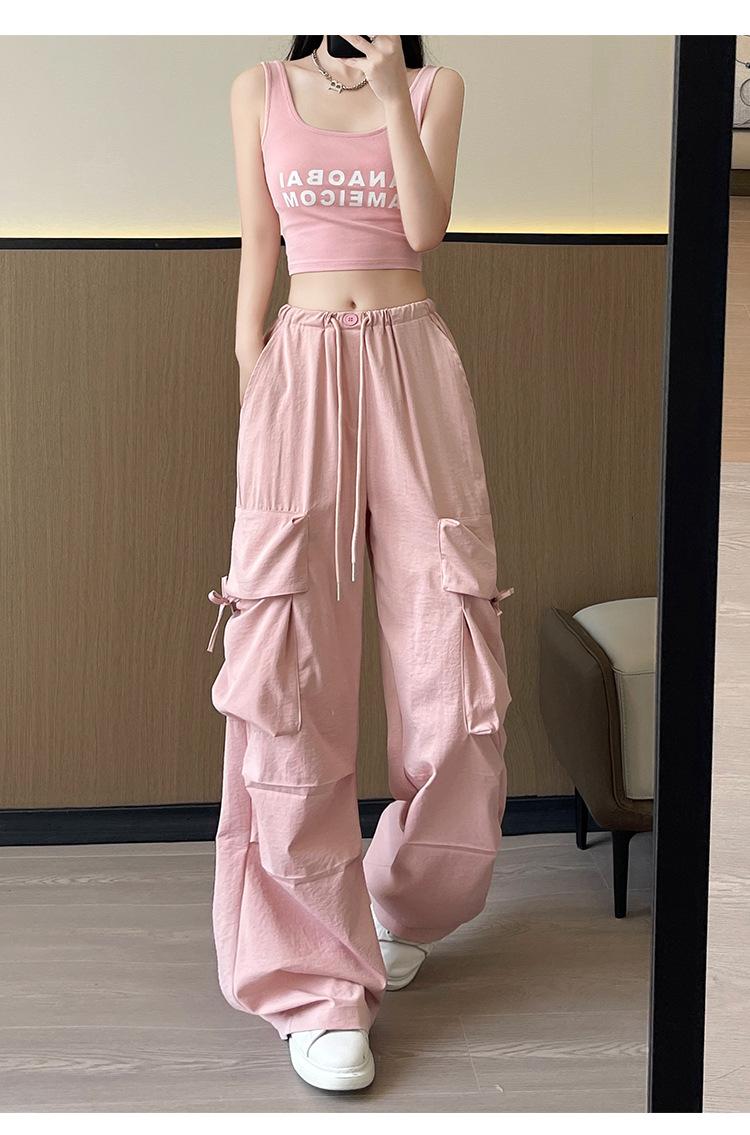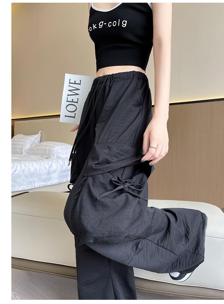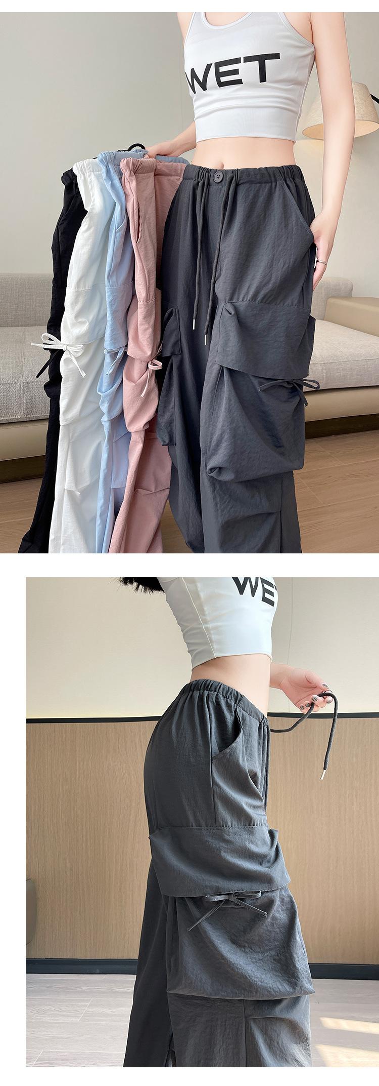 Overol Americano Pantalones de Mujer Primavera y Otoño Nuevo Cintura Alta Drapeado Paracaídas Pierna Ancha Pantalón Deportivo Adelgazante Secado Rápido