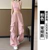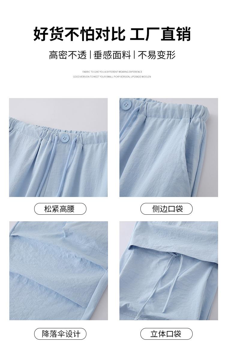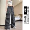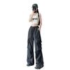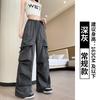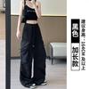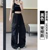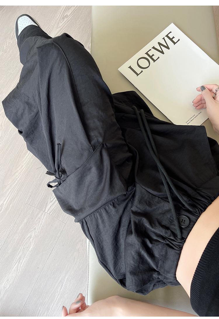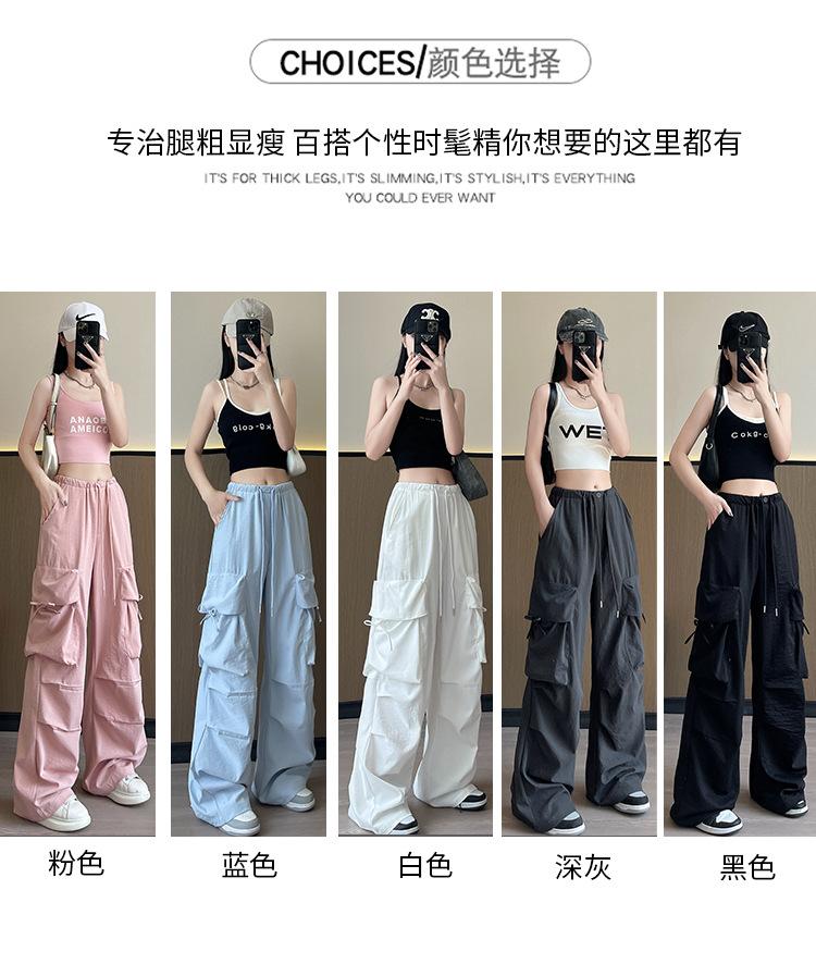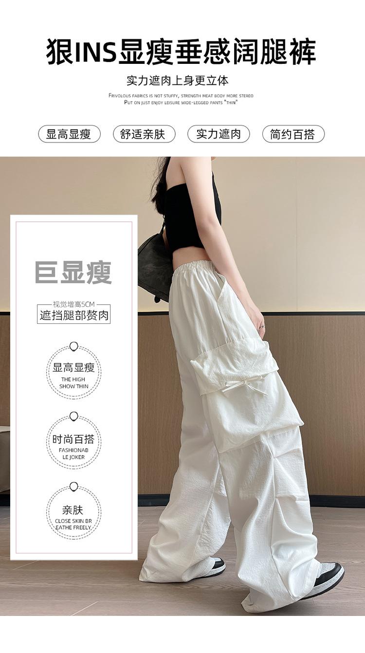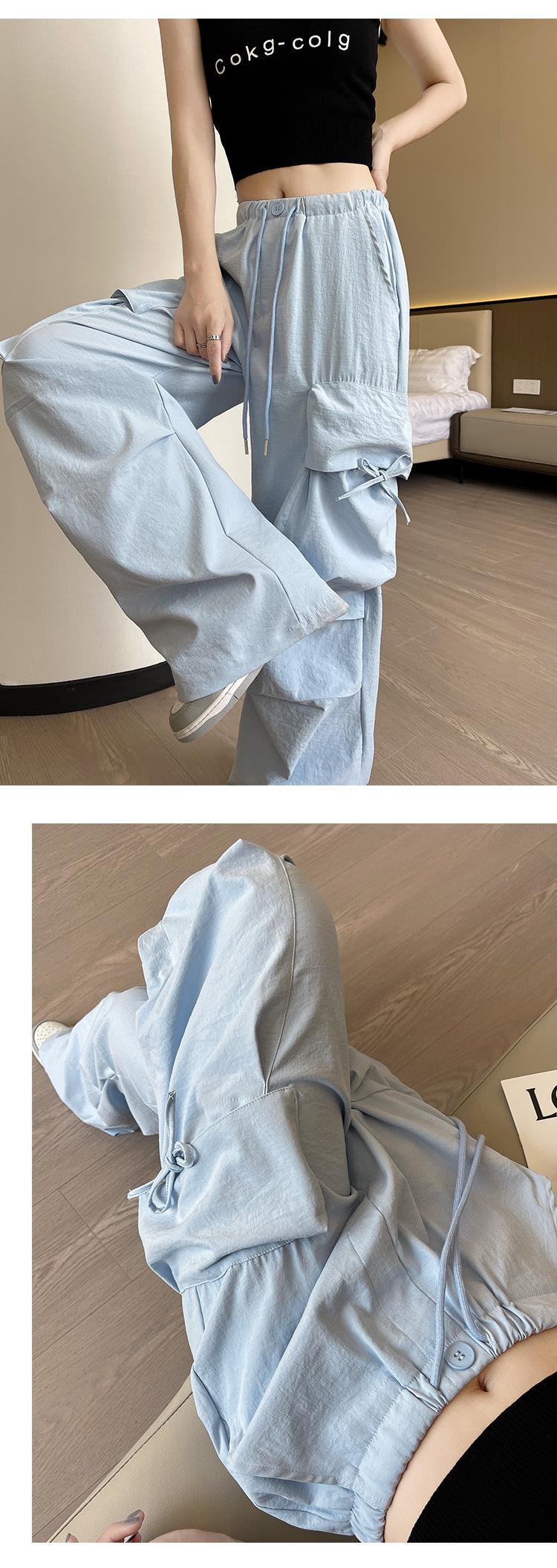 Overol Americano Pantalones de Mujer Primavera y Otoño Nuevo Cintura Alta Drapeado Paracaídas Pierna Ancha Pantalón Deportivo Adelgazante Secado Rápido