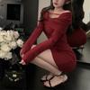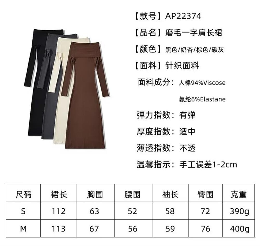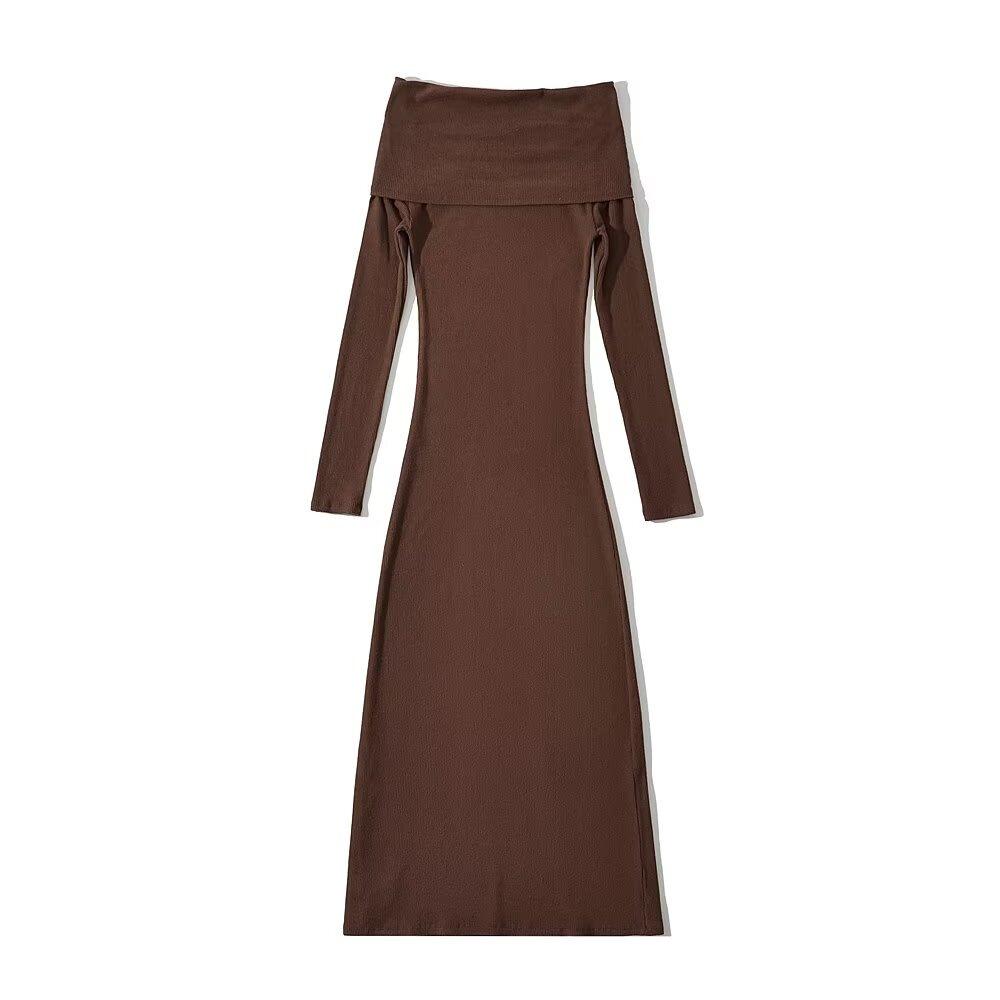 Vestido de punto cepillado con hombros descubiertos para mujer de moda YPFF, nuevo suéter de otoño, falda a la cadera, falda larga de fondo