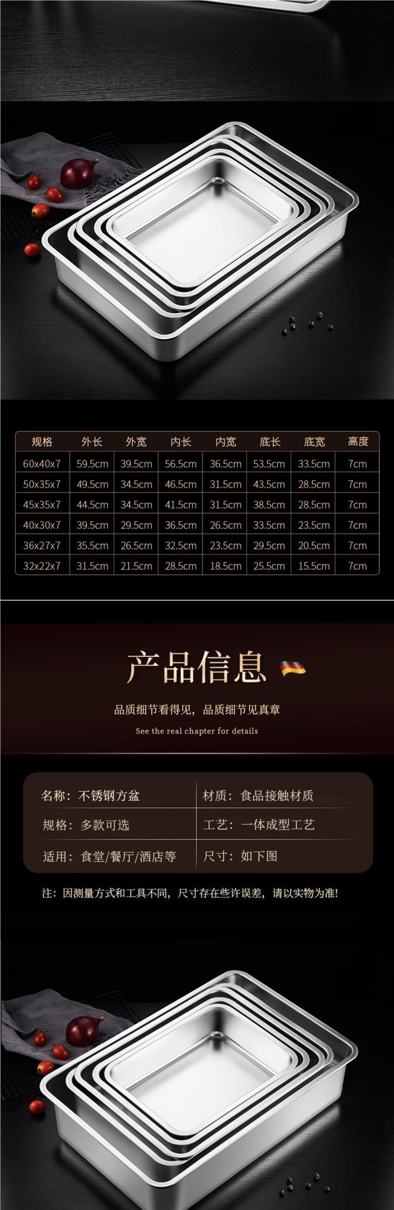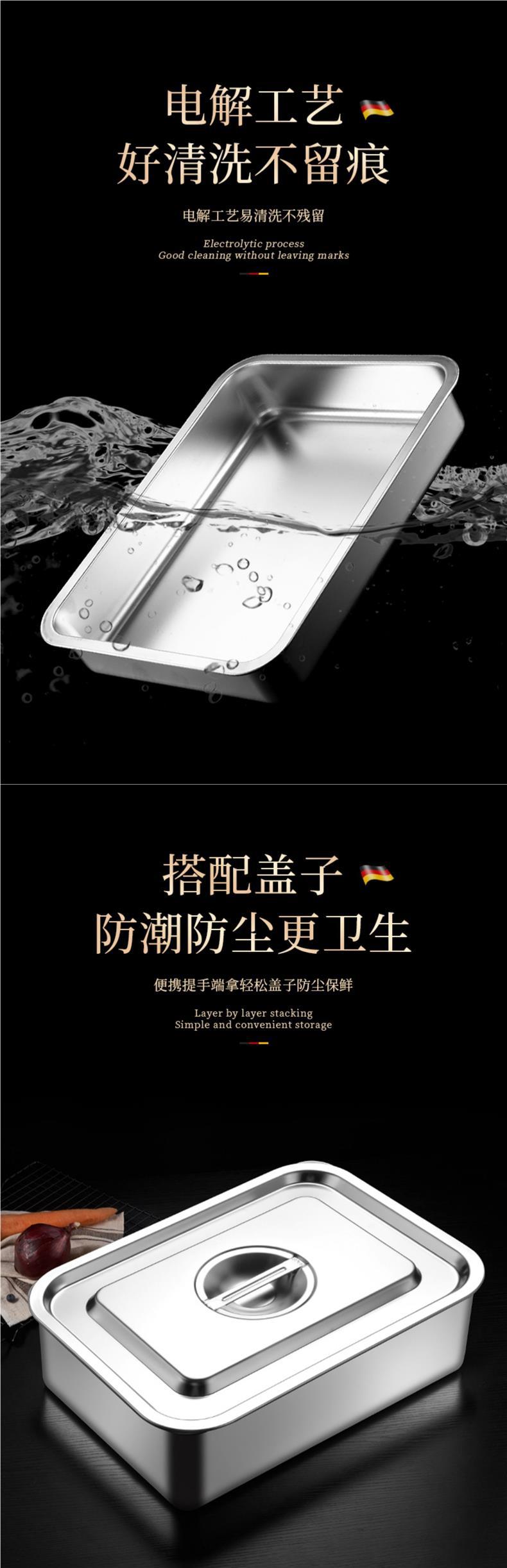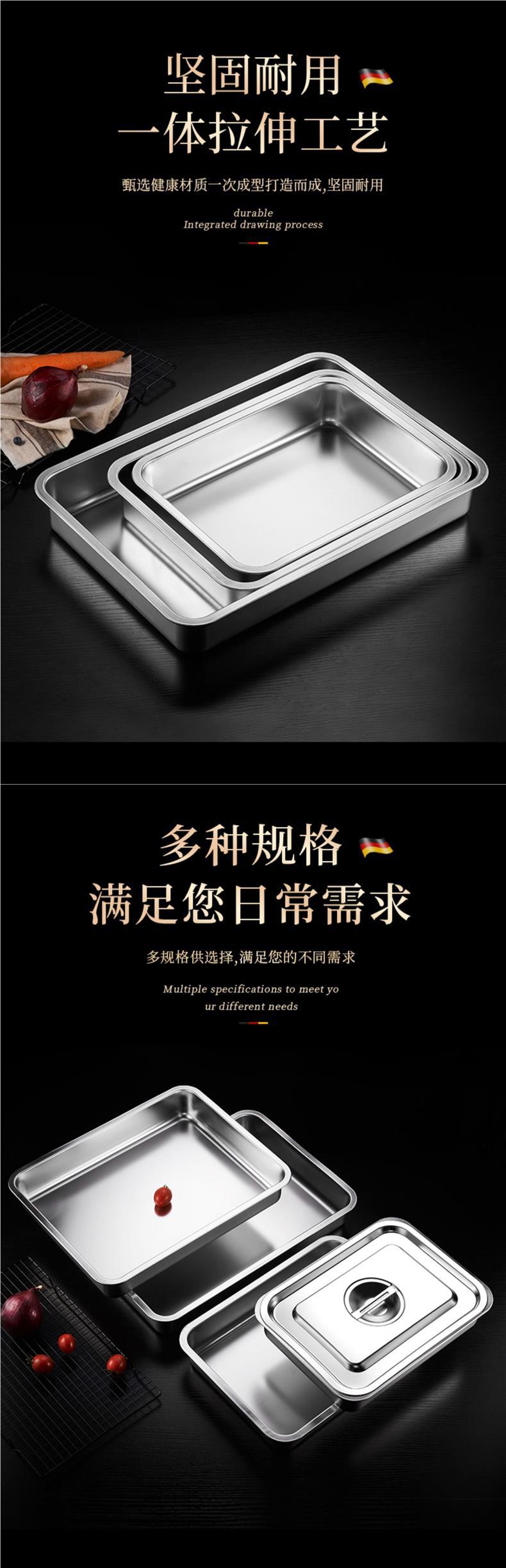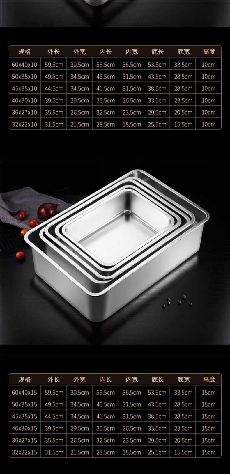 Cuenco cuadrado de acero inoxidable 304, plato rectangular, cuenco de buffet, bandeja de profundización, caja cuadrada de comida rápida con tapa