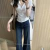 Una generación de comercio exterior, camiseta de manga corta con solapa de color sólido, camiseta de algodón para mujer, top ajustado y elástico, polo al por mayor