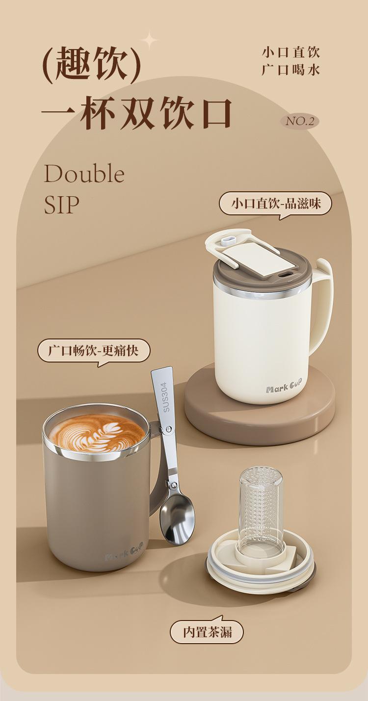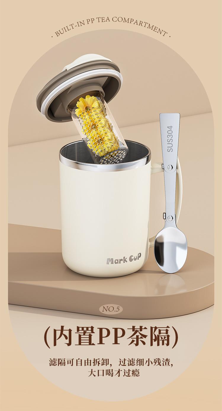 Suministro directo de fábrica, taza de café de alto valor de color, acero inoxidable 304 con drenaje de té, taza de oficina con tapa, generación de tazas