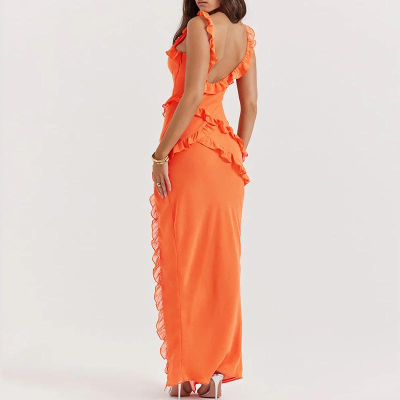Vestido irregular sin espalda de color sólido sexy de nueva moda de Amazon para mujer de comercio exterior transfronterizo europeo y americano de verano de 2023