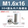 Tornillo de cabeza hexagonal redonda de acero inoxidable 304 M1.6M5, tornillo de cabeza hexagonal con cabeza de hongo