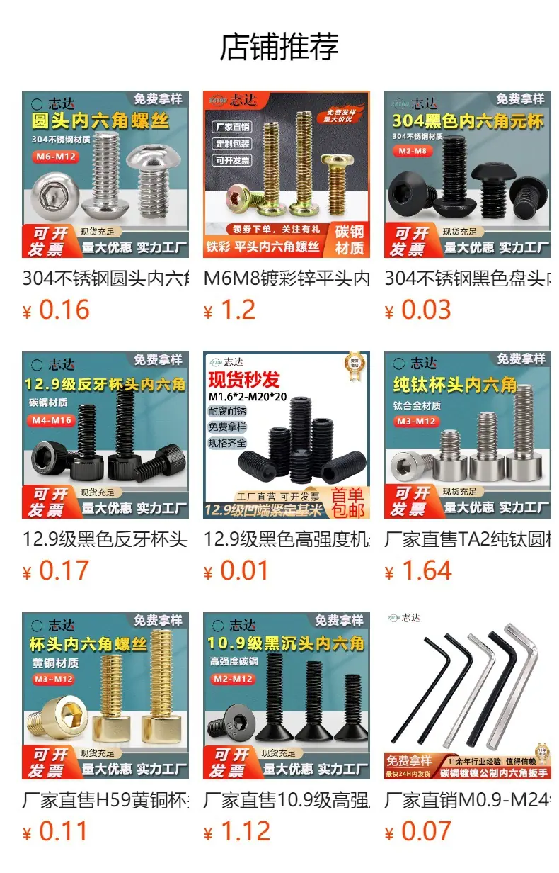 M1.6*3 (wrench 1.27mm), M1.6*4 (wrench 1.27mm), M1.6*5 (wrench 1.27mm), M1.6*6 (wrench 1.27mm), M1.6*8 (wrench...