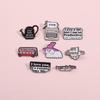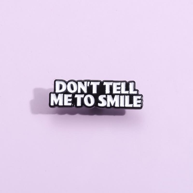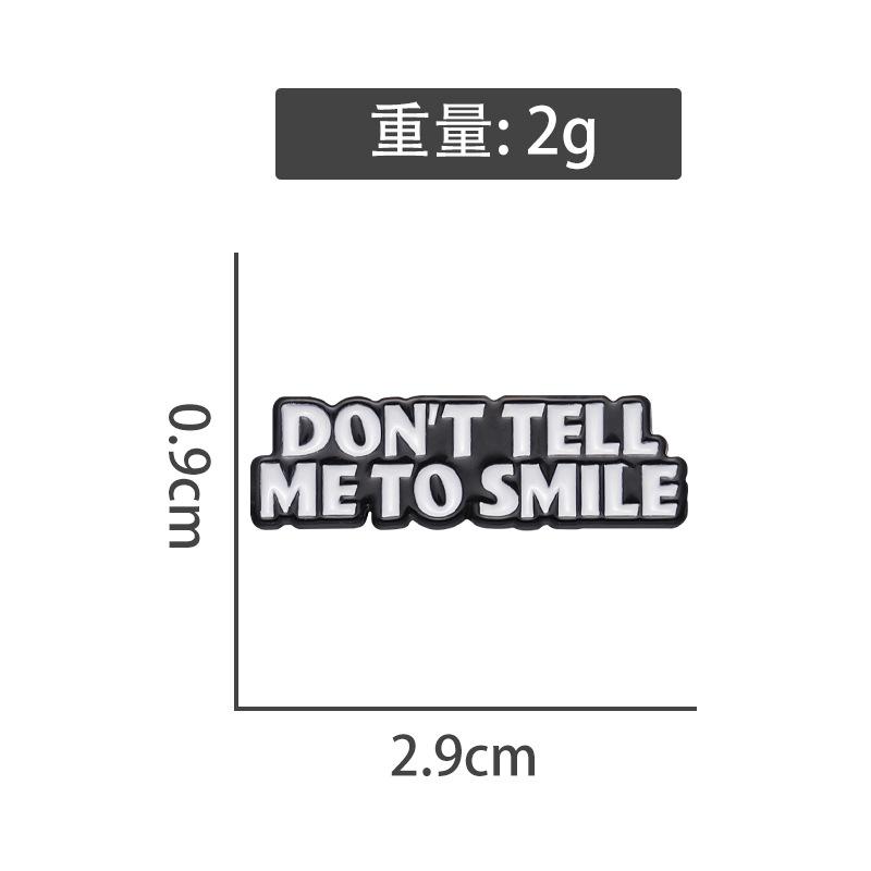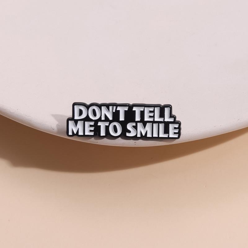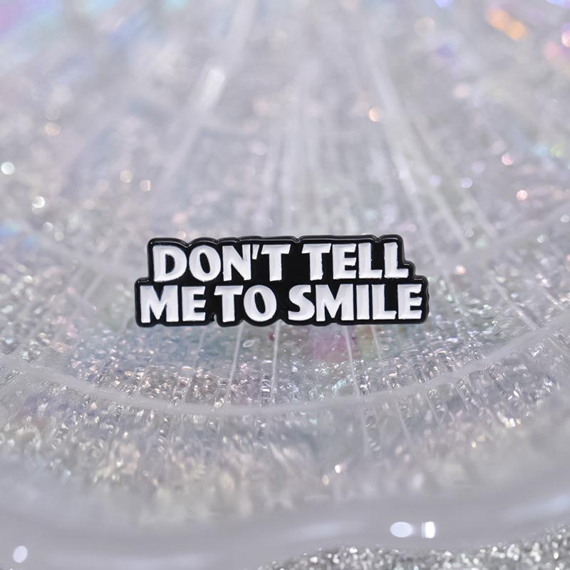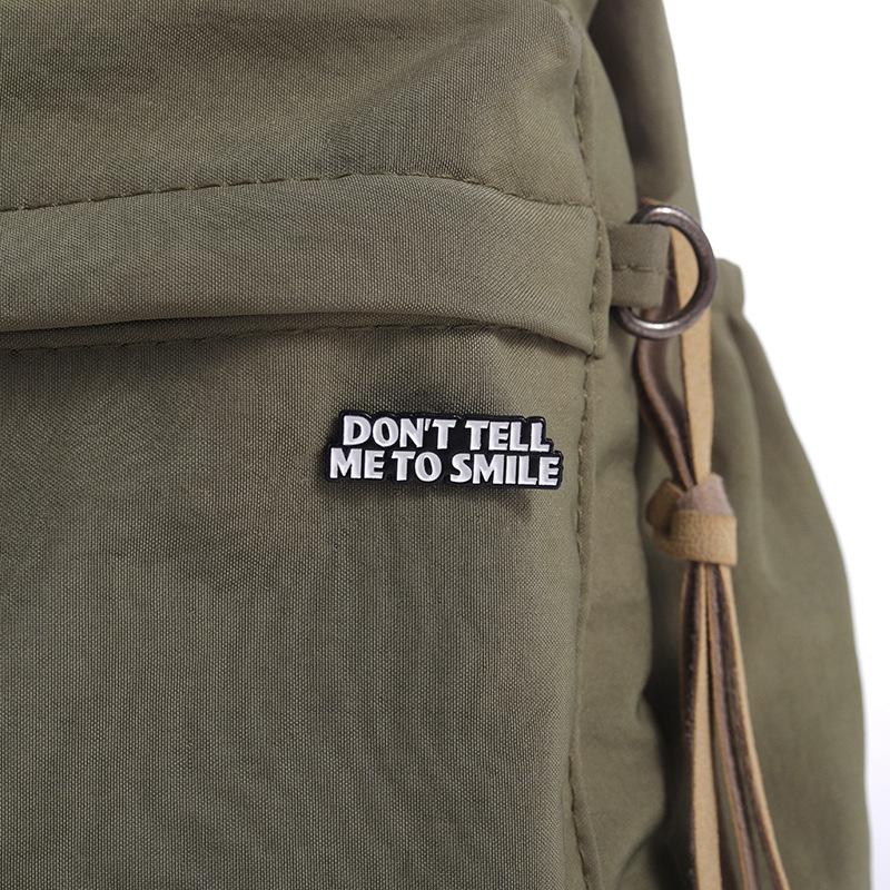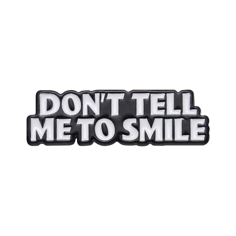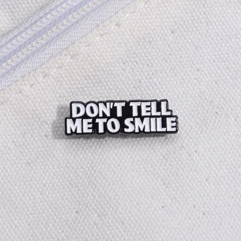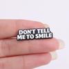 Comercio exterior, creativo, divertido, letras en inglés, no me digas que sonrías, frase corta, bolsa de ropa personalizada, broche que combina con todo