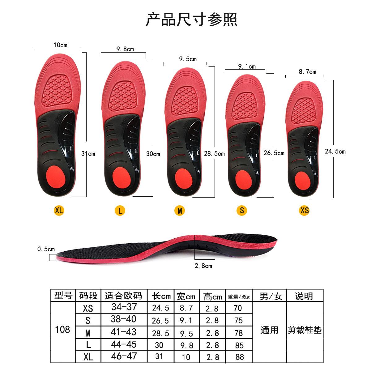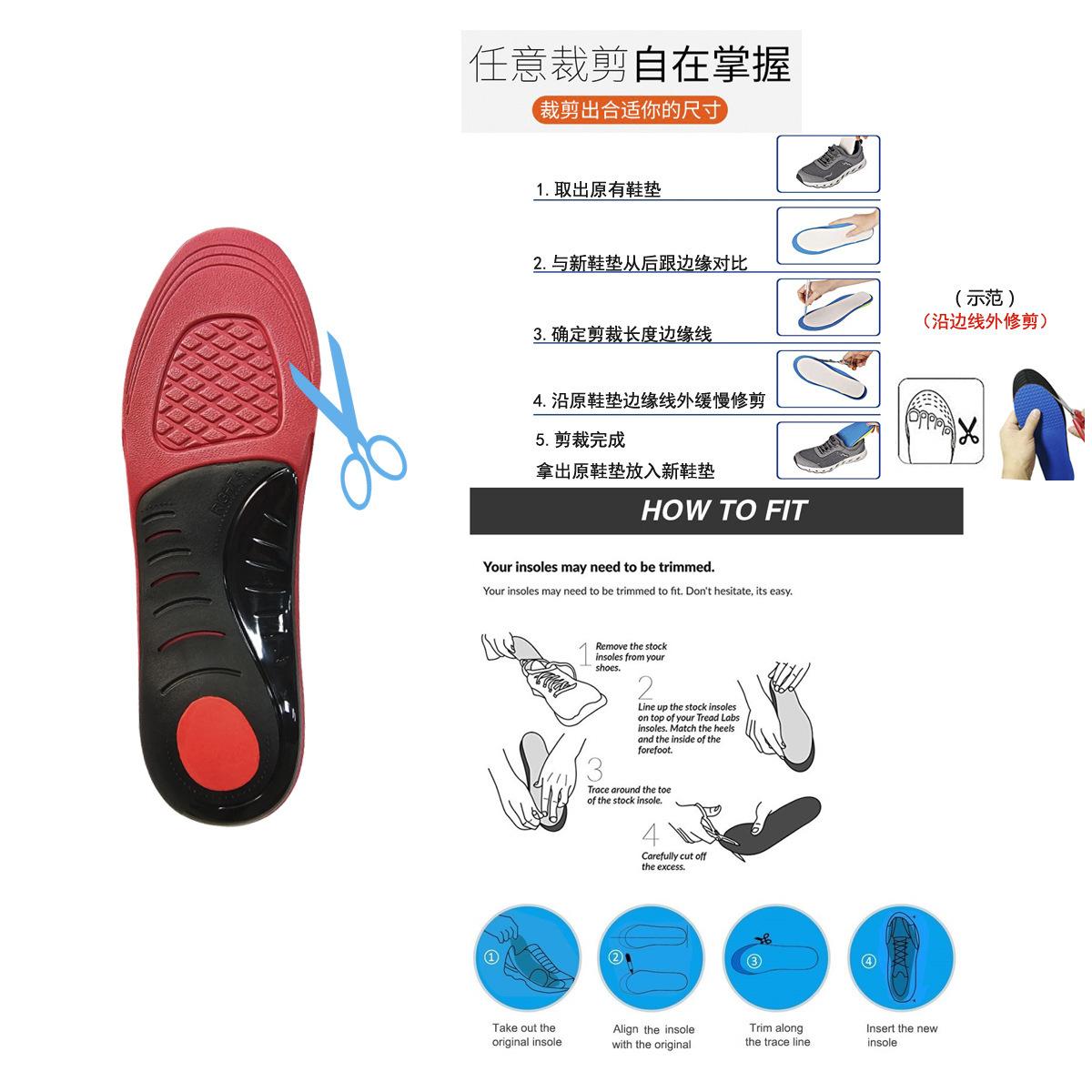 XS 34-37, S 38-40, M 41-43, L 44-45, XL 46-47, One size fits all cut insoles