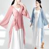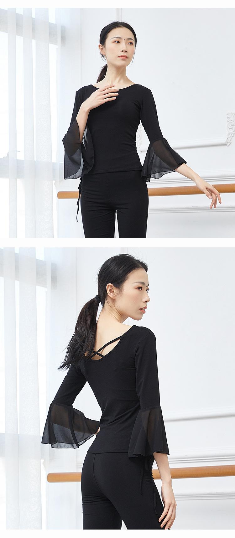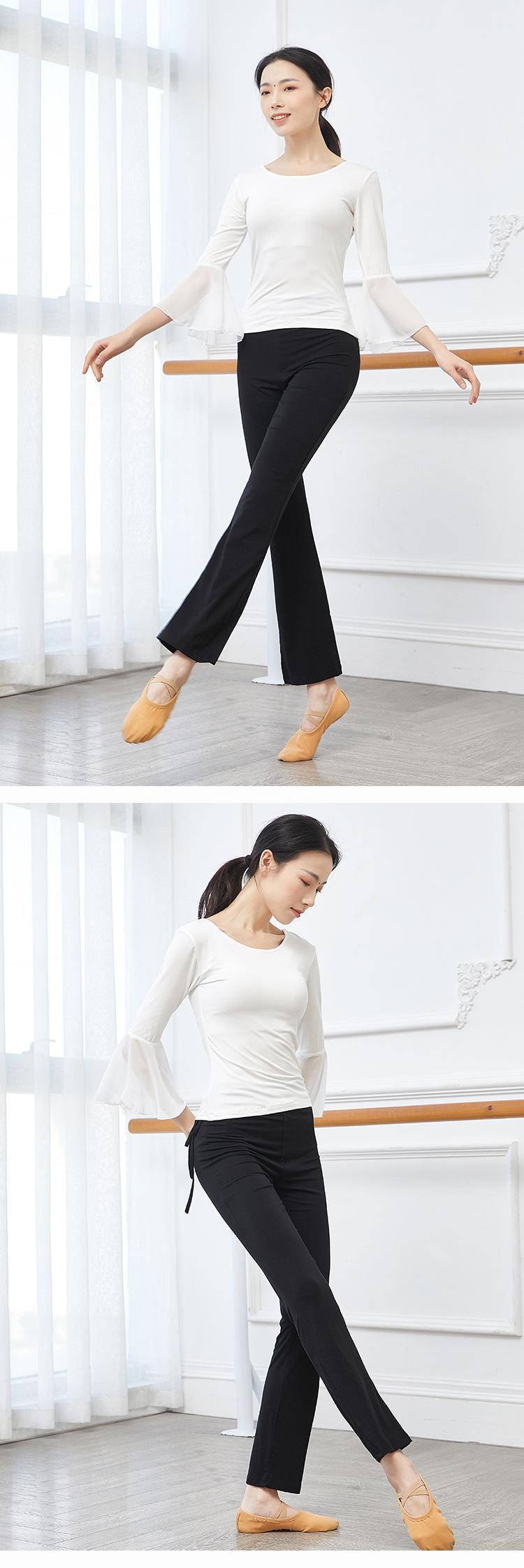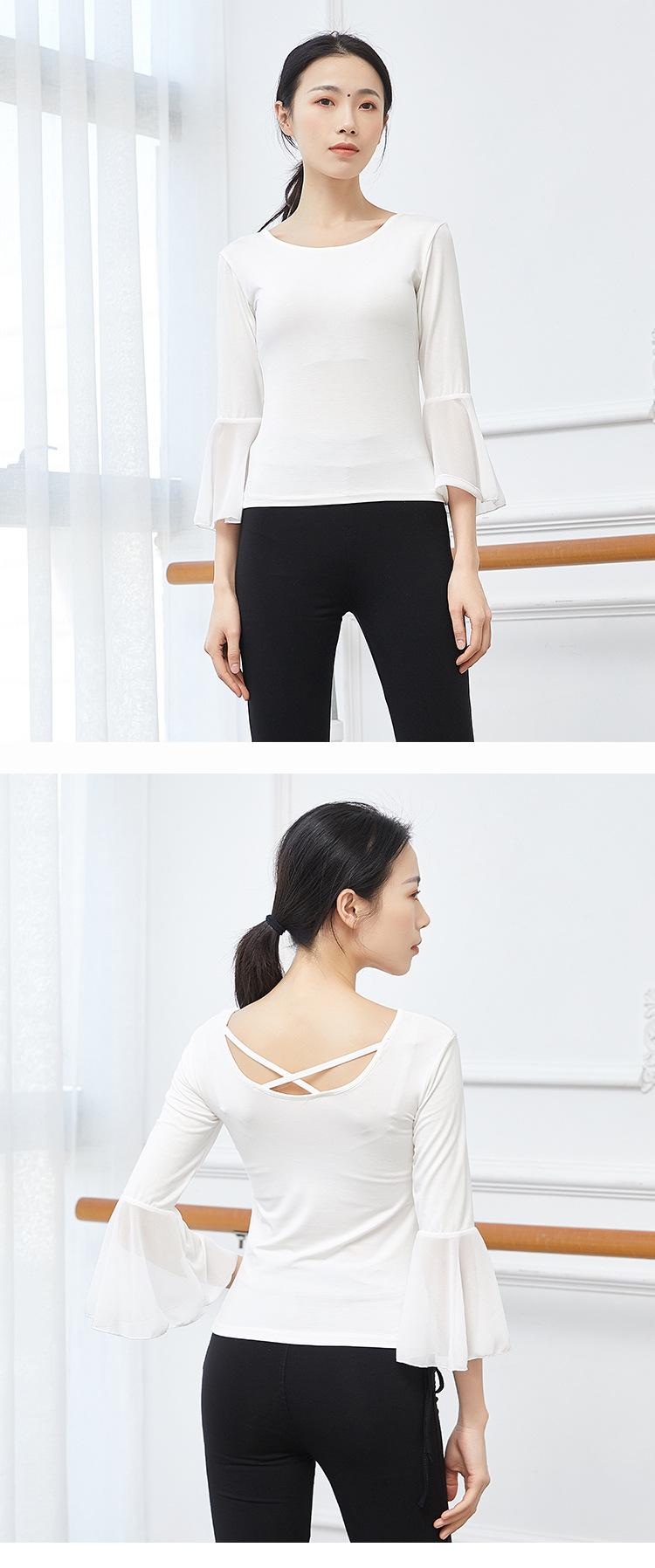 Ropa de práctica de baile con mangas de trompeta blancas para mujer, traje de danza clásica china latina, ropa étnica de manga media