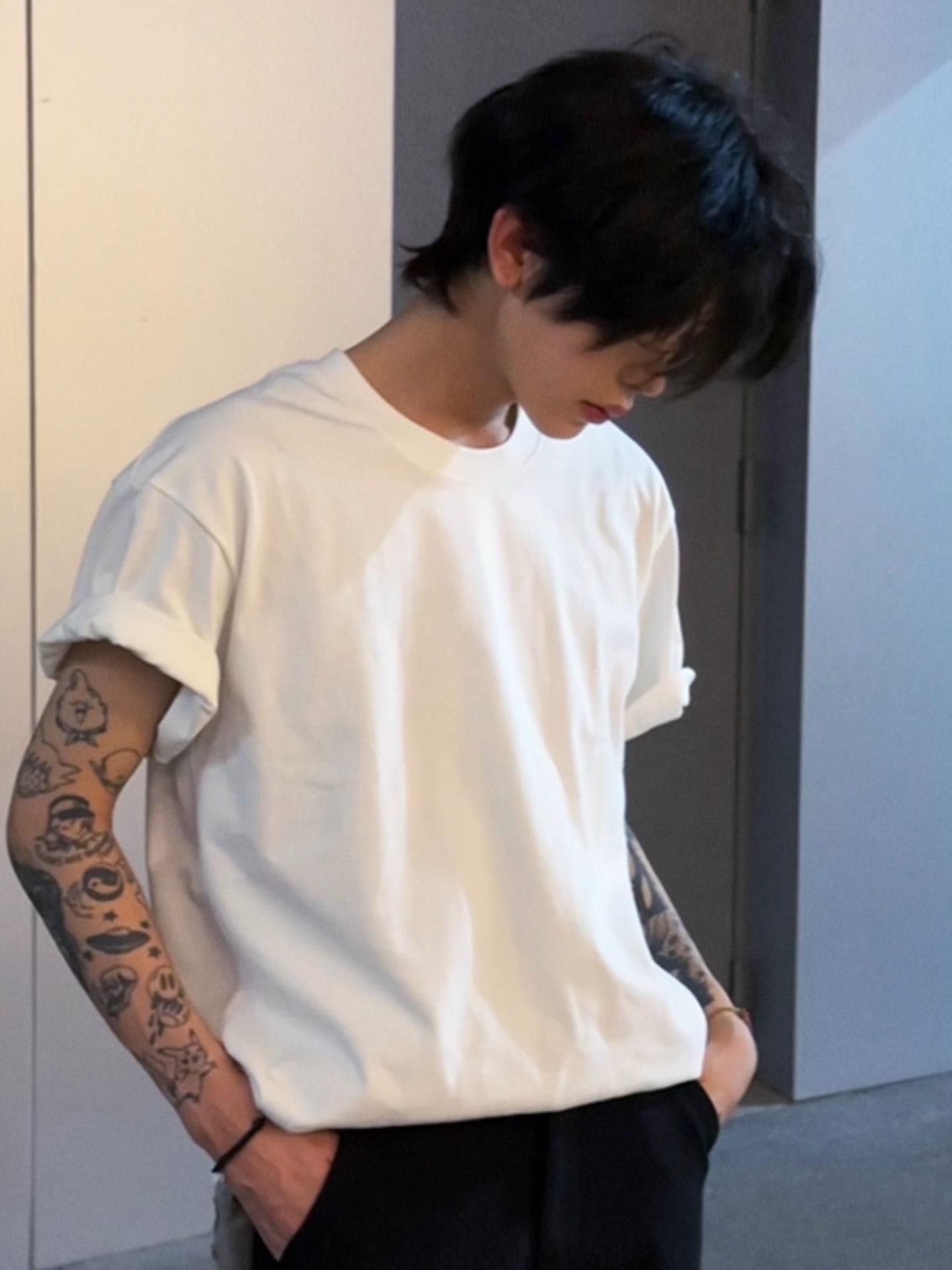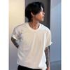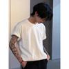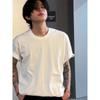 Camiseta de algodón para hombre, estilo yuppie británico, corte ajustado, cuello pequeño, manga corta, interior blanco, media manga