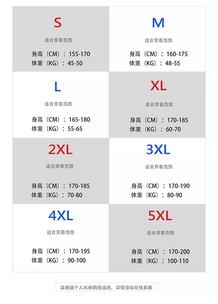 M, L, XL, 2XL, 3XL, 4XL, 5XL