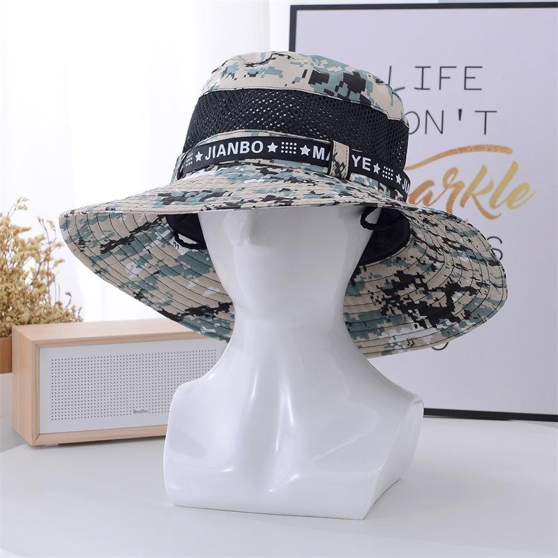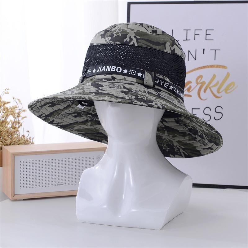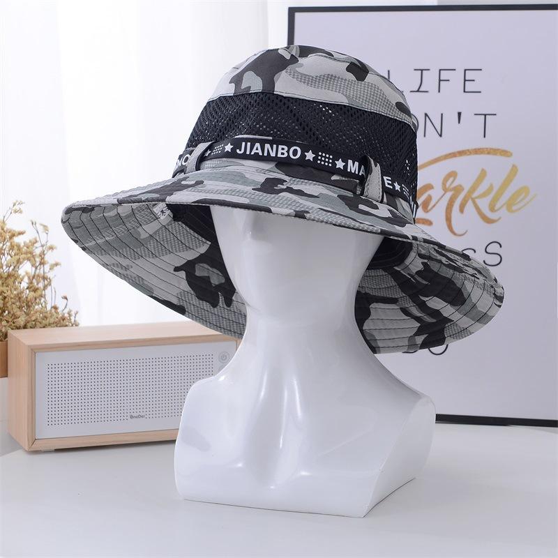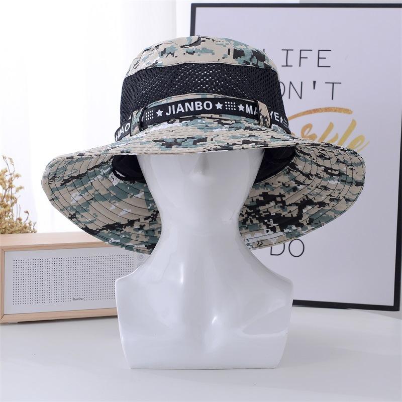 Sombrero para el sol para hombre, primavera y verano, para pesca al aire libre, camuflaje, con malla transpirable y ala grande, para pescador.