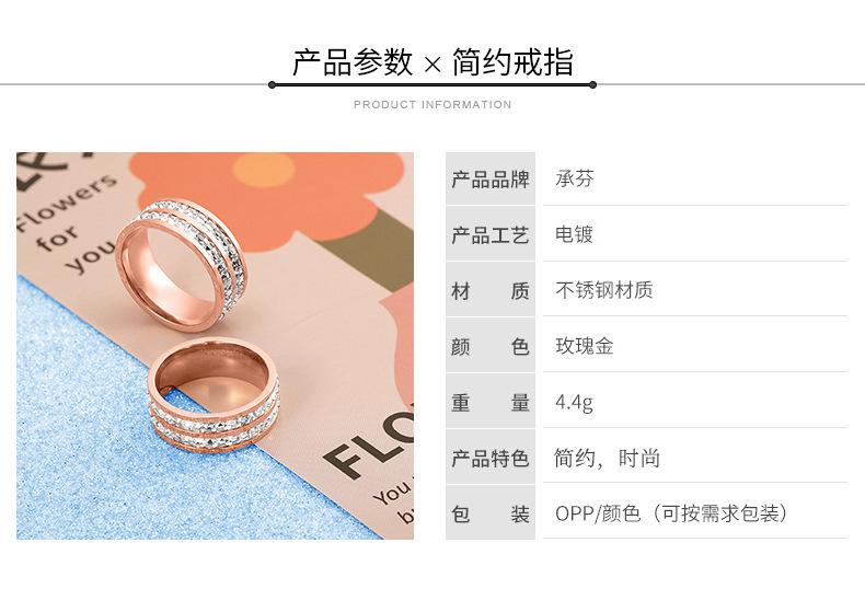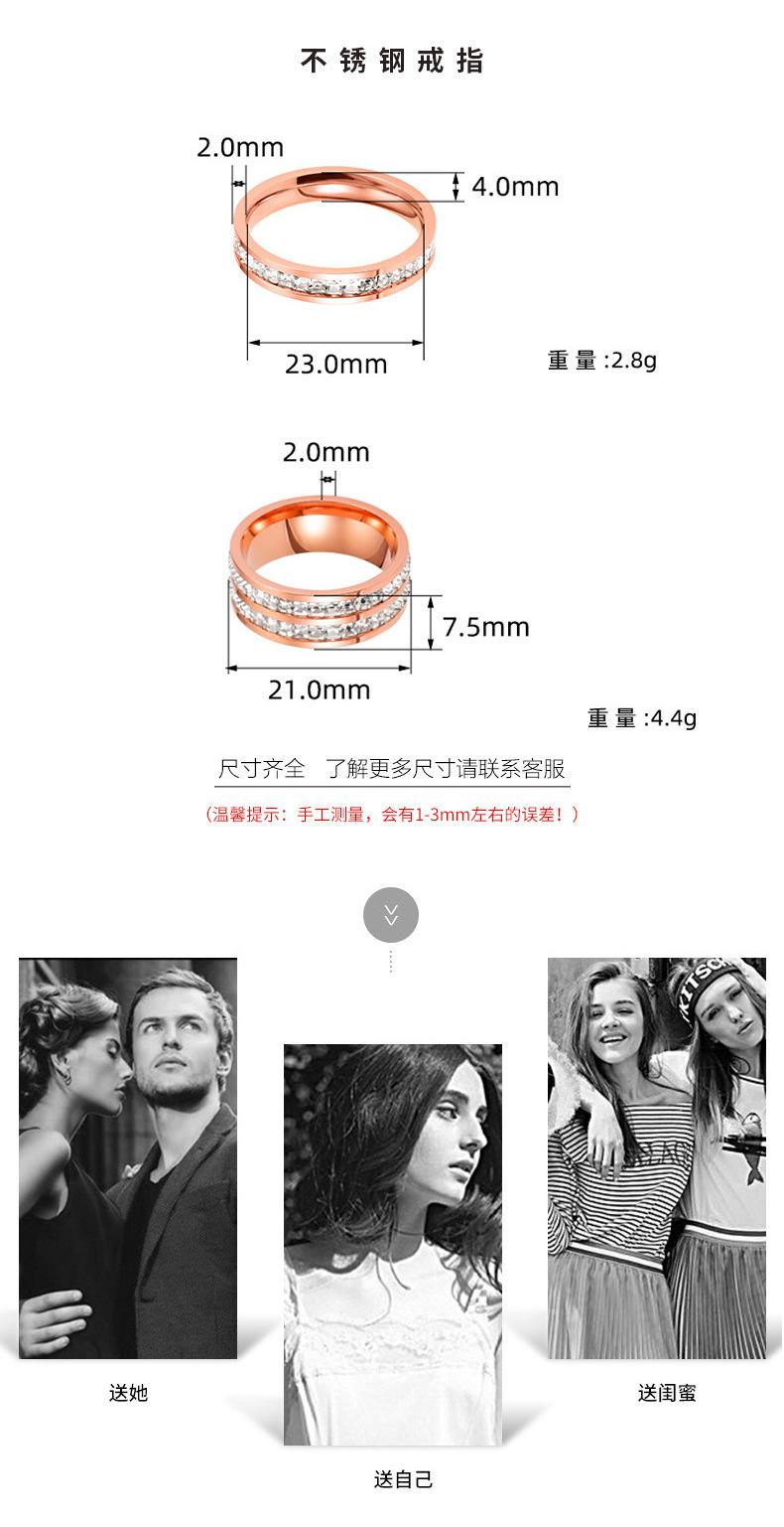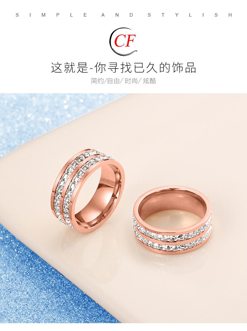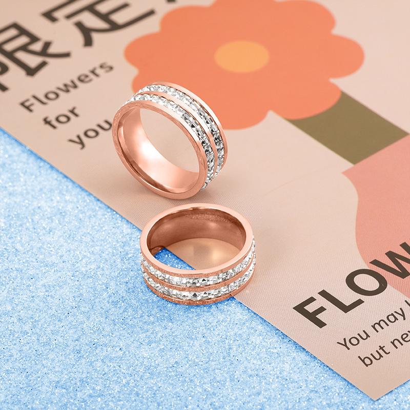 Anillo de acero de titanio de una y doble fila de estrellas de diamantes estilo ins que no se decolora para mujer, nicho de alta gama de lujo, anillo de acero inoxidable