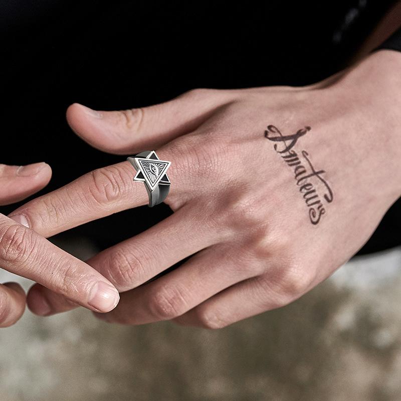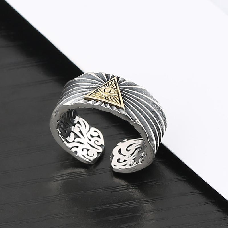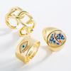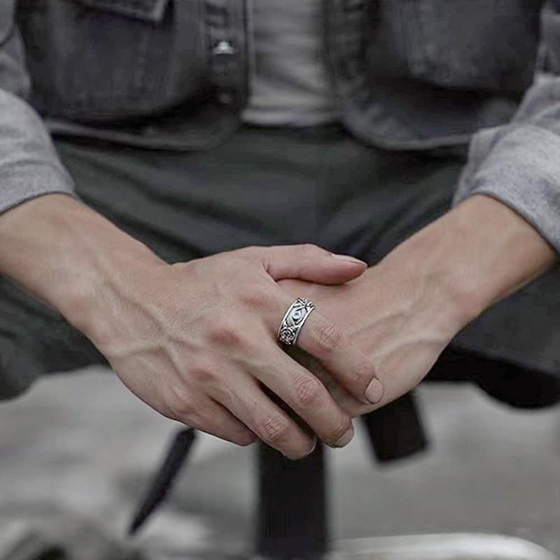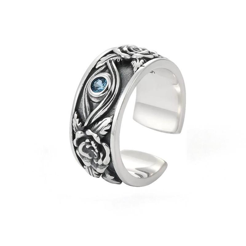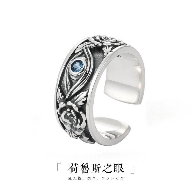 Anillo retro estilo británico Ojo de Dios abierto cristal azul temperamento Horus personalidad anillo repujado de rosa