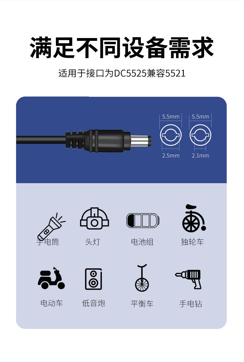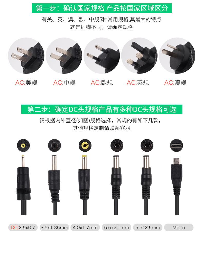 Interfaz de alimentación: Las interfaces predeterminadas son 5.5*2.5 (también 5.5*2.1), 4.0*1.7, 3.5*1.35 y 2.5*1.7. Si necesita estas tres interfaces, contáctenos.