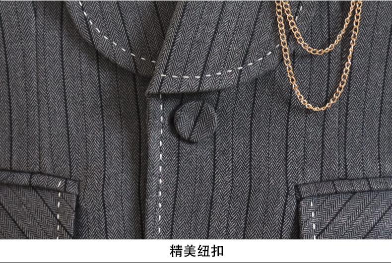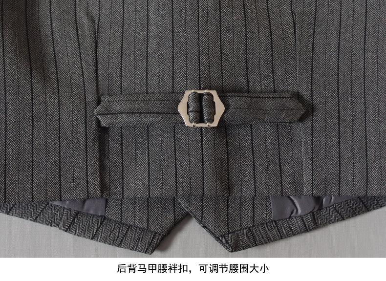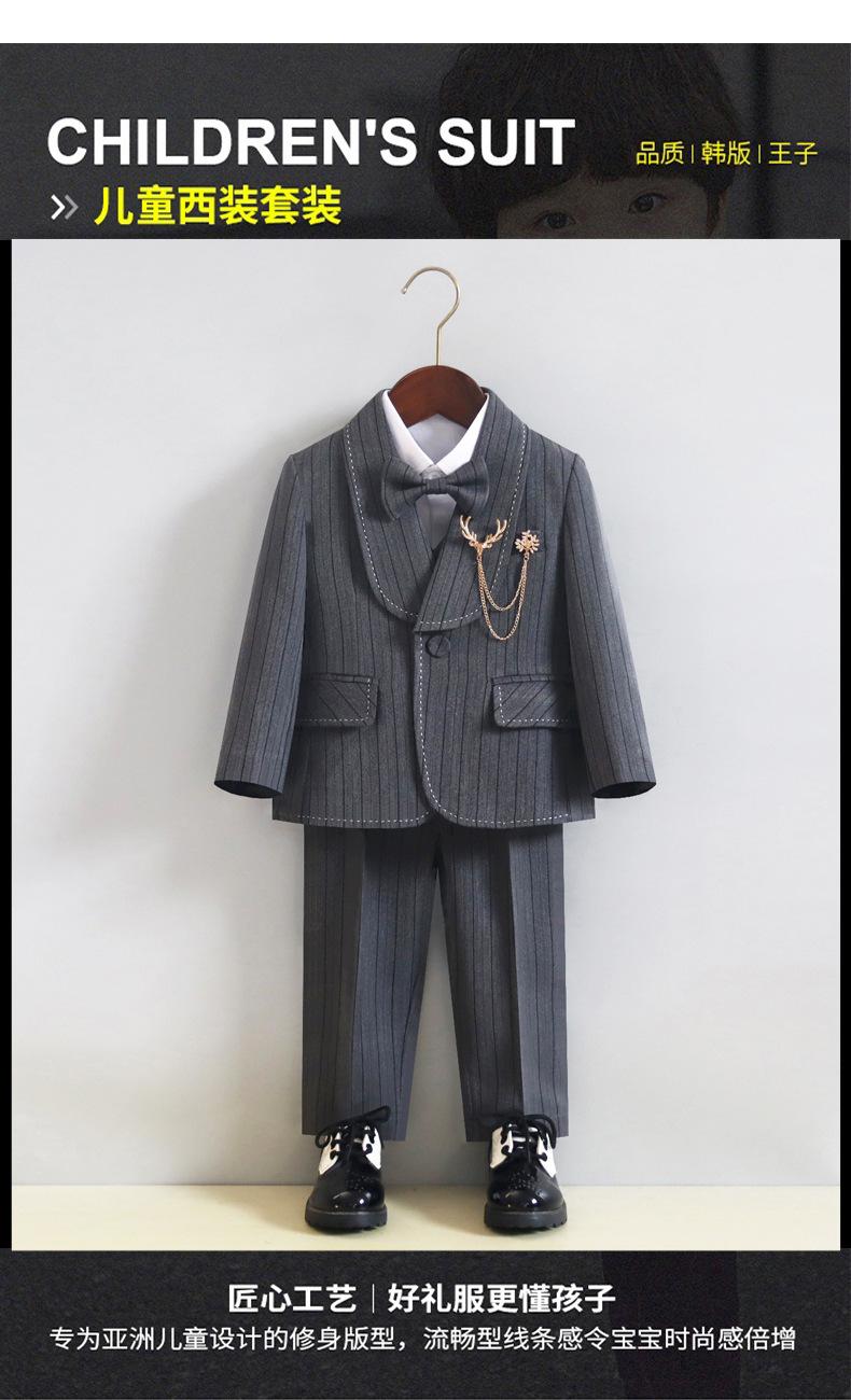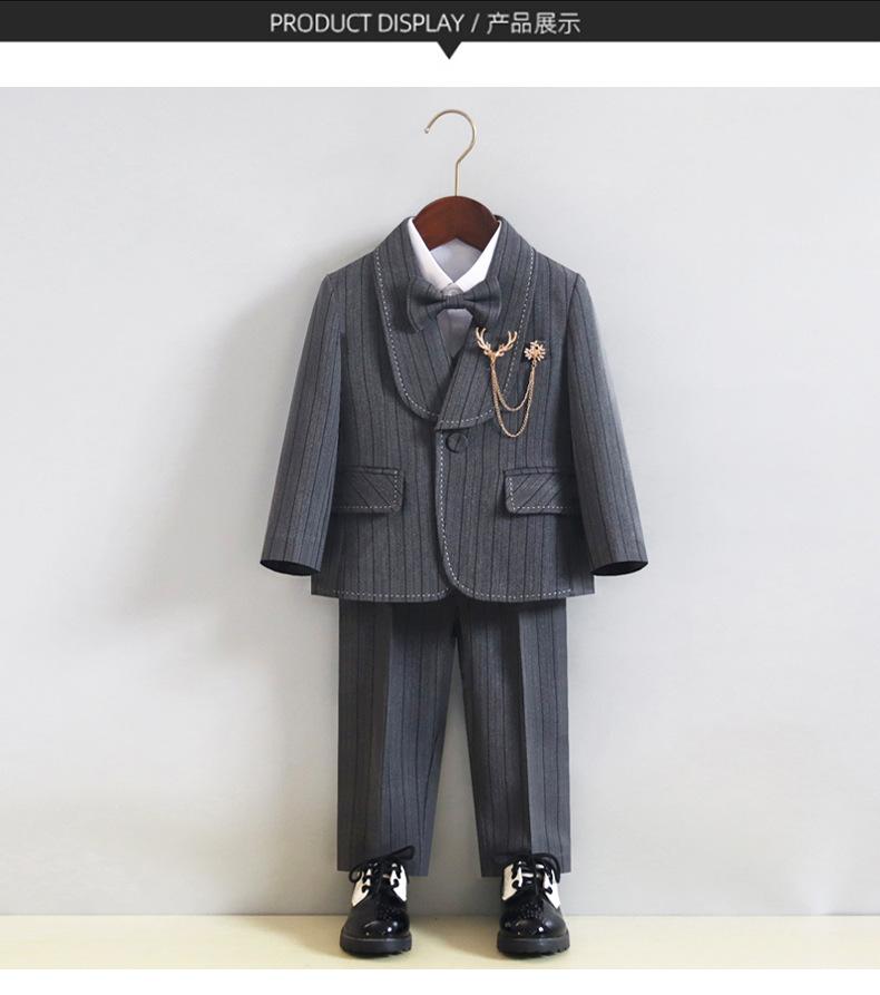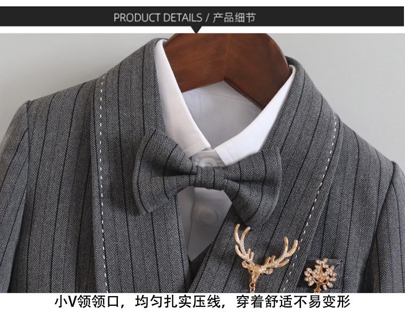 Gray: Suit + vest + pants + white cotton shirt + gray striped single layer bow tie + deer head small tree broo...