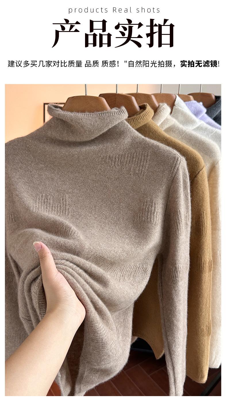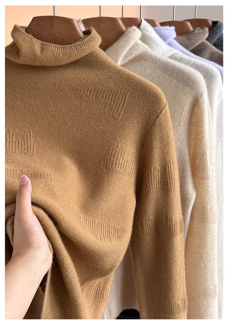 Suéter de cachemira 100% con cuello alto para mujer, otoño e invierno, nuevo jersey de punto básico, cárdigan de color liso, parte superior holgada