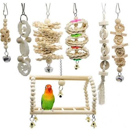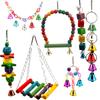 Conjunto de 7 piezas de juguetes combinados, juguete para loros, juguete para pájaros, suministros para pájaros, conjunto de juguetes para loros