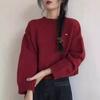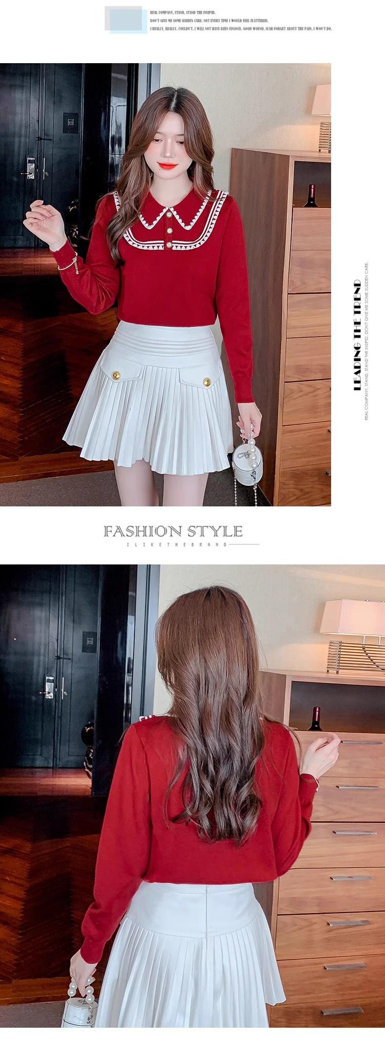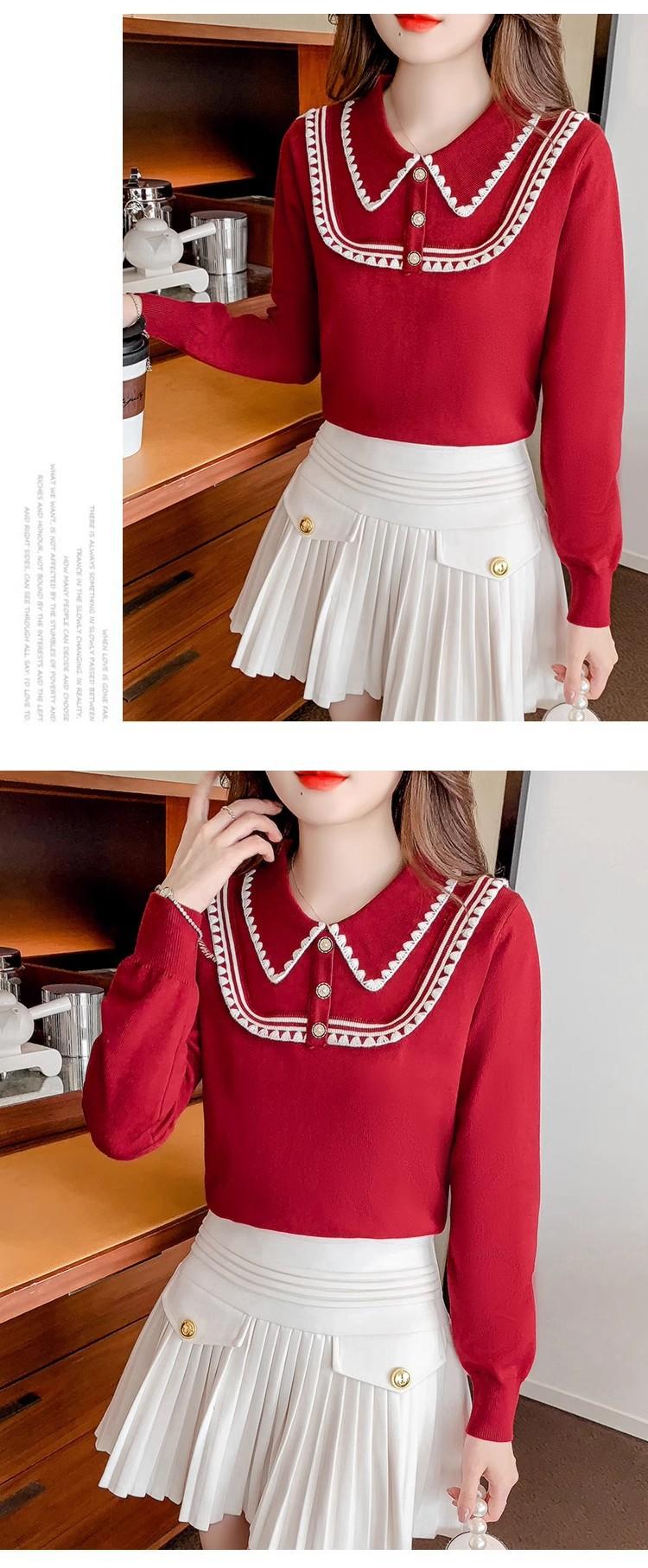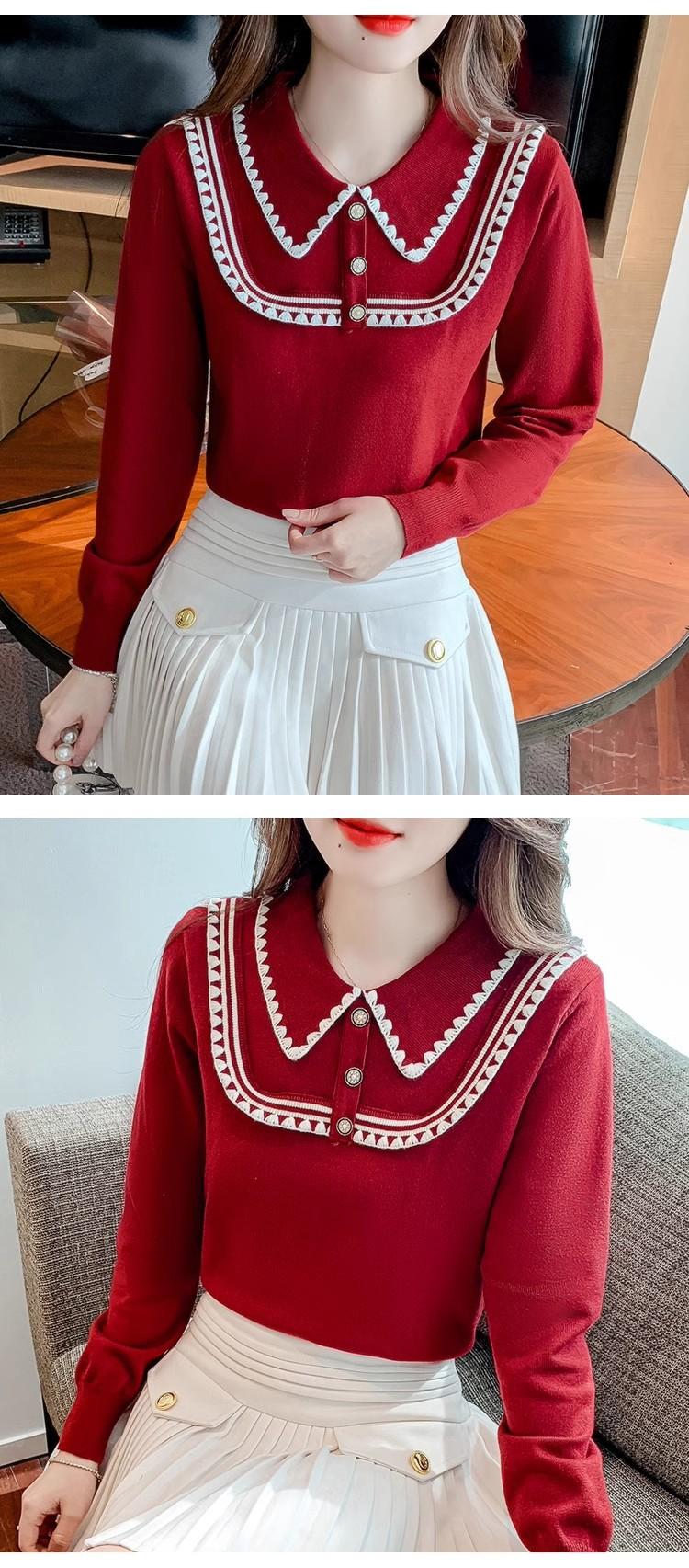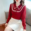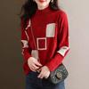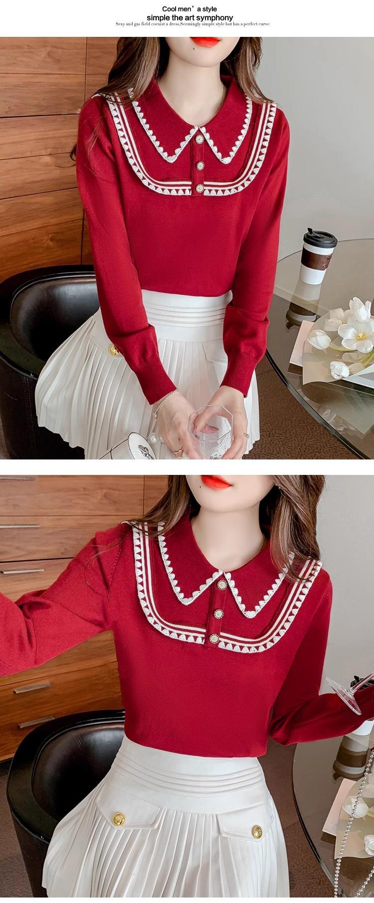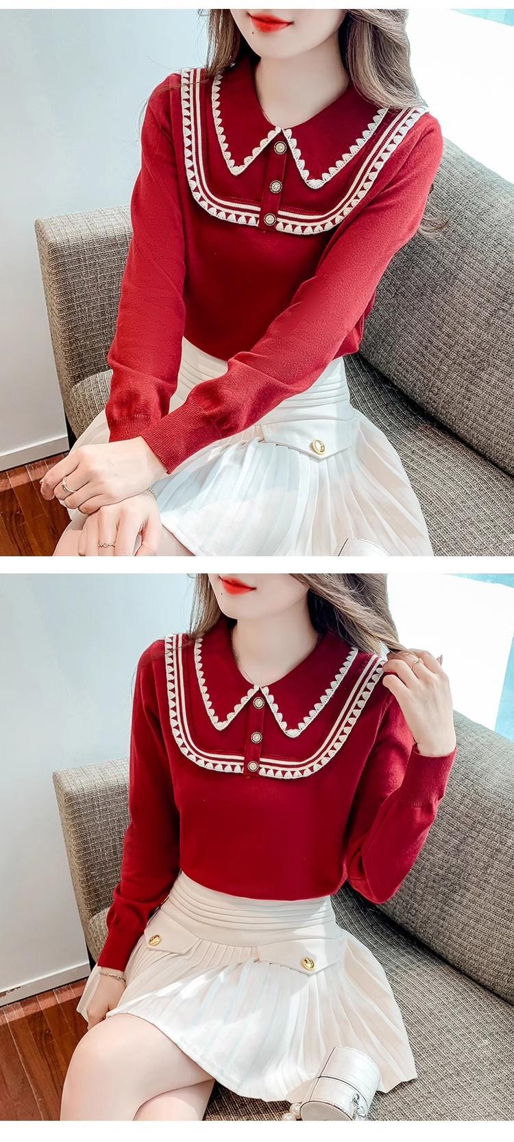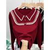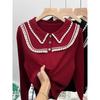 Suéter de punto de alta gama con cuello rojo corto y elegante único para otoño e invierno, camisa de base para mujer.