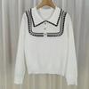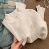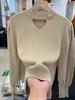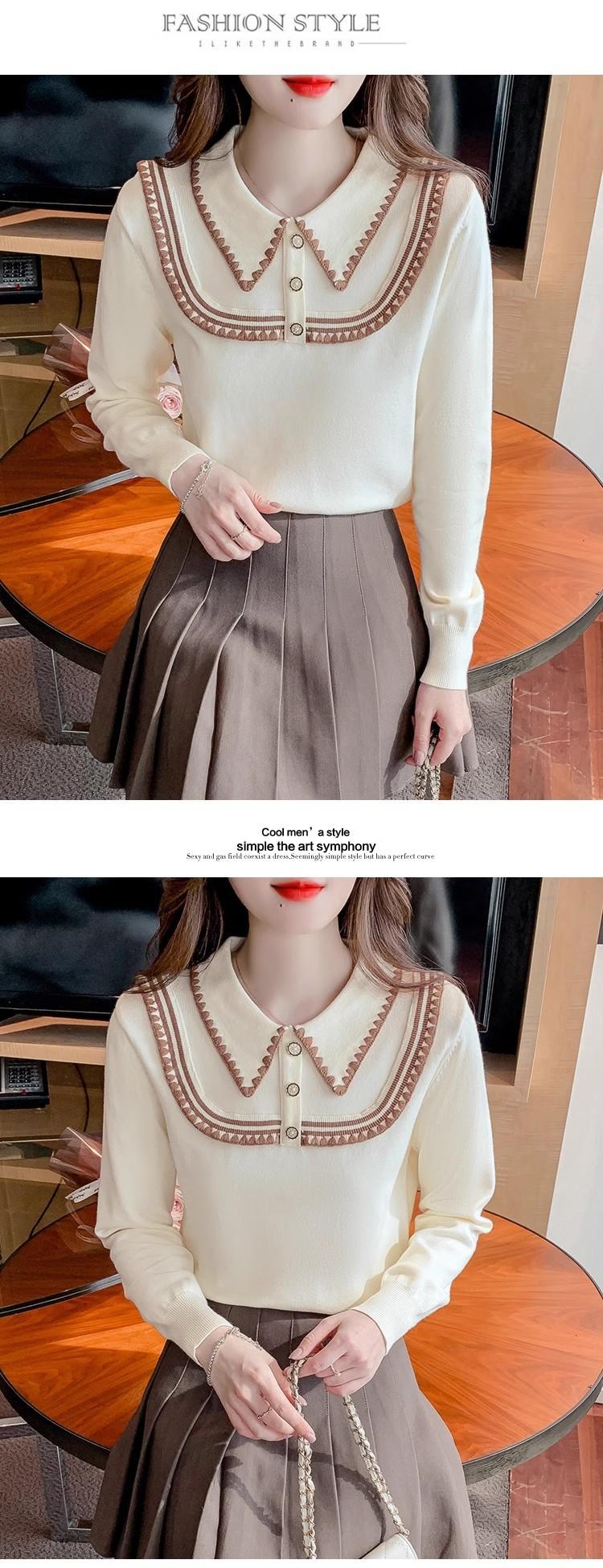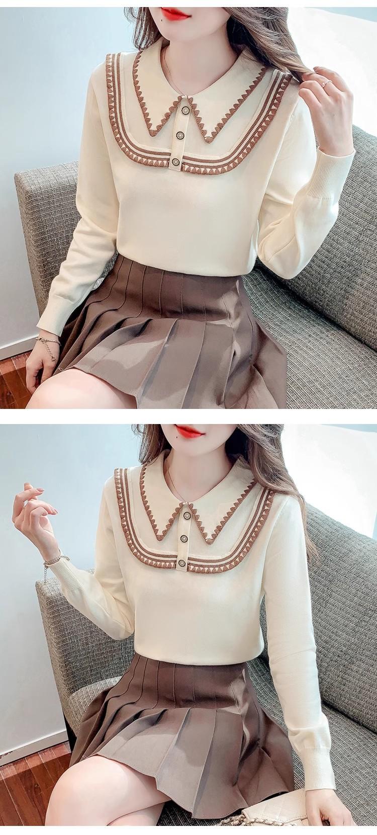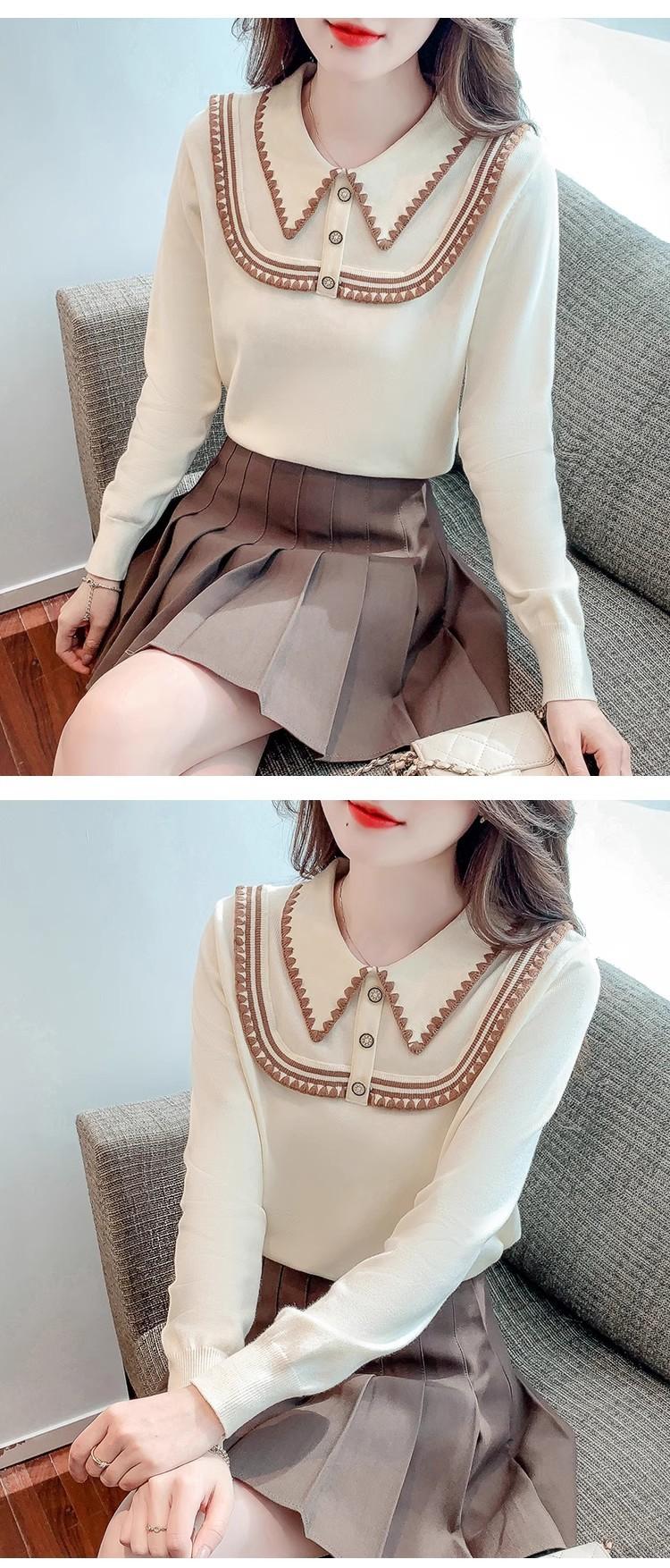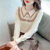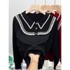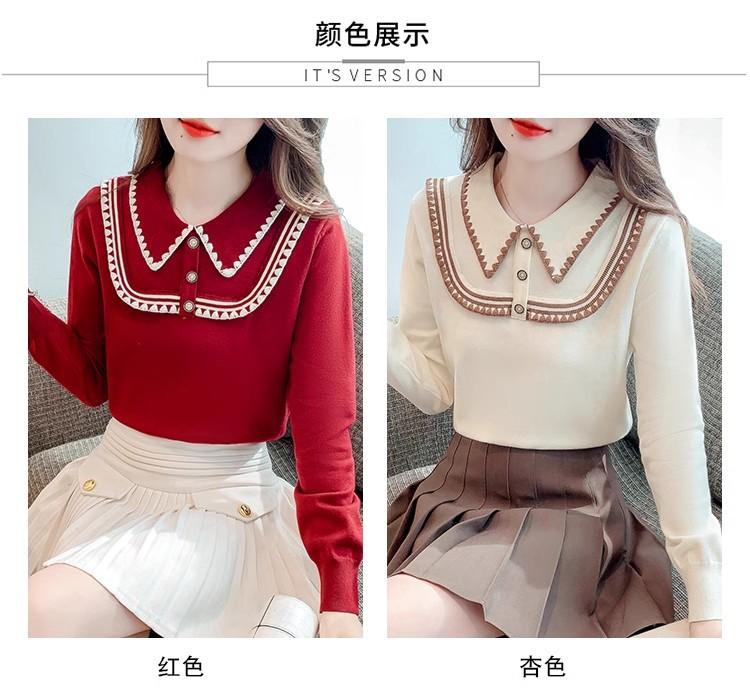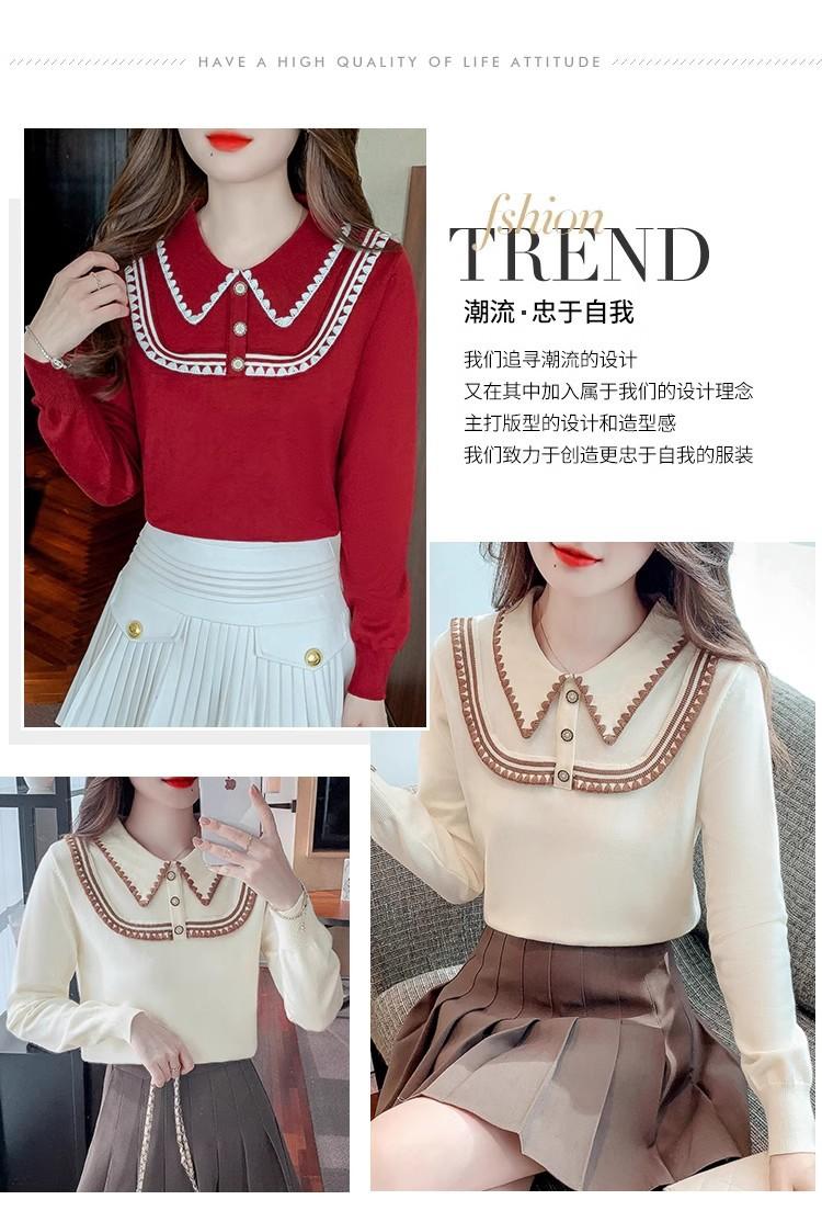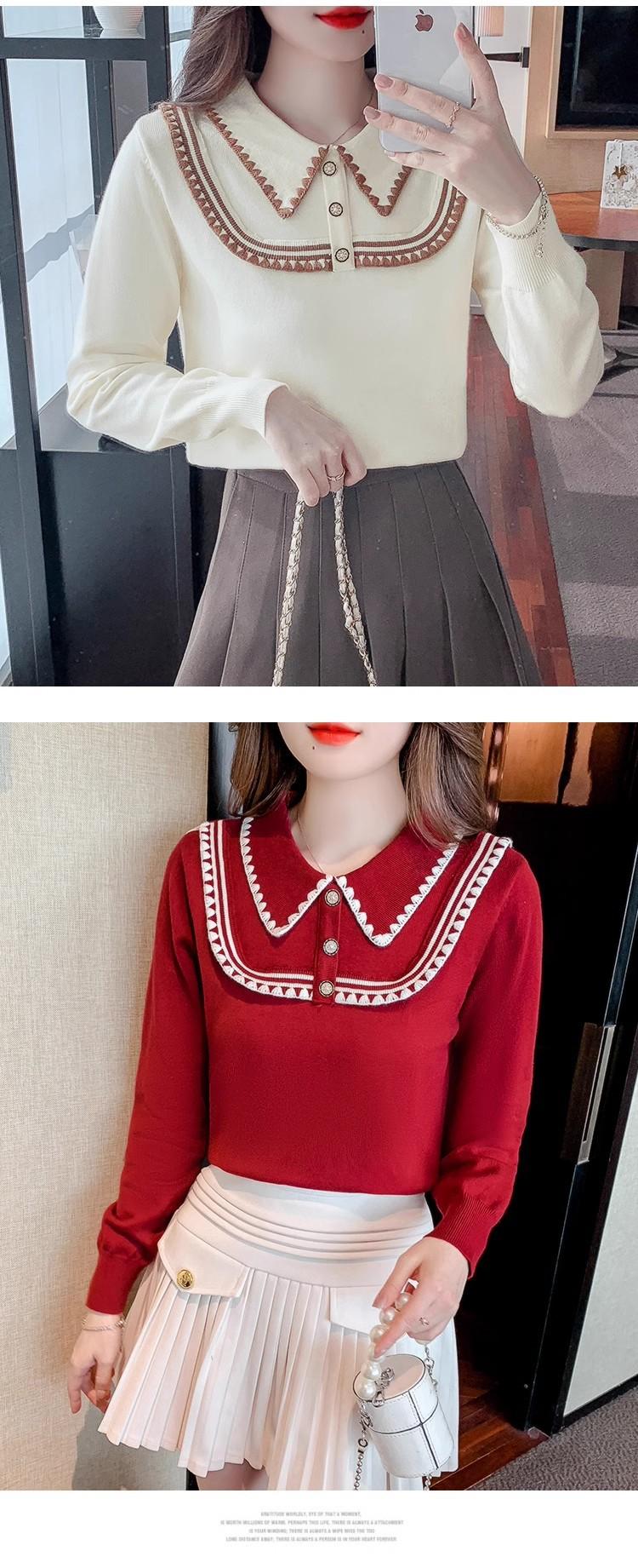 Suéter de punto de alta gama con cuello rojo corto y elegante único para otoño e invierno, camisa de base para mujer.