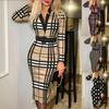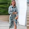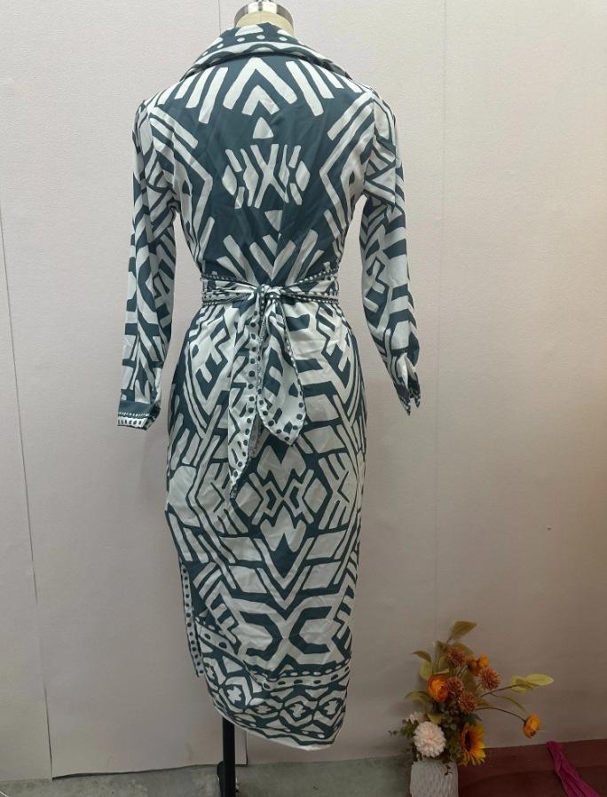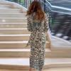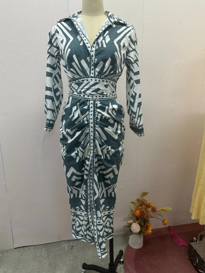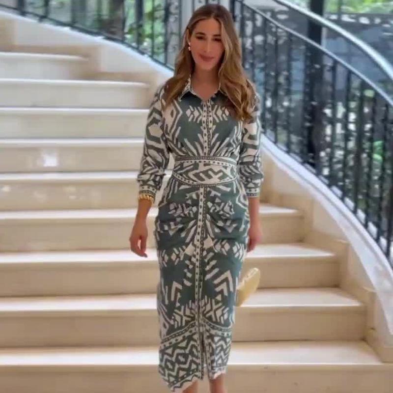 Otoño 2024 Nuevo vestido de cadera de manga larga ajustado con estampado de solapa de moda transfronteriza de Amazon para mujer de Europa y América