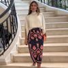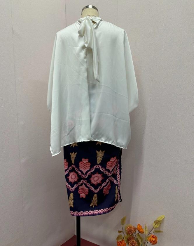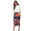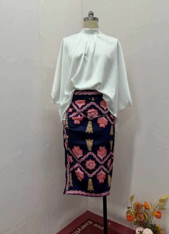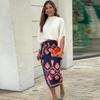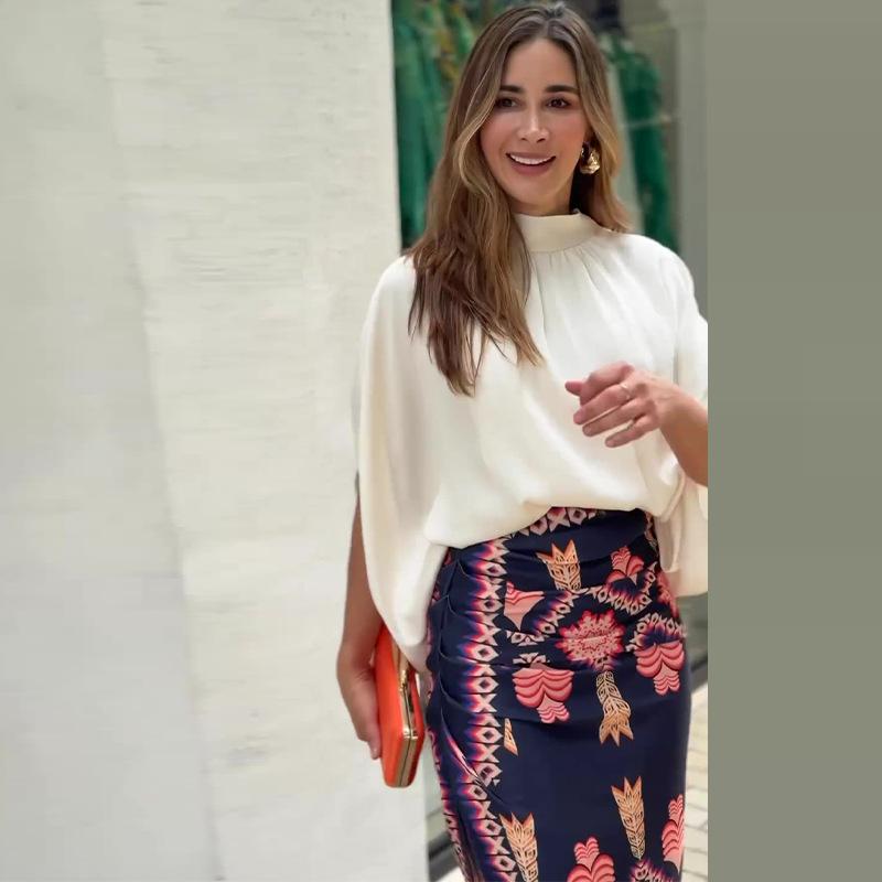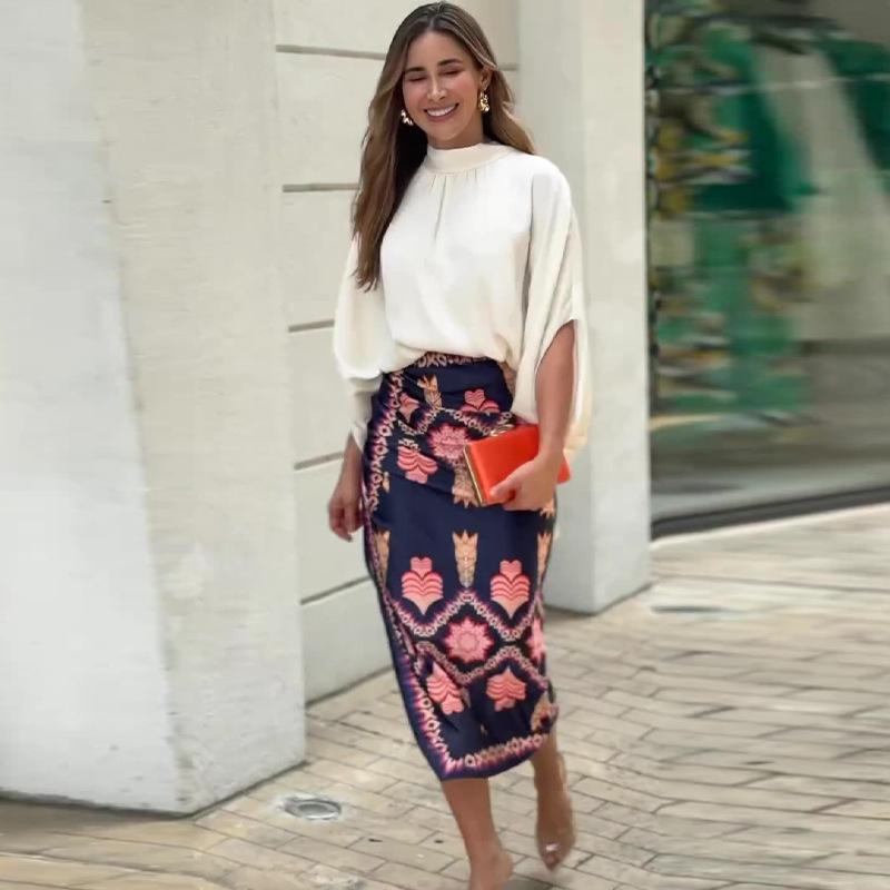 Otoño 2024 Nuevo traje de falda estampada con camisa elegante de cuello redondo de color sólido para mujer de Amazon transfronterizo europeo y americano