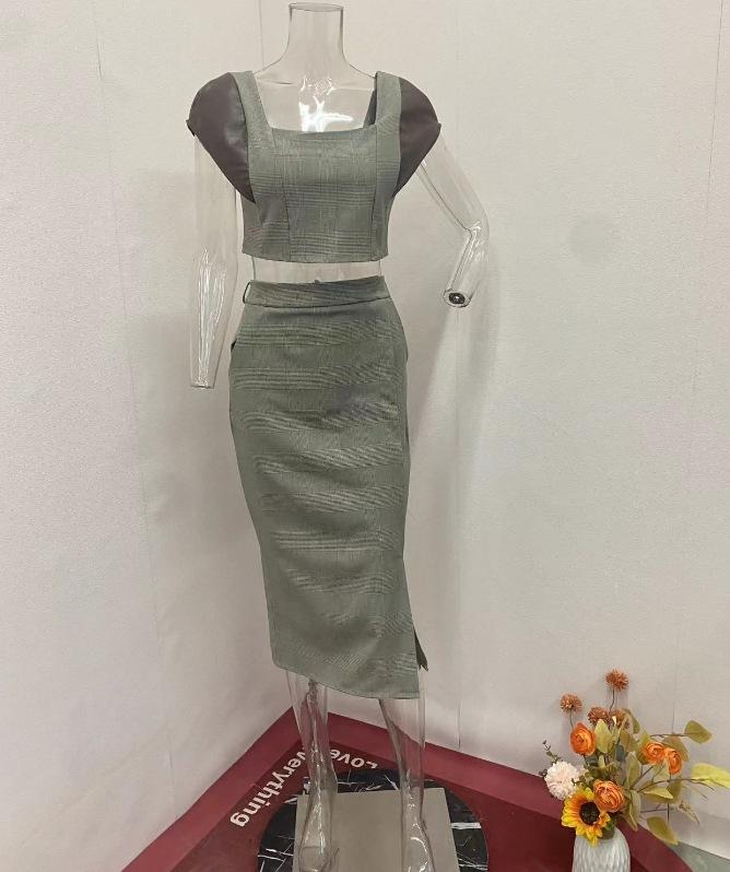 Khaki, Top, Skirt