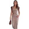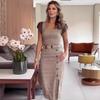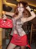 Conjunto de falda sexy de media cadera con costuras de cuero en color de contraste, moda transfronteriza de Amazon europea y americana, novedad de verano de 2024