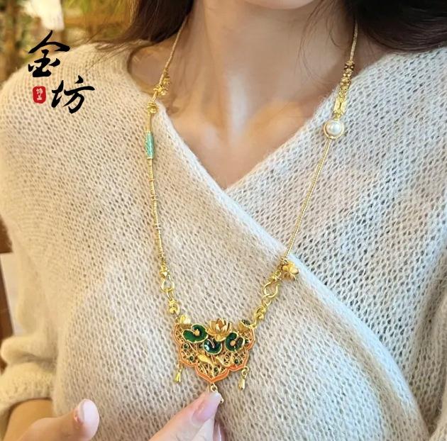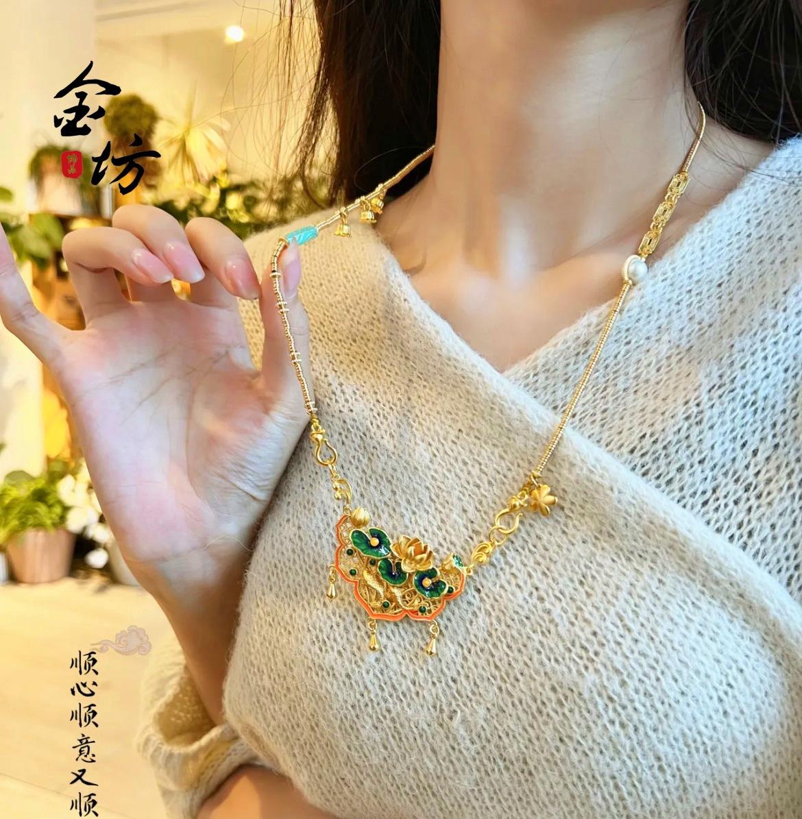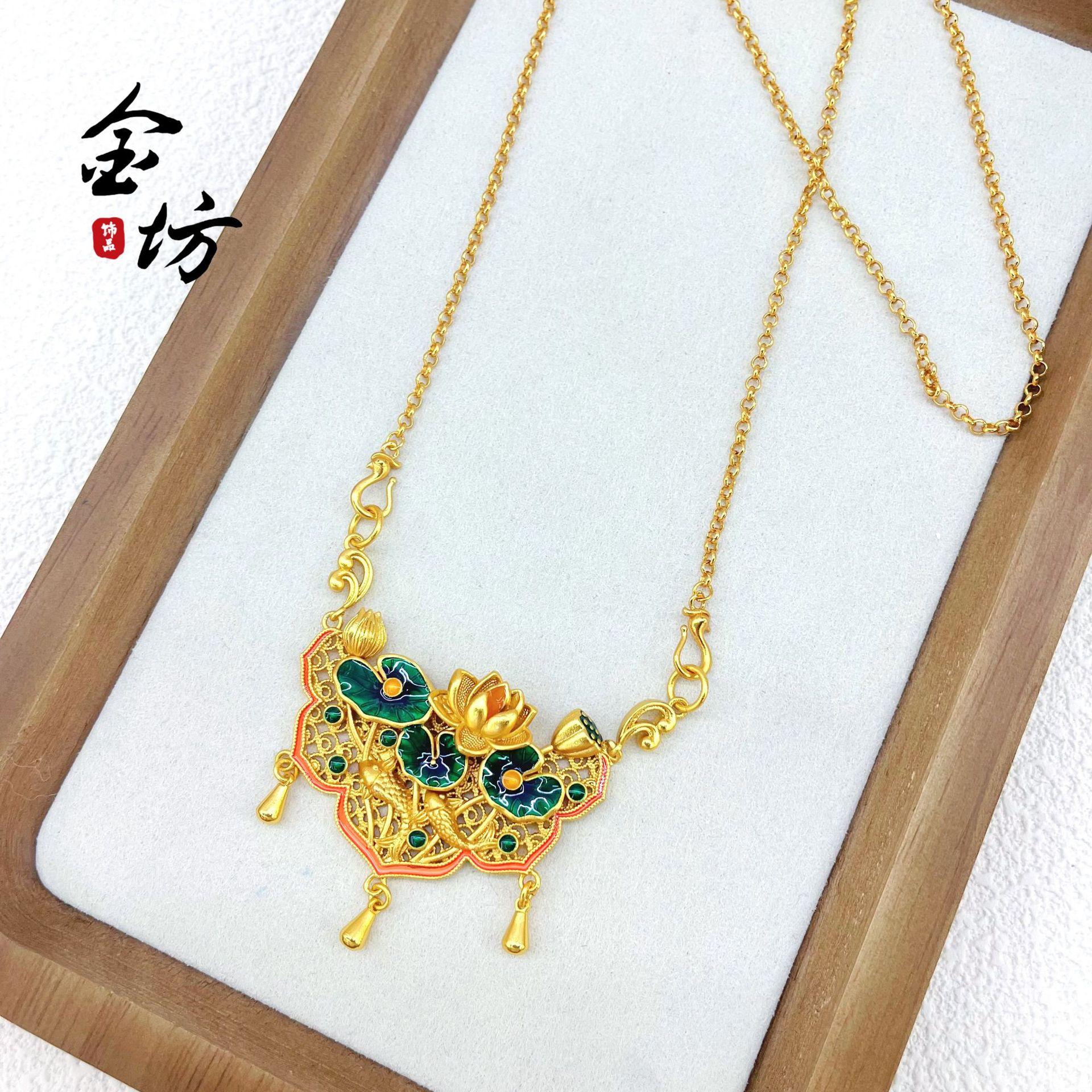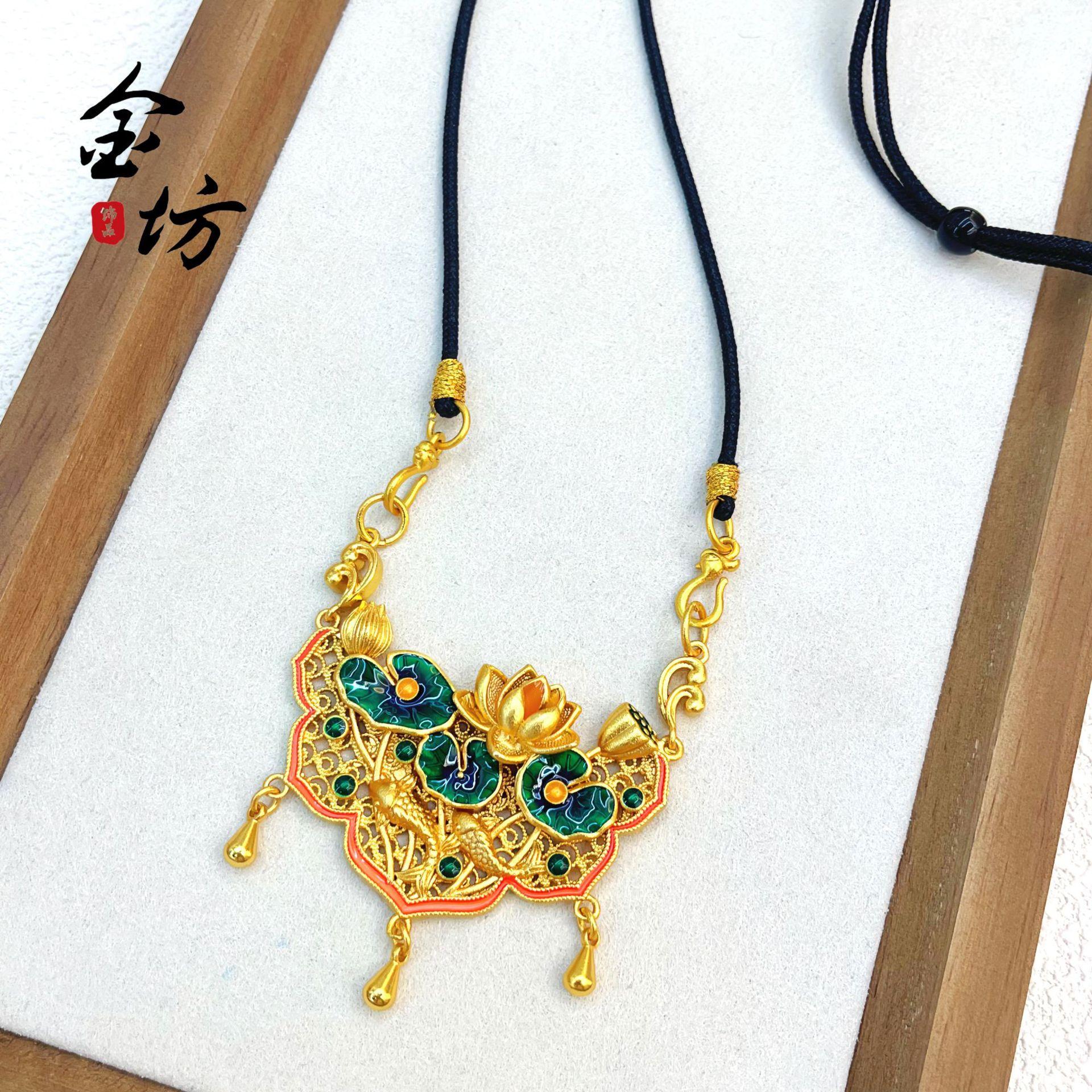 Colgante de loto de dos generaciones con cierre de oro arena 999 koi de larga duración, joyería de marea nacional DIY, cadena de suéter, collar de mujer