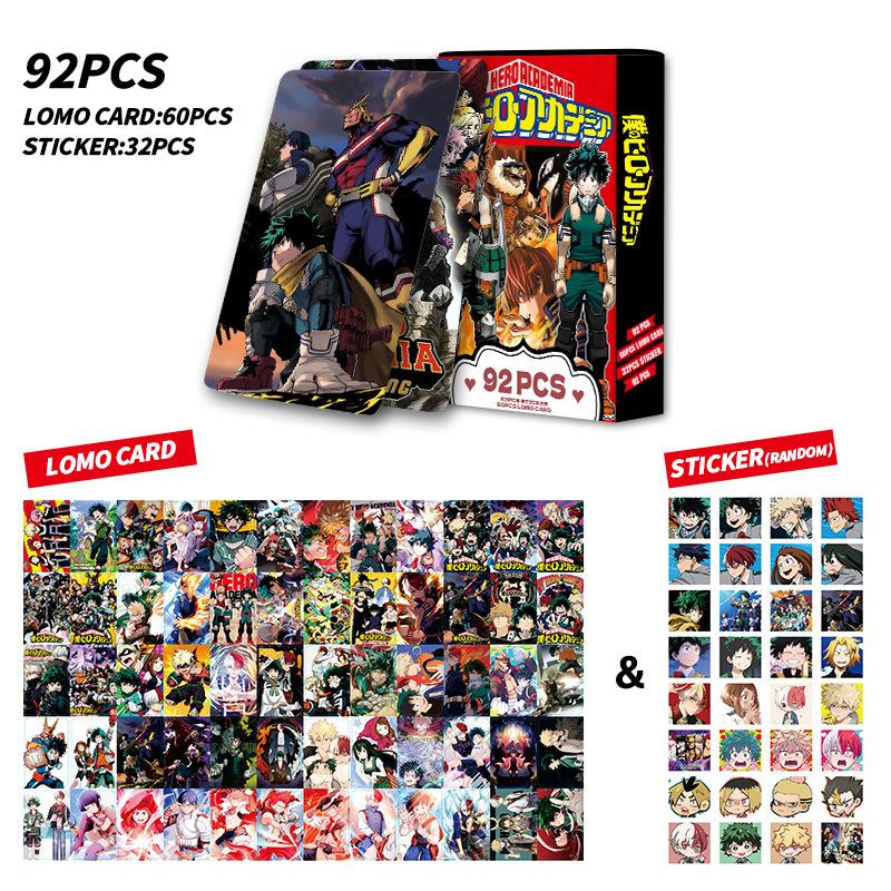 92 tarjetas fotográficas con impresión a color HD, My Hero College, tarjetas LOMO de doble cara, colección de tarjetas, pegatinas, marcapáginas
