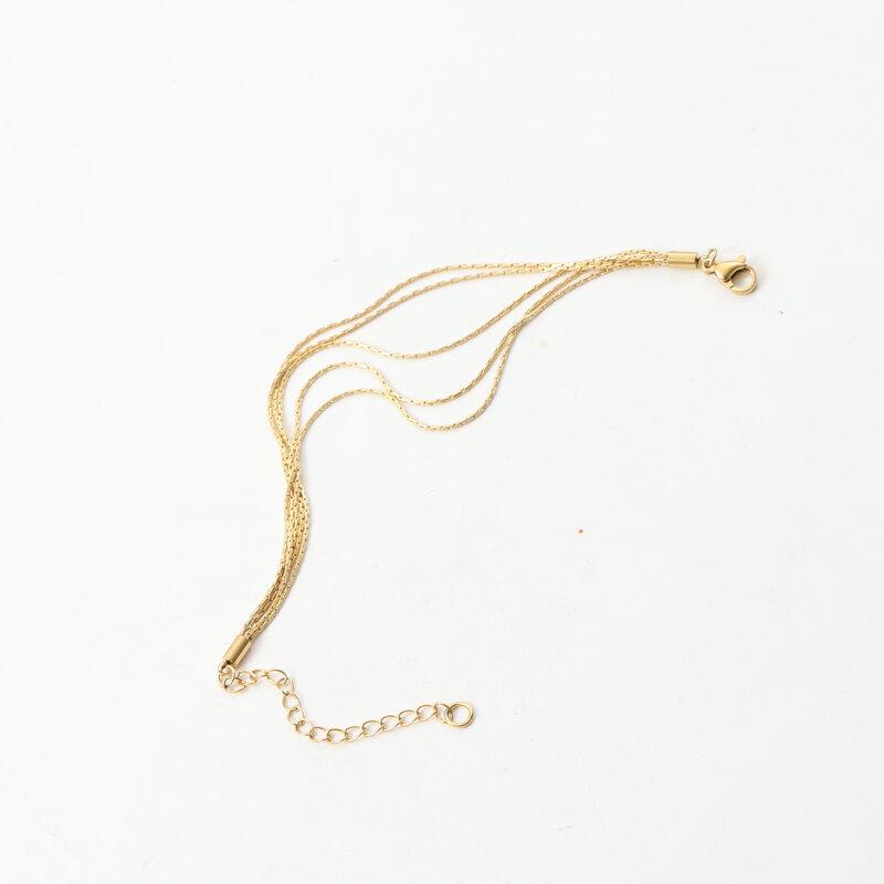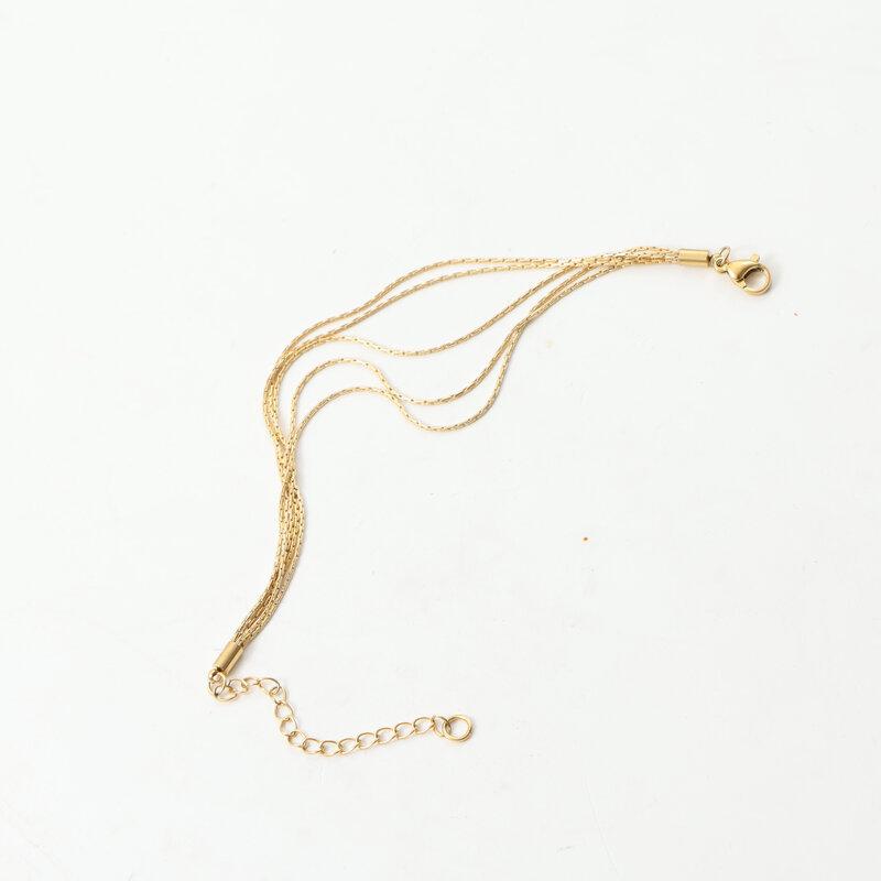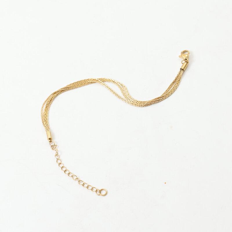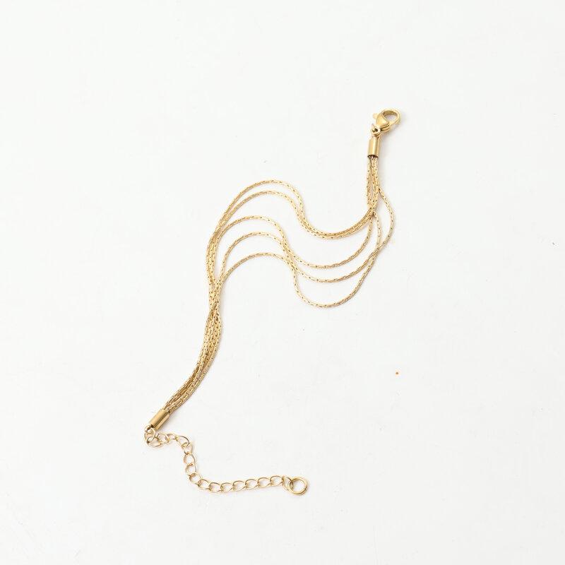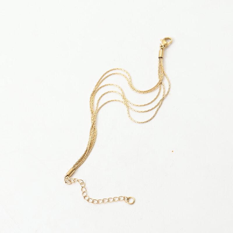 Pulsera multicapa de cadena fina de acero de titanio chapado en oro de 18k