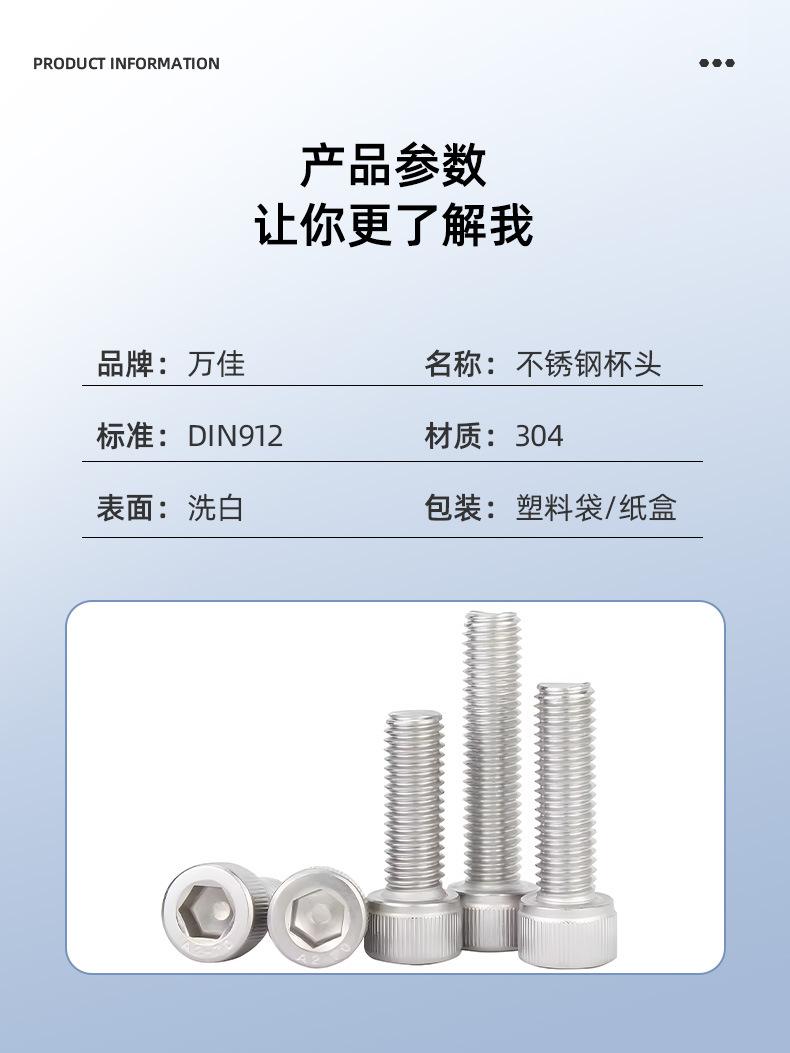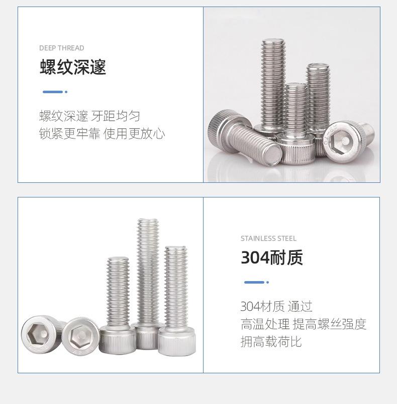 Tornillo de cabeza hexagonal de acero inoxidable 304 con cabeza de copa y longitud de perno M1.4M1.6M2M3M4M5