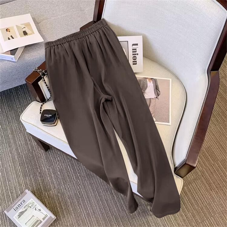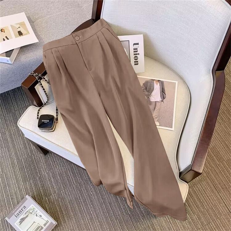 Traje de Mujer Pantalones de Pierna Ancha, Primavera y Otoño 2025 Nuevo Tiro Alto Drapeado Pierna Recta de Gama Alta Adelgazantes Pantalones Caqui