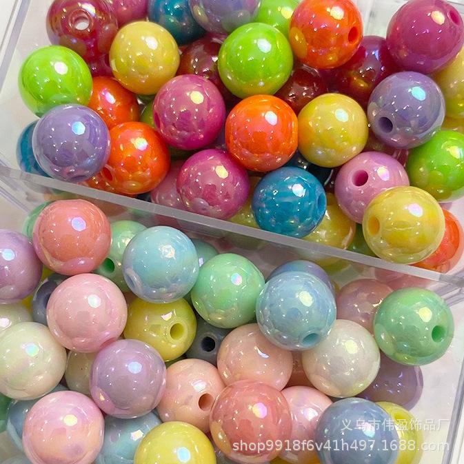 Cuentas acrílicas chapadas en color AB, cuentas redondas de color, accesorios hechos a mano para bricolaje, pulsera de cuentas, cuentas sueltas, accesorios de color