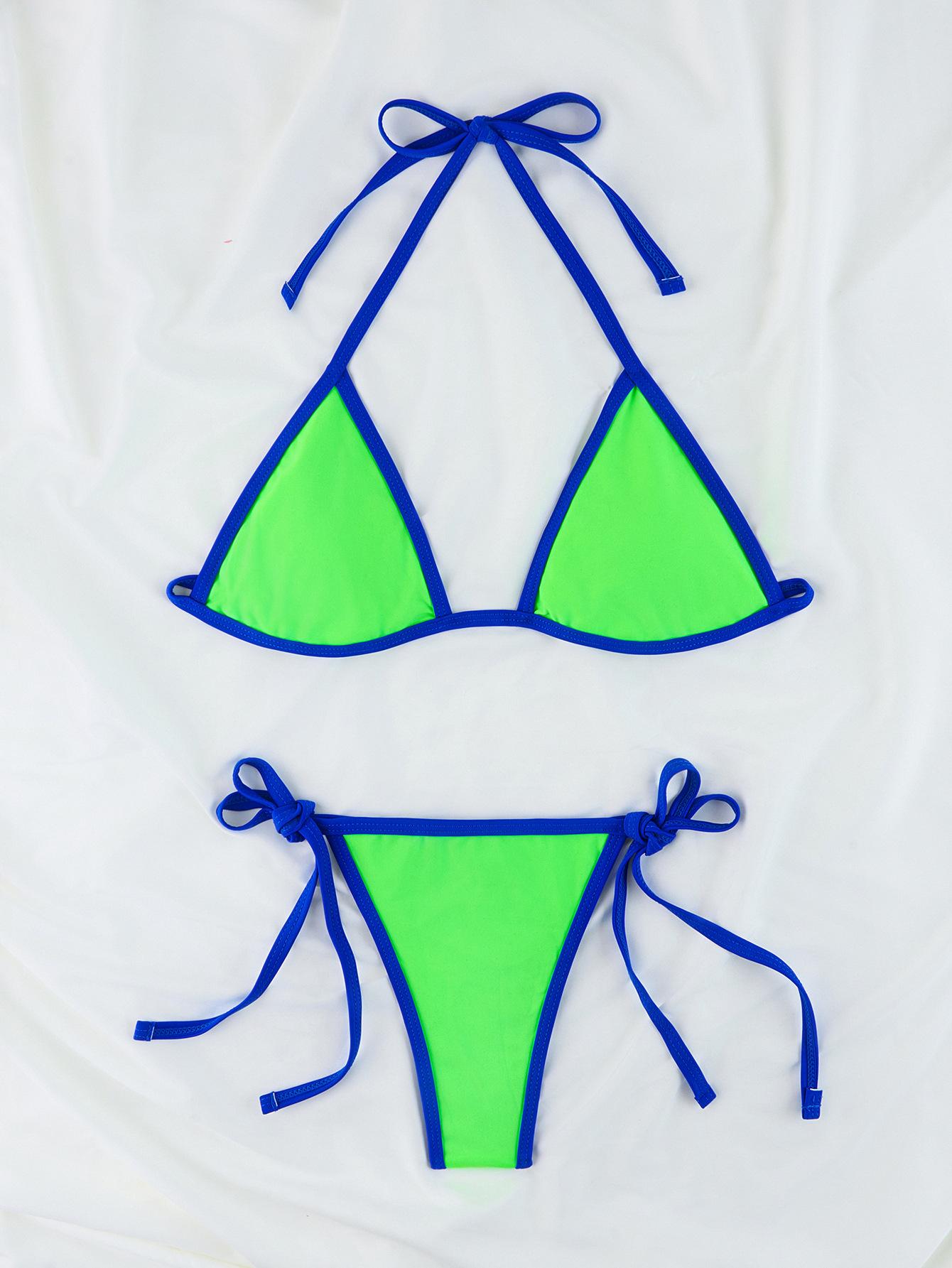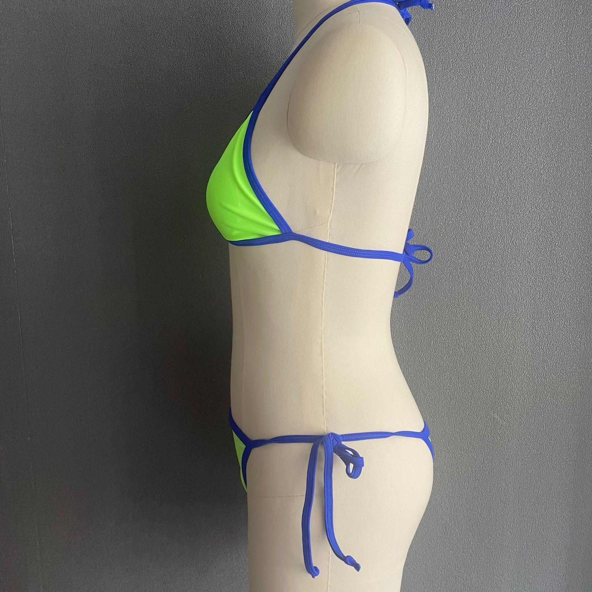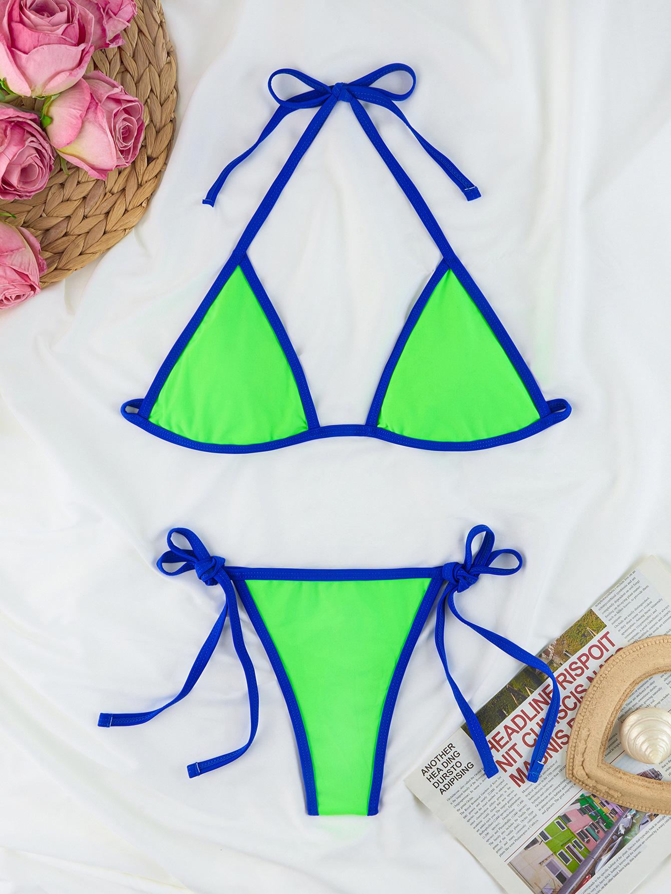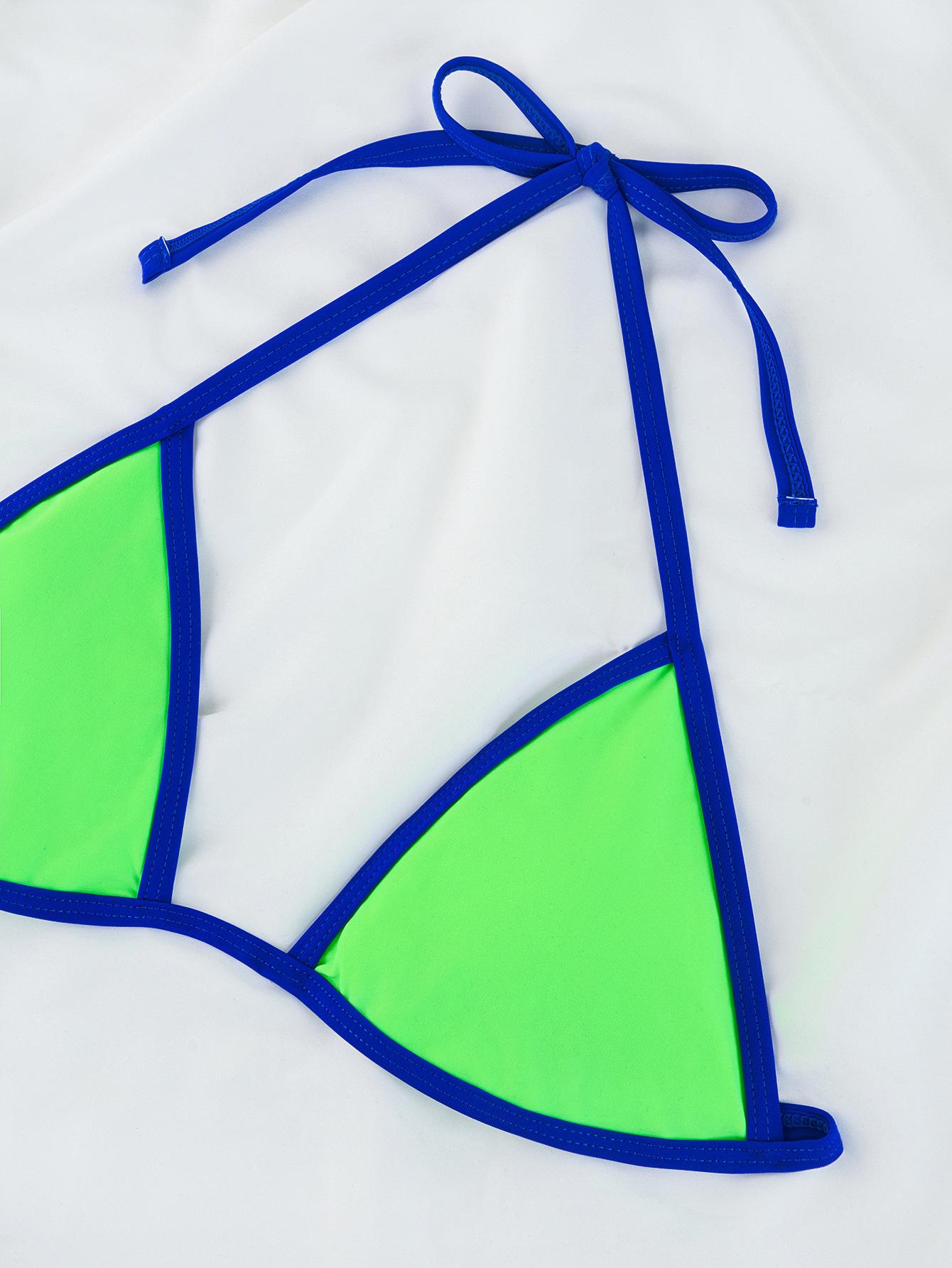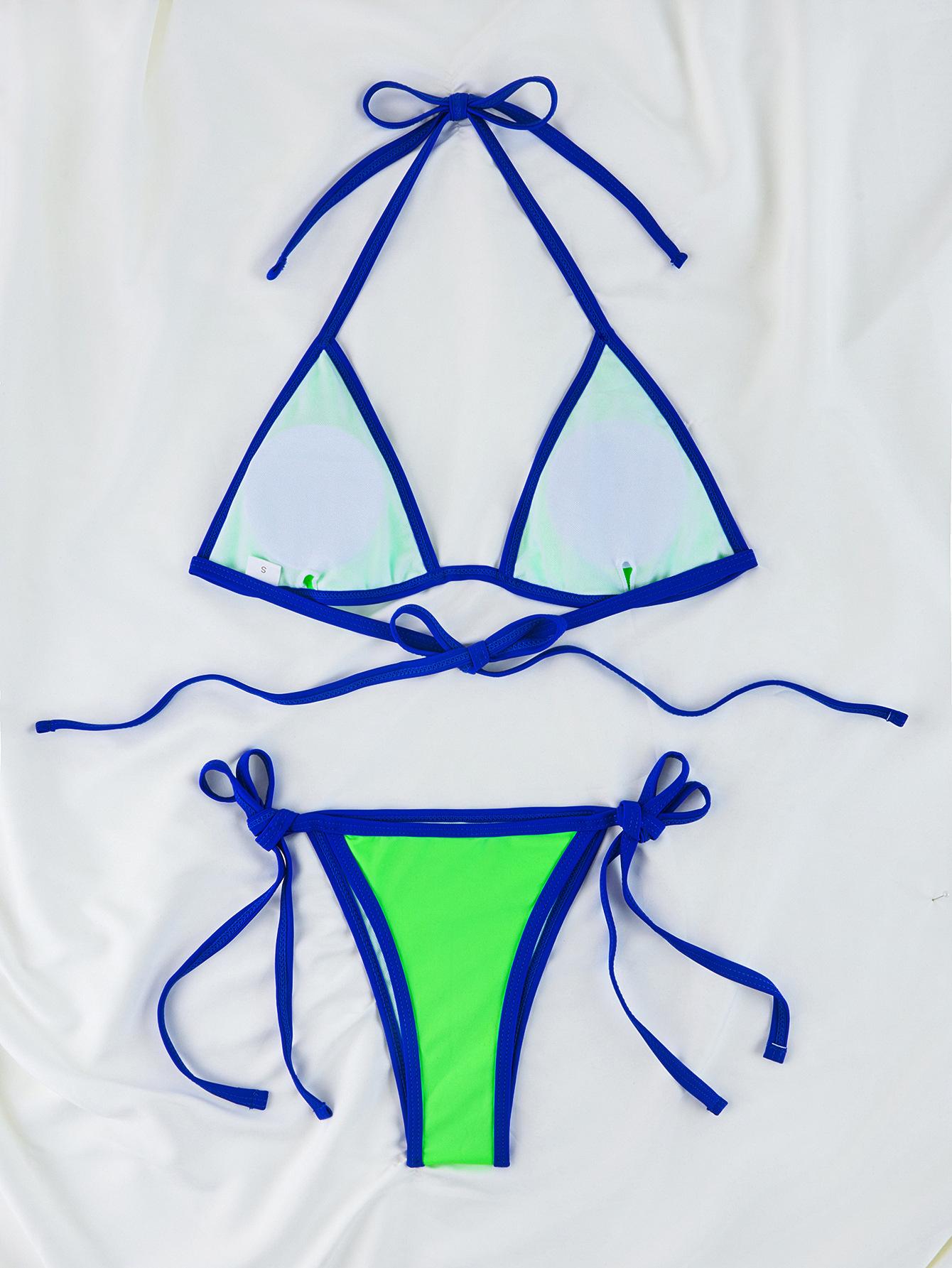 Compra Bikini triangular suave con combinación de colores transfronterizos de Amazon, novedad de 2024, traje de baño sexy europeo y americano para mujer, disponible en stock qy2415 al por mayor en Joom.pro