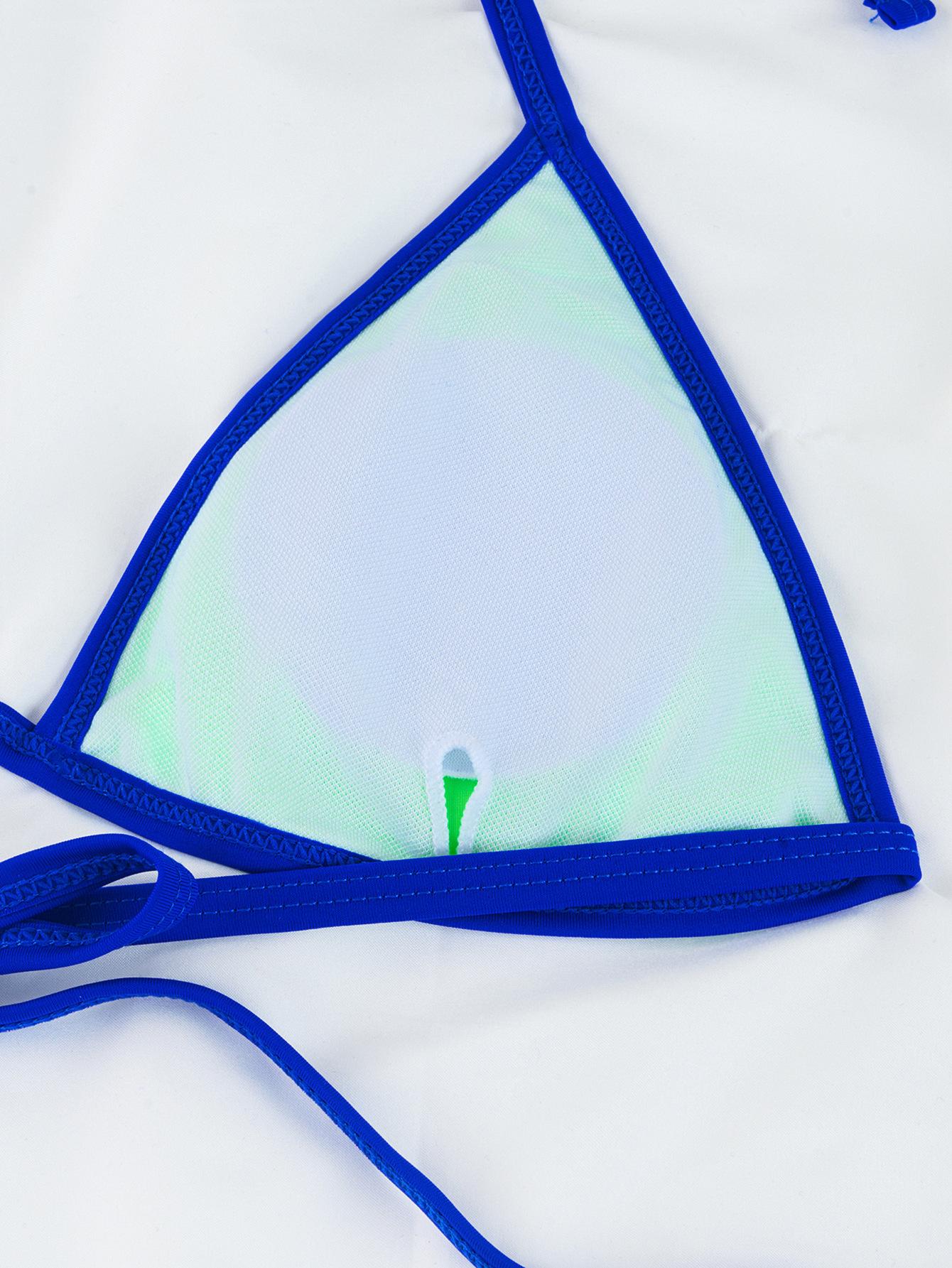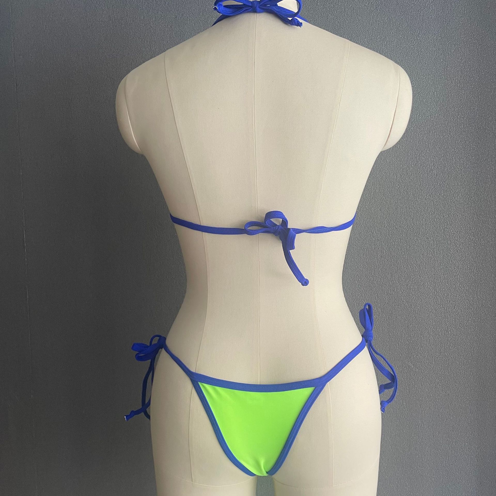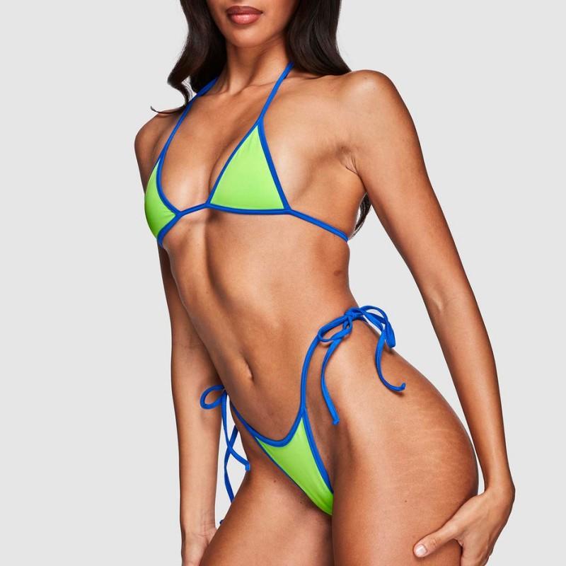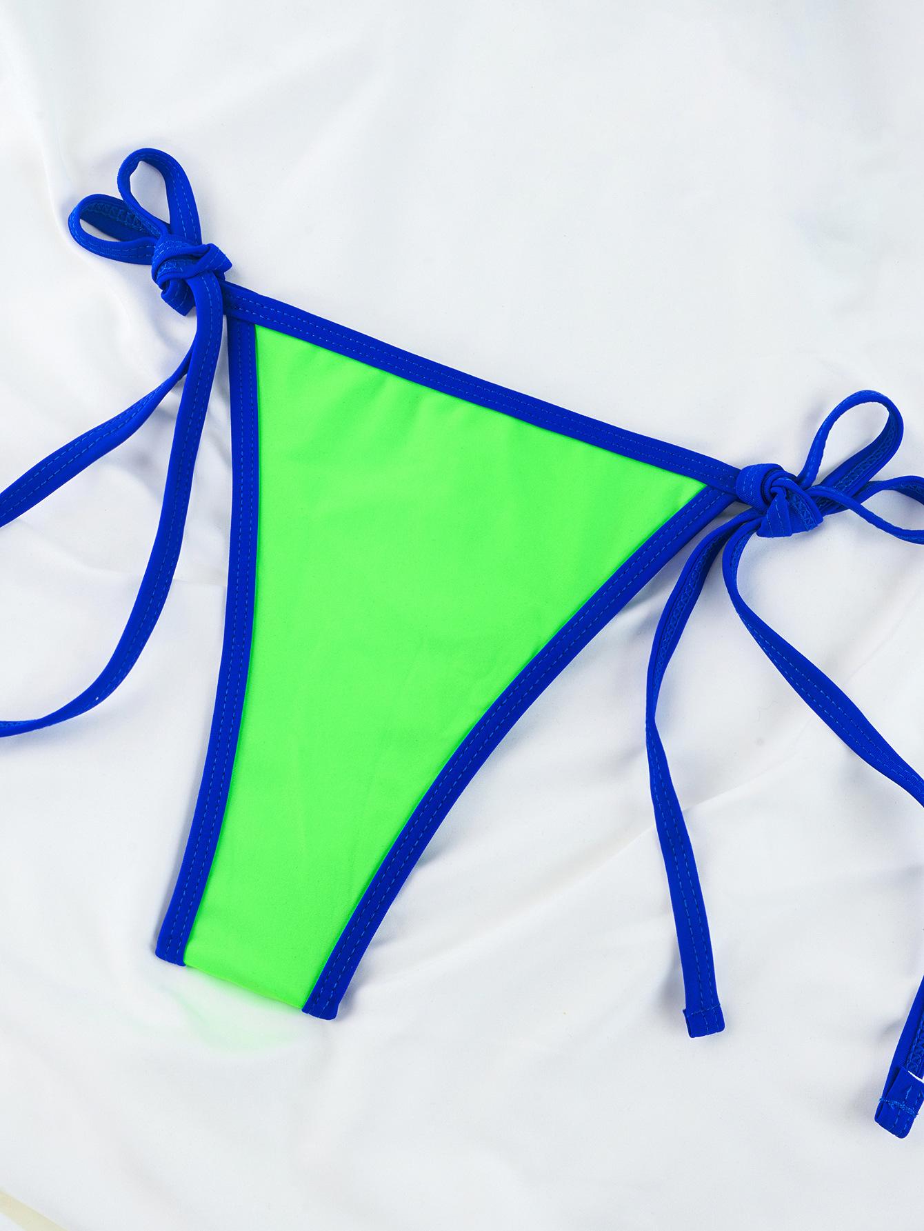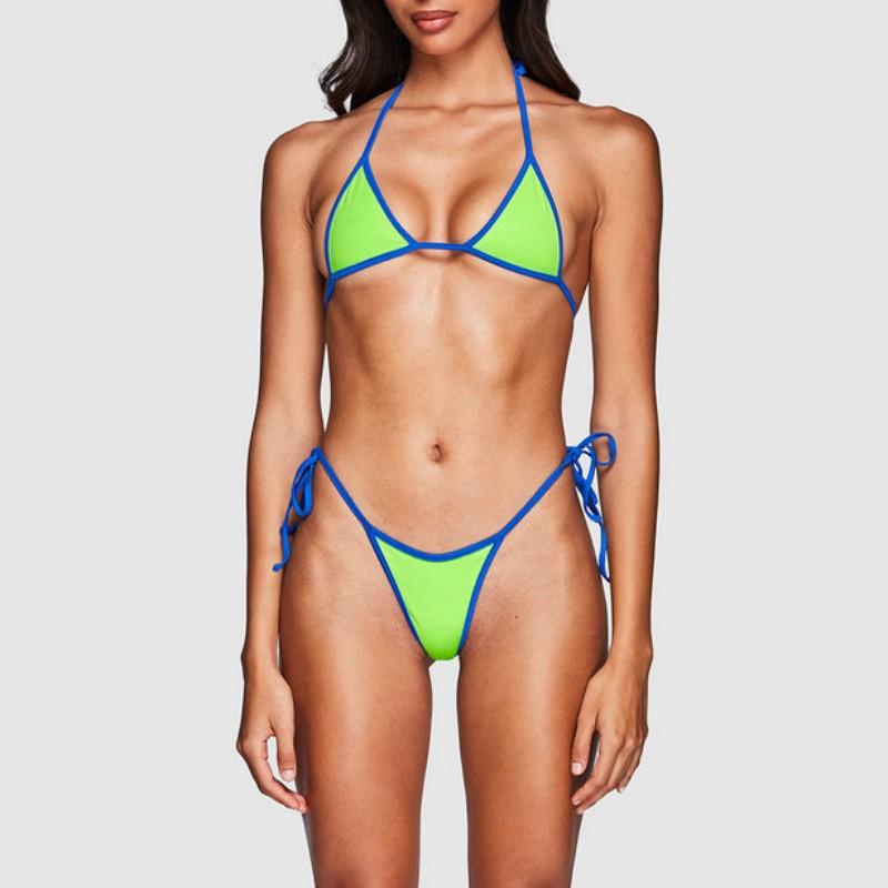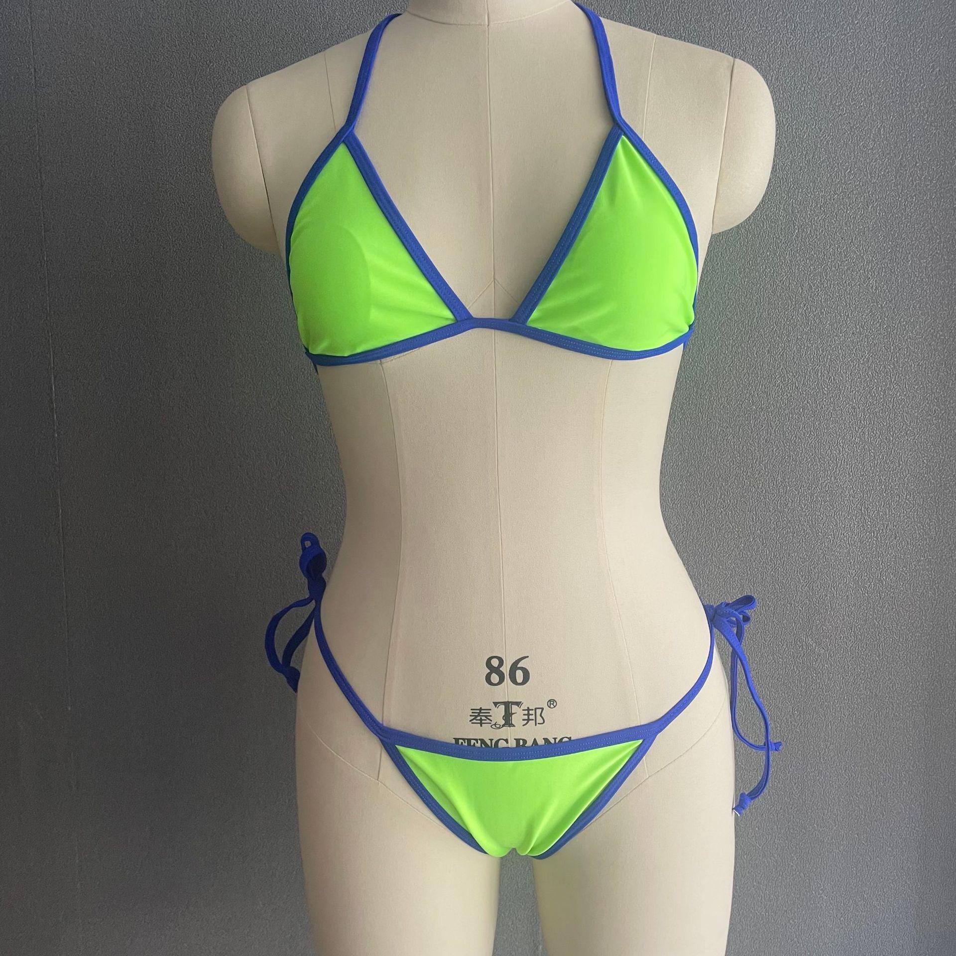 Compra Bikini triangular suave con combinación de colores transfronterizos de Amazon, novedad de 2024, traje de baño sexy europeo y americano para mujer, disponible en stock qy2415 al por mayor en Joom.pro