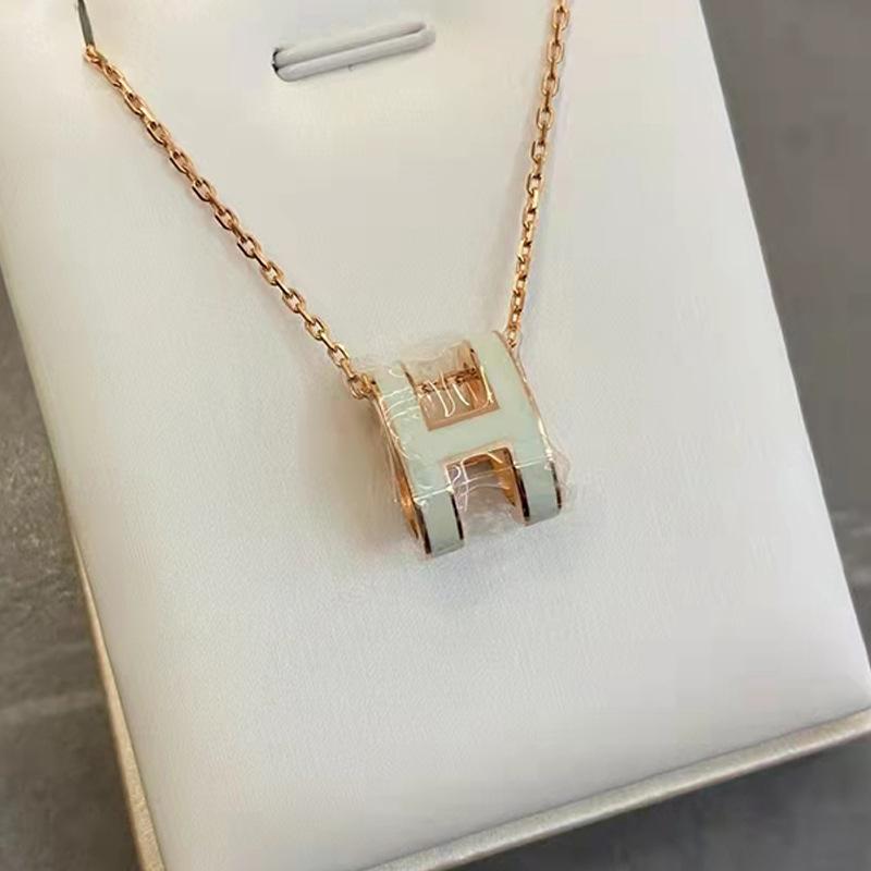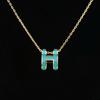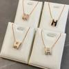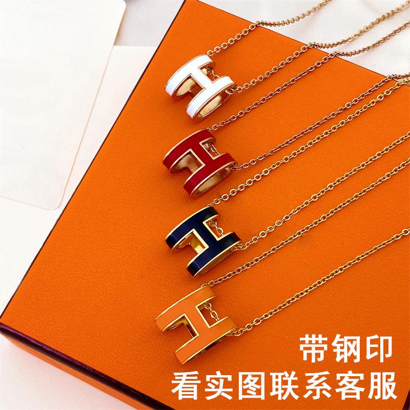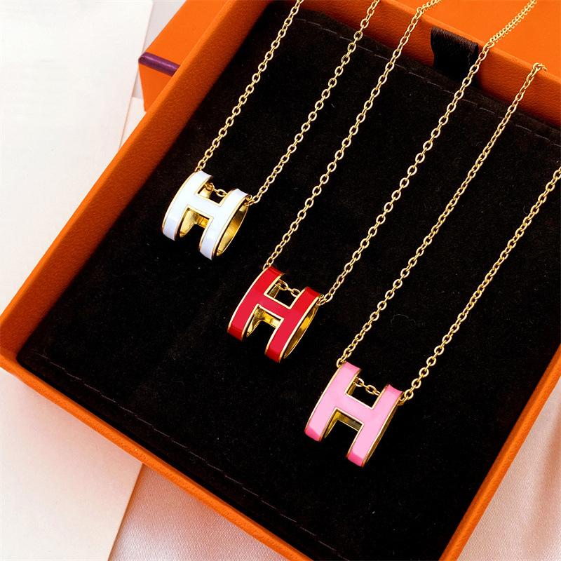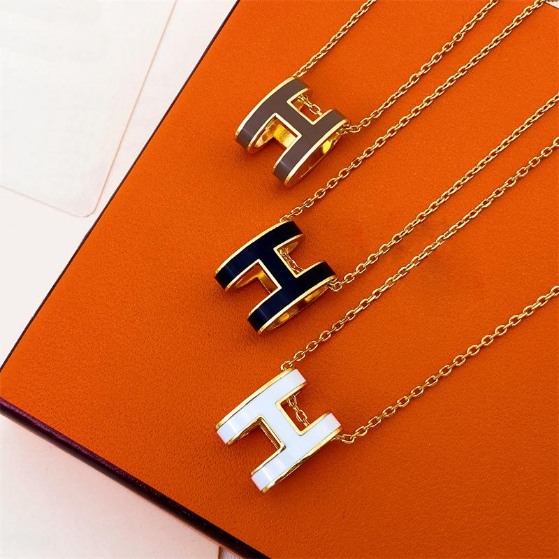 Collar con Letra H Estampada Colgante Artesanal CNC Acero de Titanio Joyería Inmarcesible Esmalte para Mujer Cadena Clavicular 18K Chapado en Oro