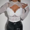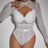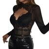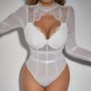 Mono de manga larga sexy con perspectiva hueca de anillo de acero de malla con costura de encaje de estilo europeo y americano de comercio exterior A1264
