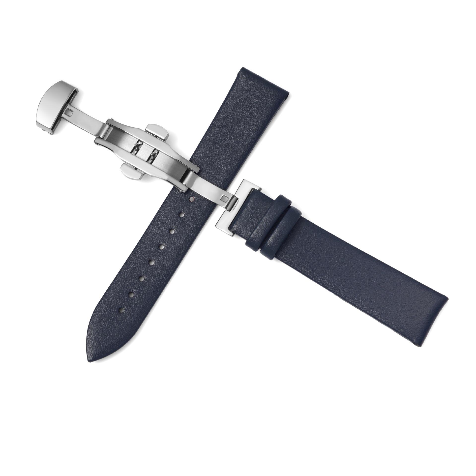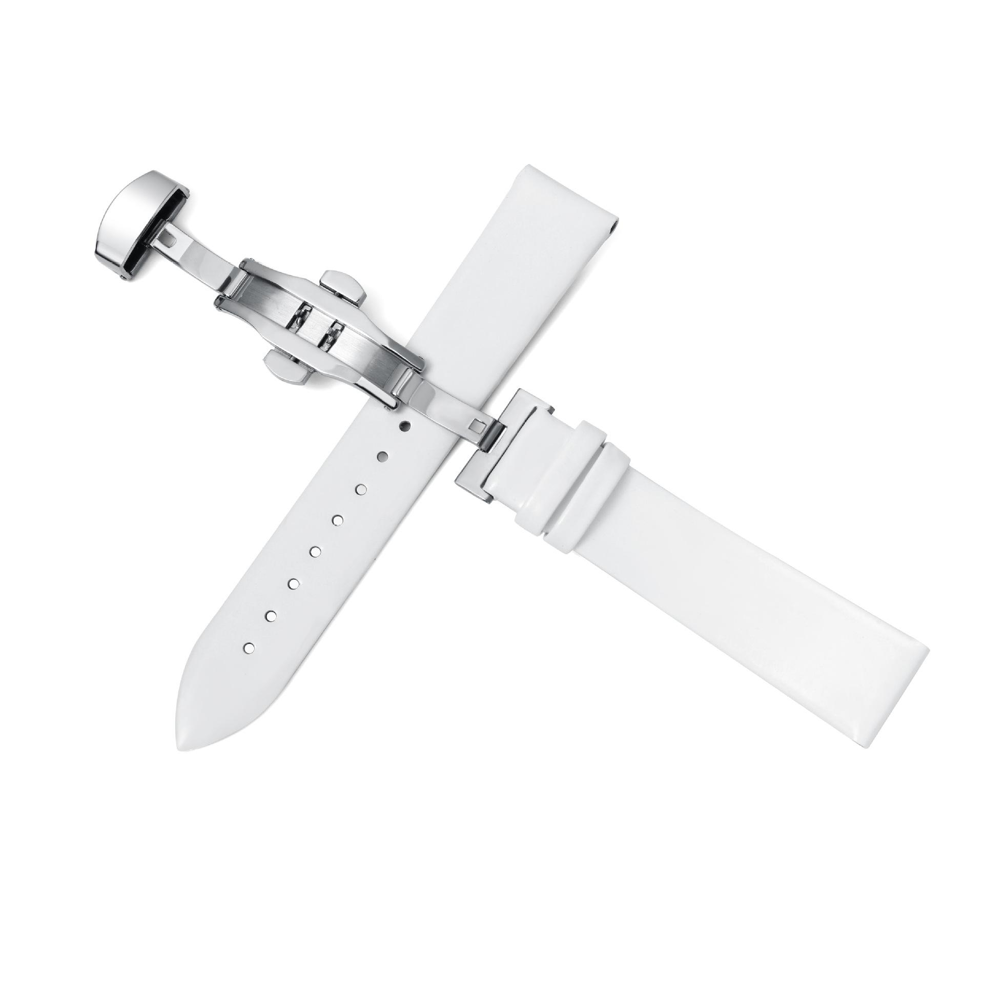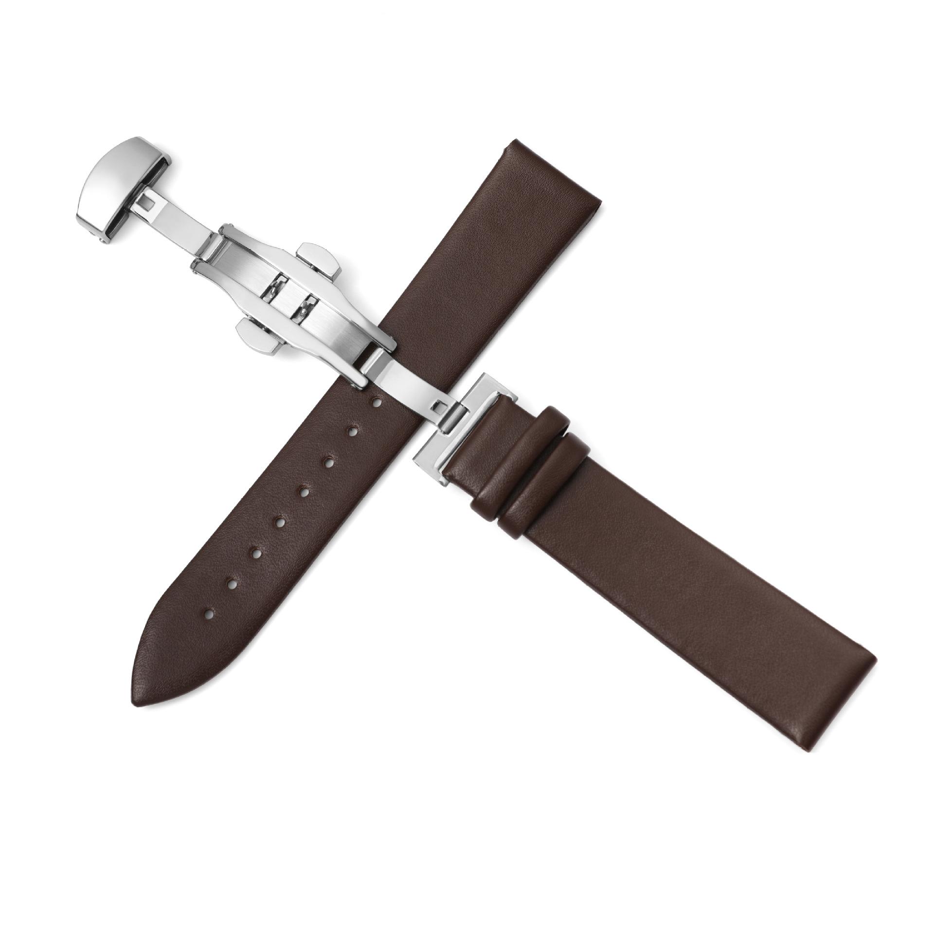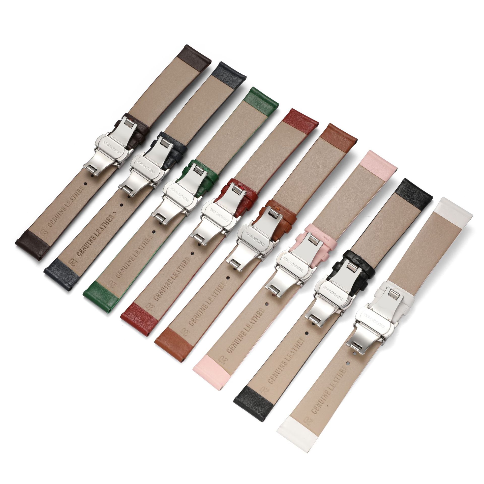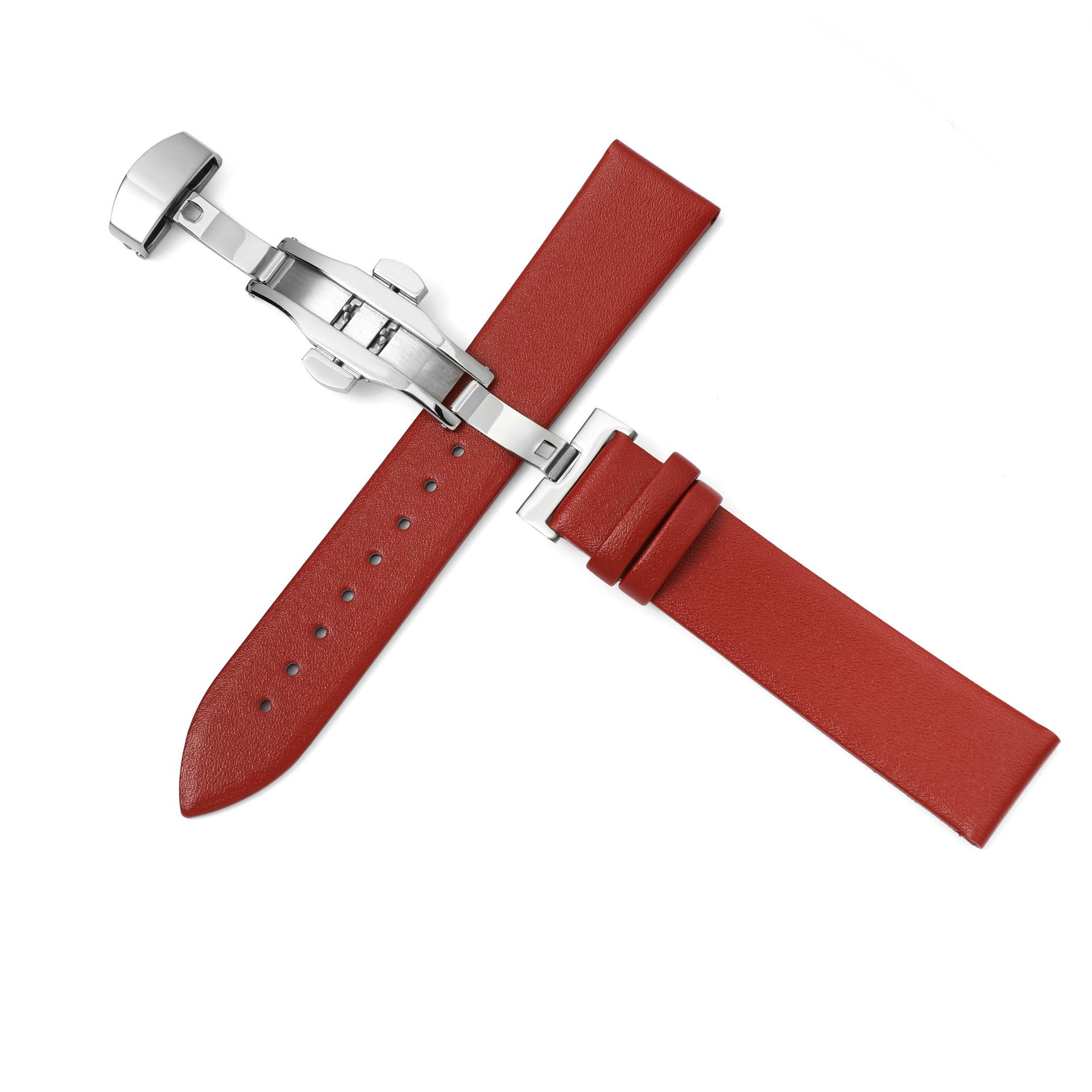 Correa de reloj de cuero liso con puntada ultrafina al por mayor para hombres y mujeres, pulsera de piel de vaca suave con hebilla de mariposa