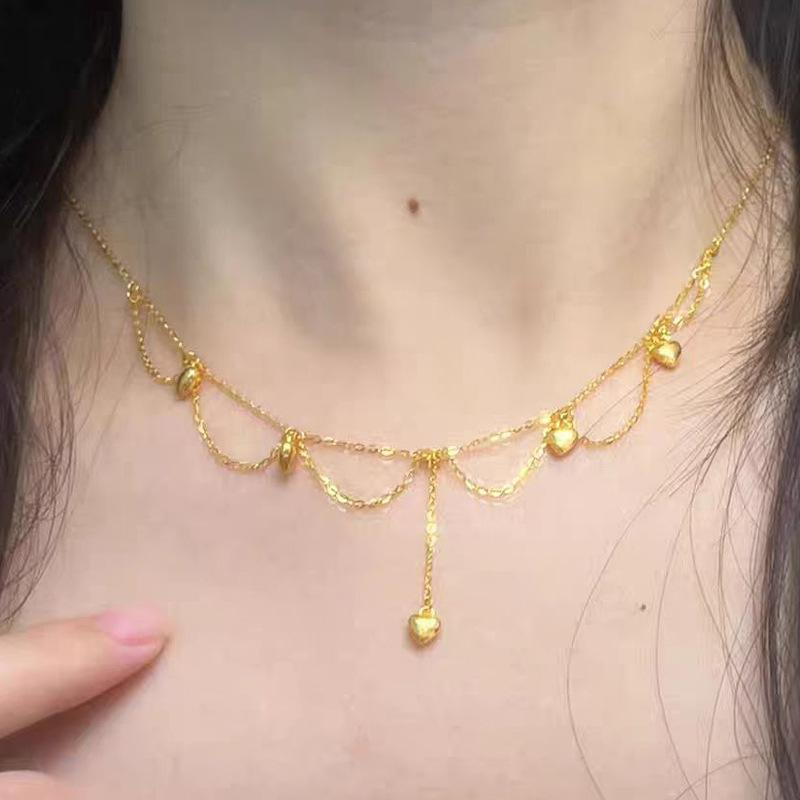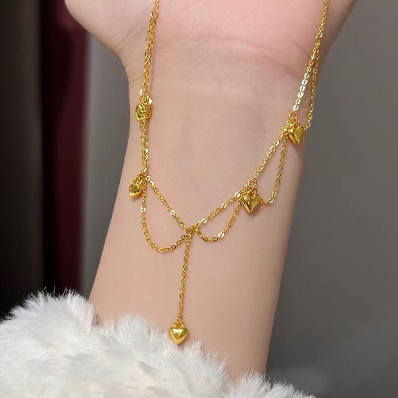 Nuevo Collar de Amor de Doble Capa de Oro Arena de Vietnam para Mujer Nicho Lujo Ligero Alta Gama Cadena de Borlas Elegante Versátil
