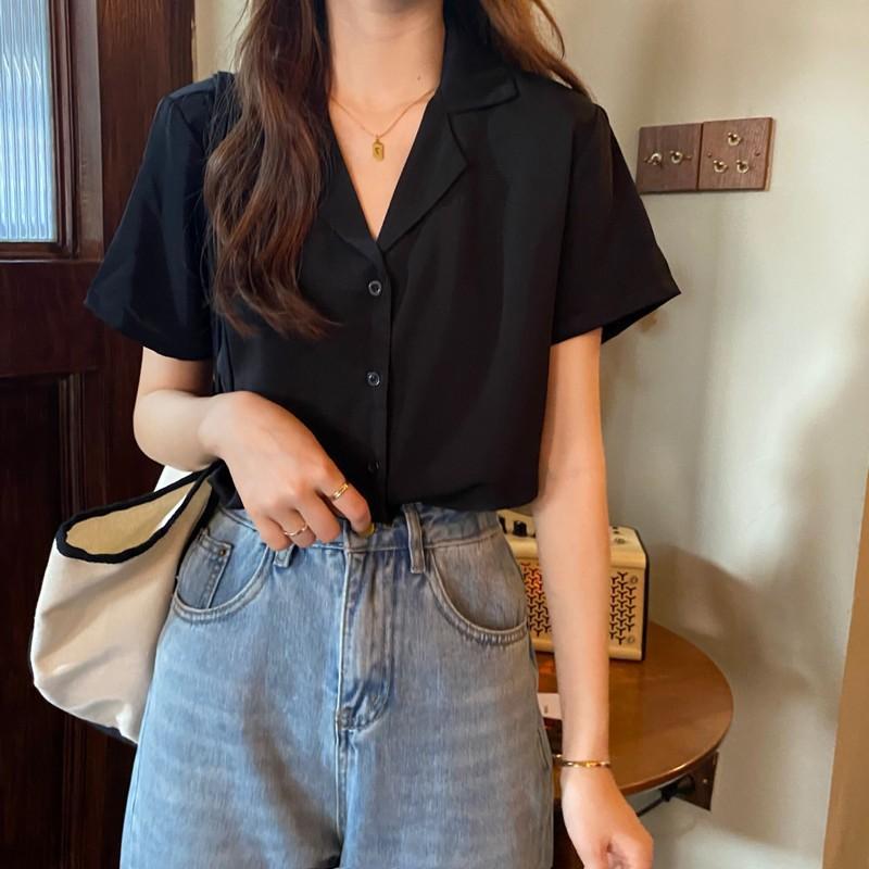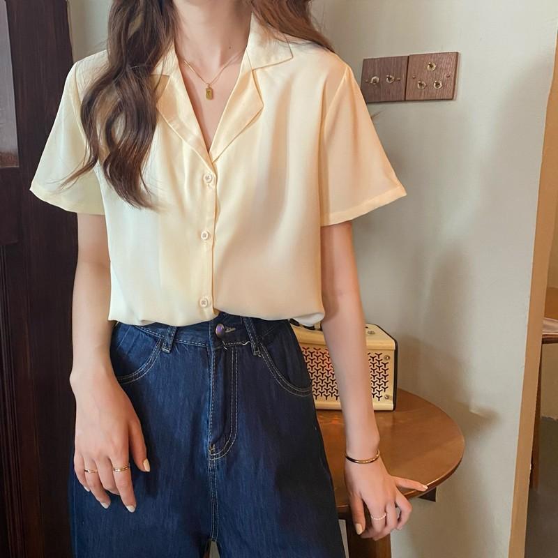 Camisa Blanca de Solapa Temperamento Diseño Nicho Top Verano 2025 Nueva Camisa de Manga Corta Versátil para Mujer Tendencia