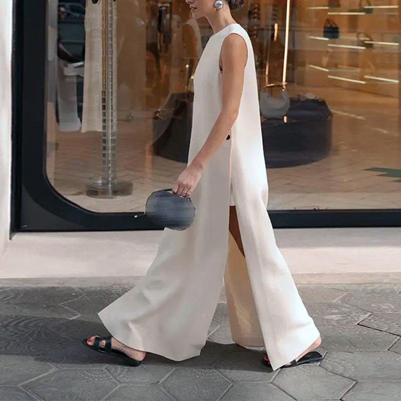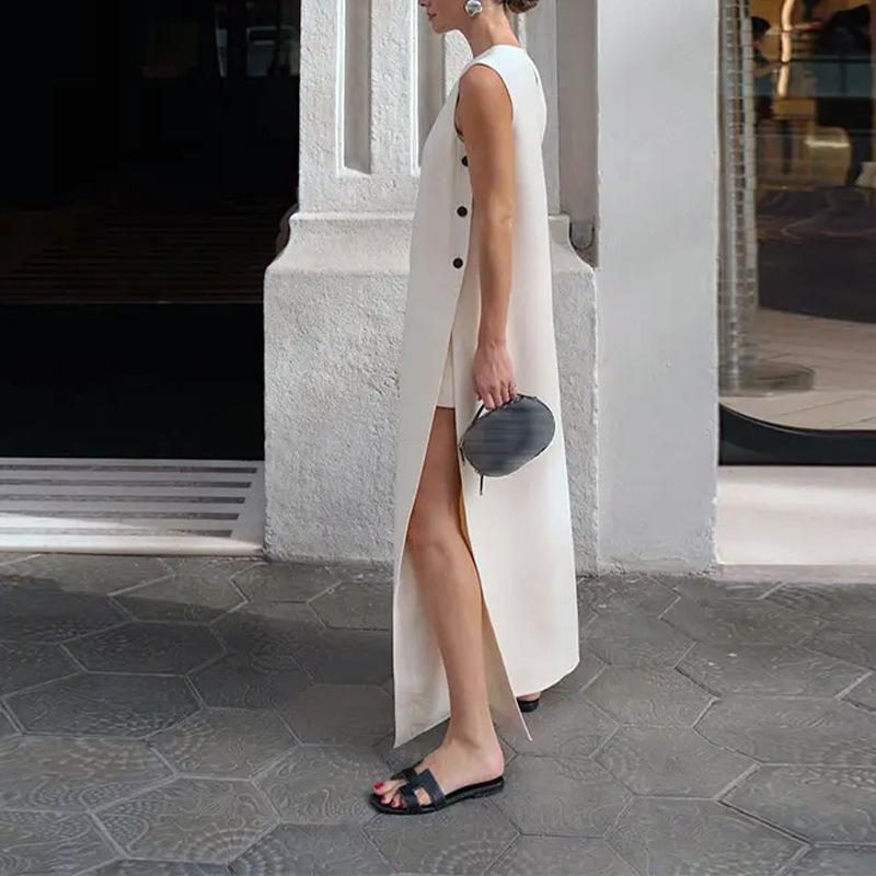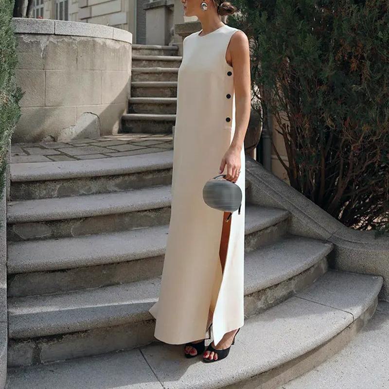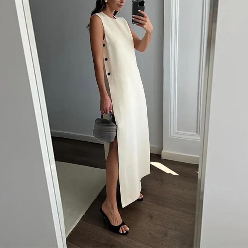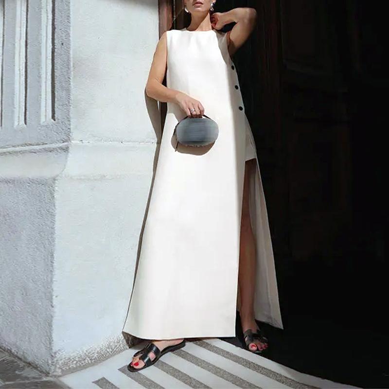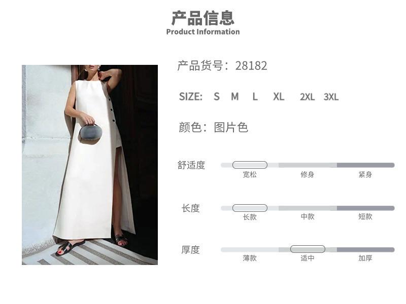 Vestido holgado informal de cuello redondo con aberturas y botones sin mangas para mujer europea y americana de comercio exterior transfronterizo de Amazon 2024