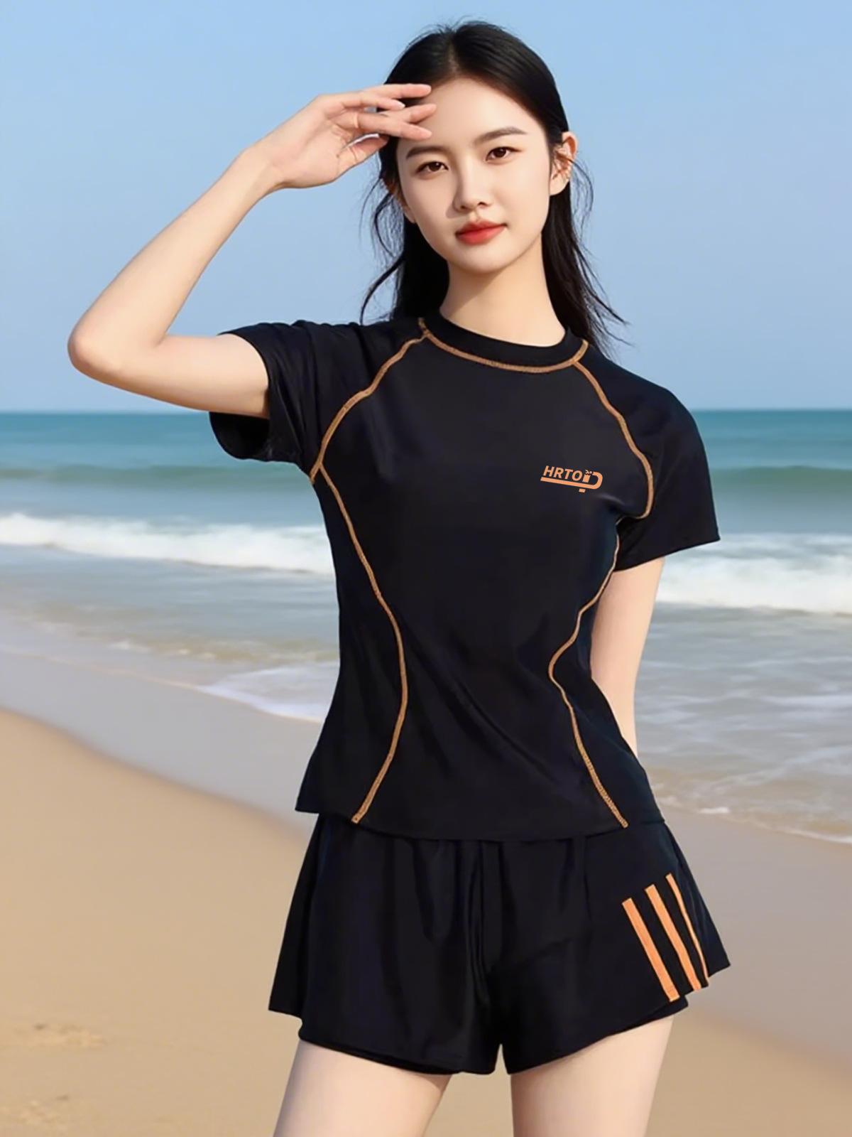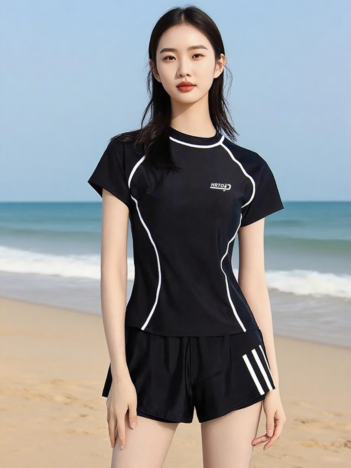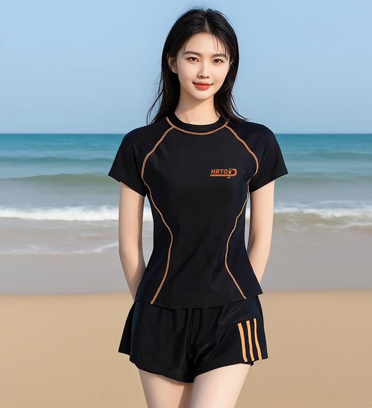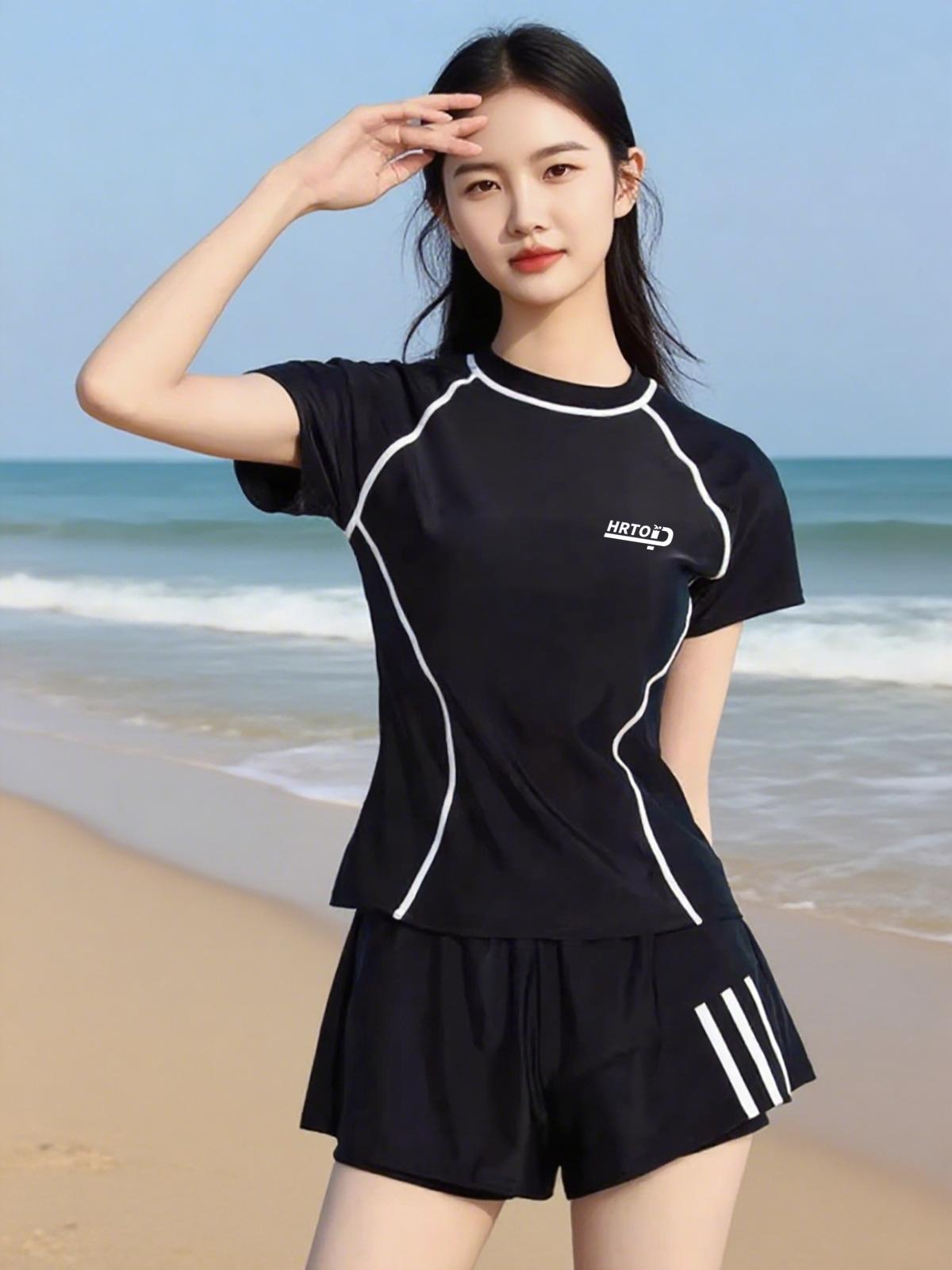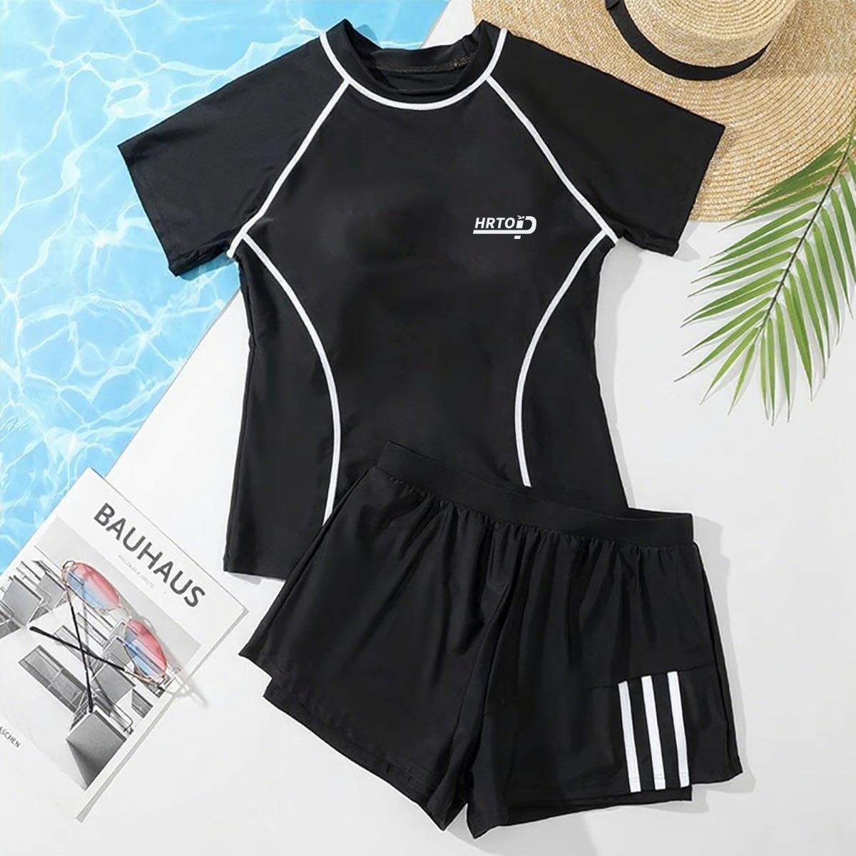 Traje de baño para mujer dividido manga corta conservador burbuja aguas termales piscina Nuevo Talla grande que cubre la carne adelgazante ropa de natación para estudiante al por mayor