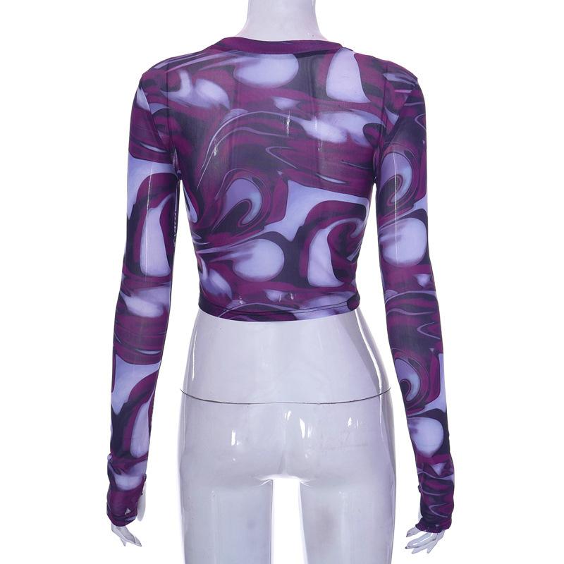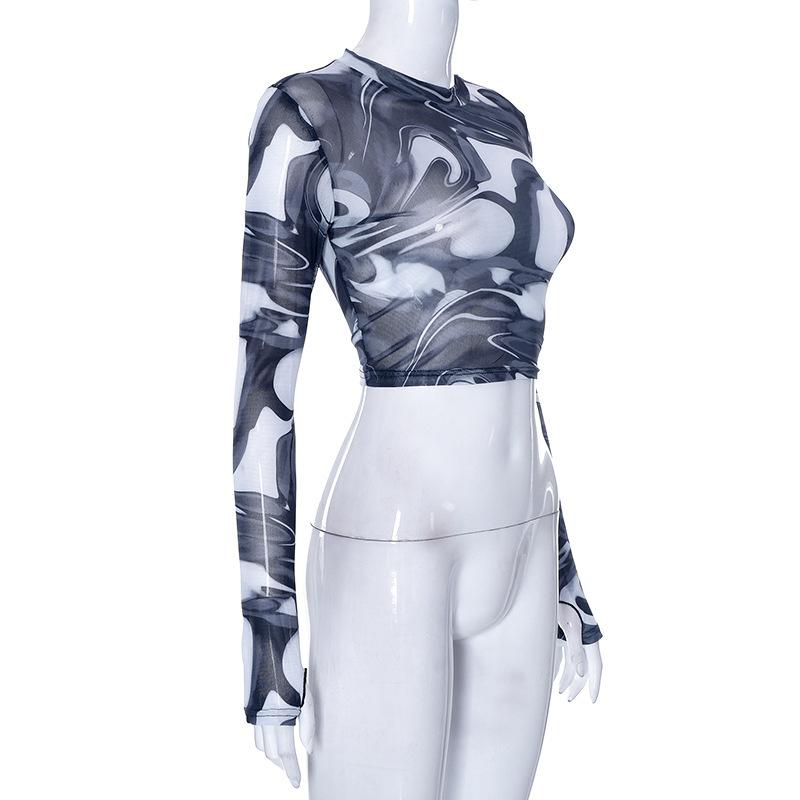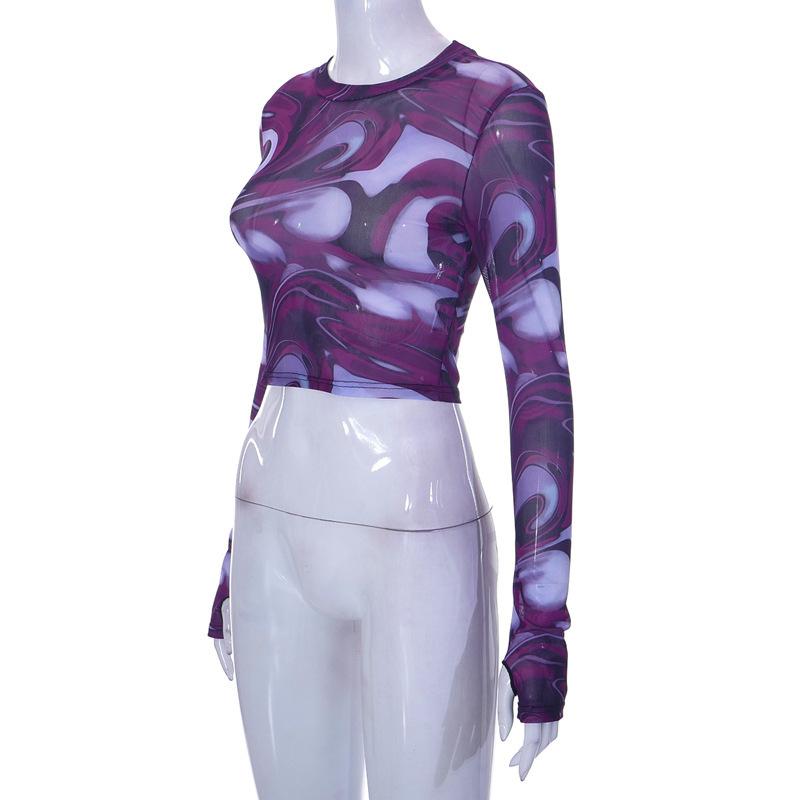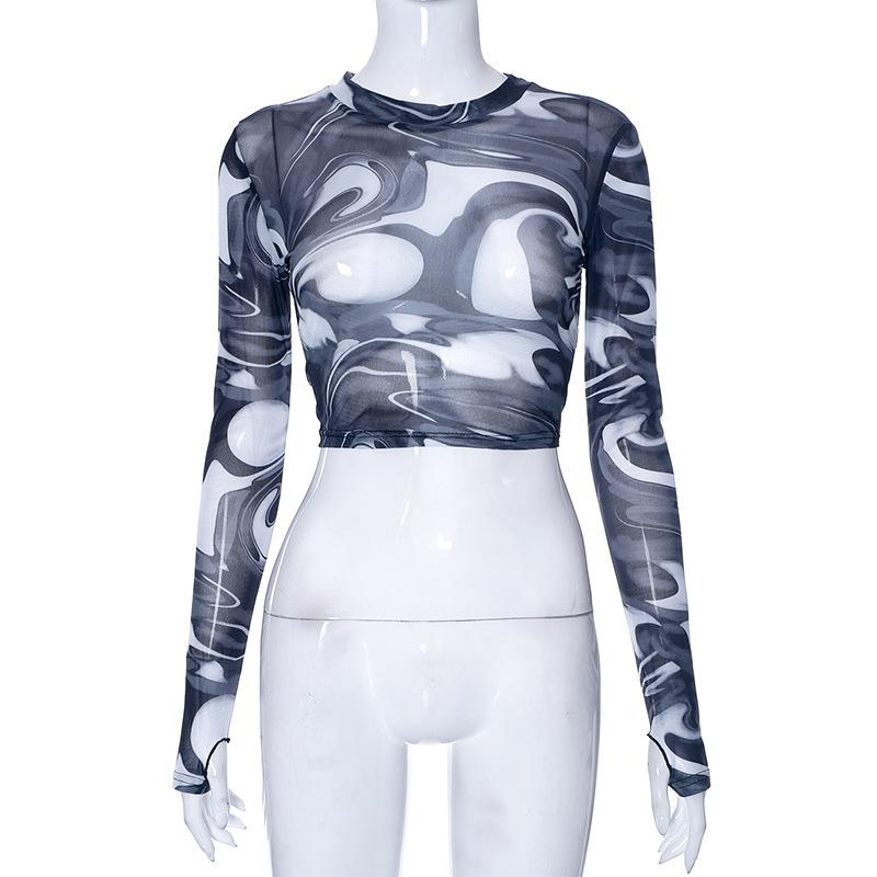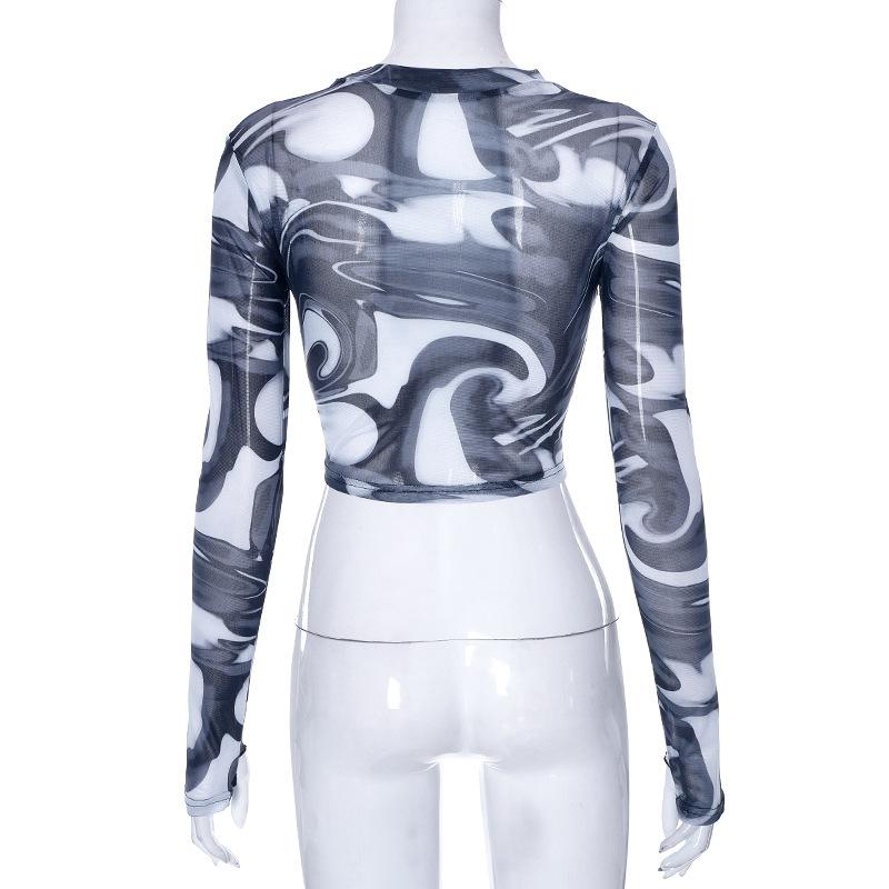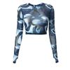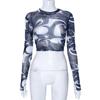 Jersey de cuello redondo con estampado de ombligo, manga larga, informal, para mujer, de estilo europeo y americano, de primavera, venta directa.