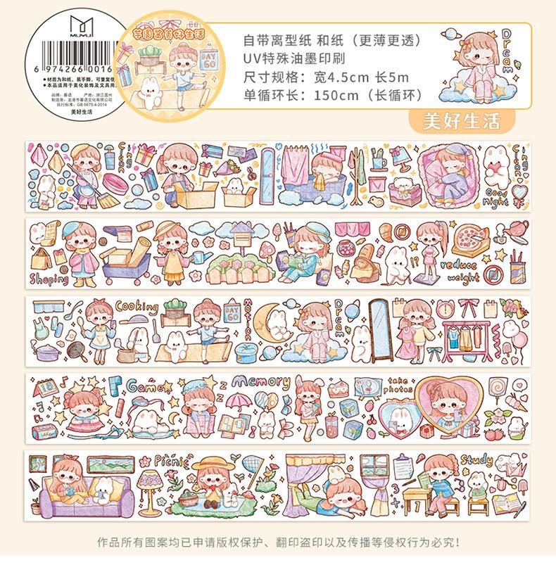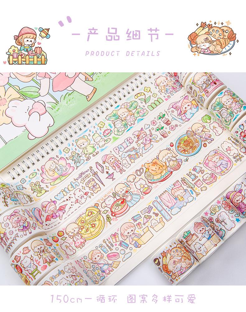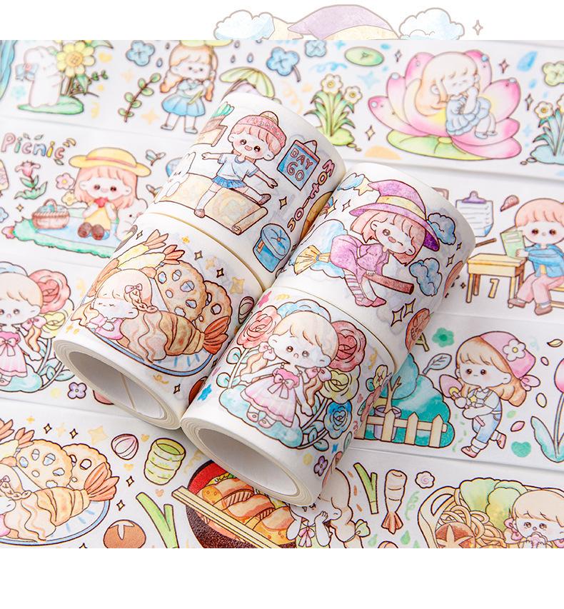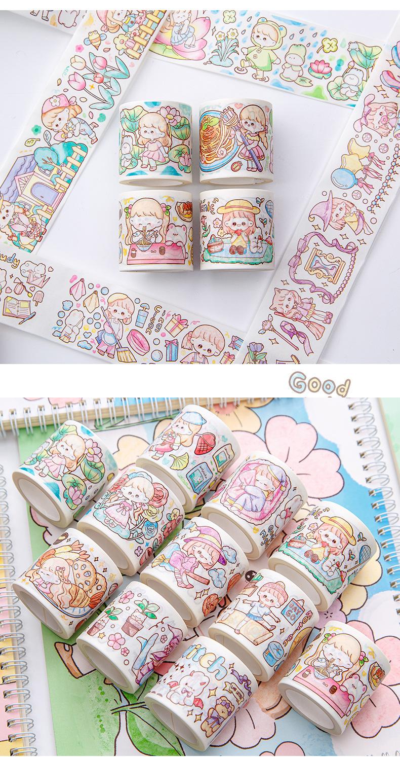 Cinta de aceite especial creativa y pegatina de cuenta de mano de papel, personaje fresco y lindo, material de bricolaje, cinta de cuenta de mano decorativa