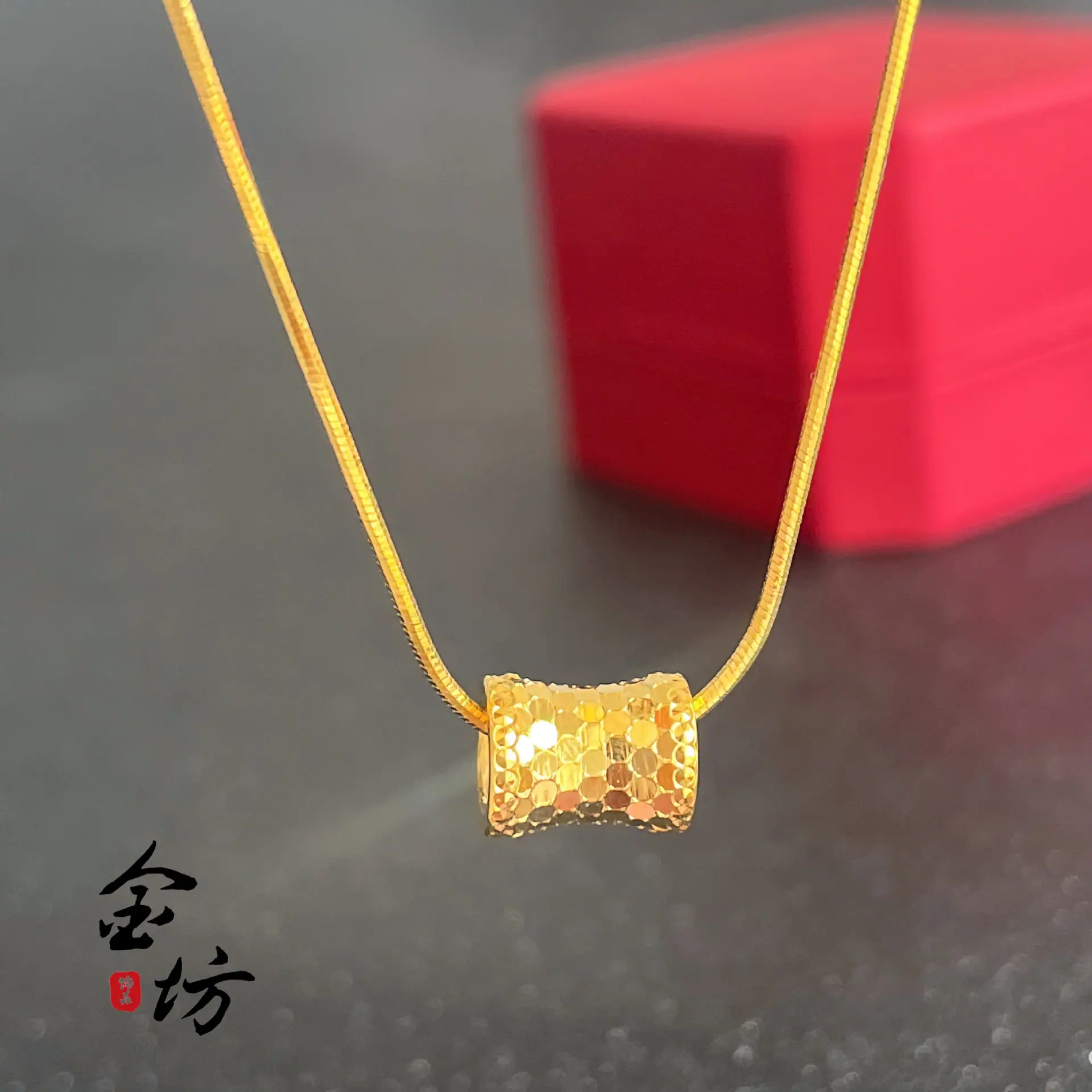 Tienda de oro con tecnología CNC, colgante de cintura pequeña con destello fosforescente de panal chapado en oro de 24k, collar simple versátil de lujo