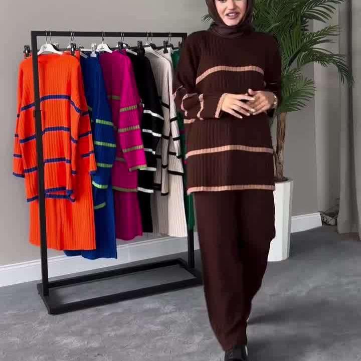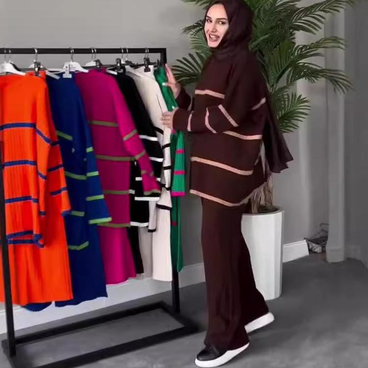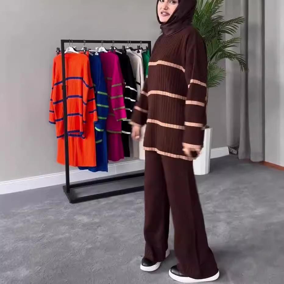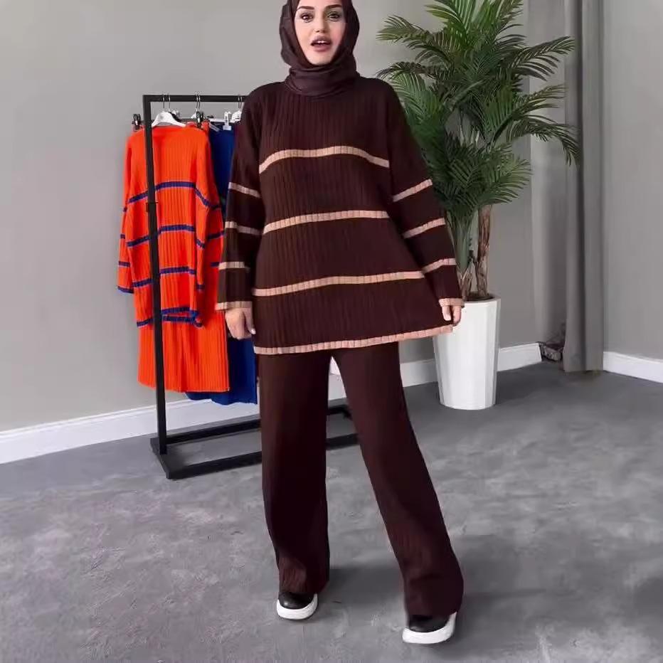 Otoño 2024 Nuevo conjunto casual de dos piezas con pantalones y suéter holgados en contraste de moda transfronteriza de Amazon para mujer de Europa y América